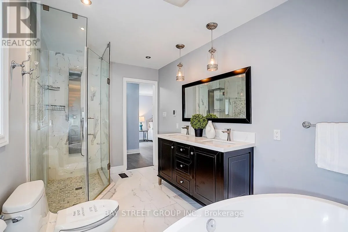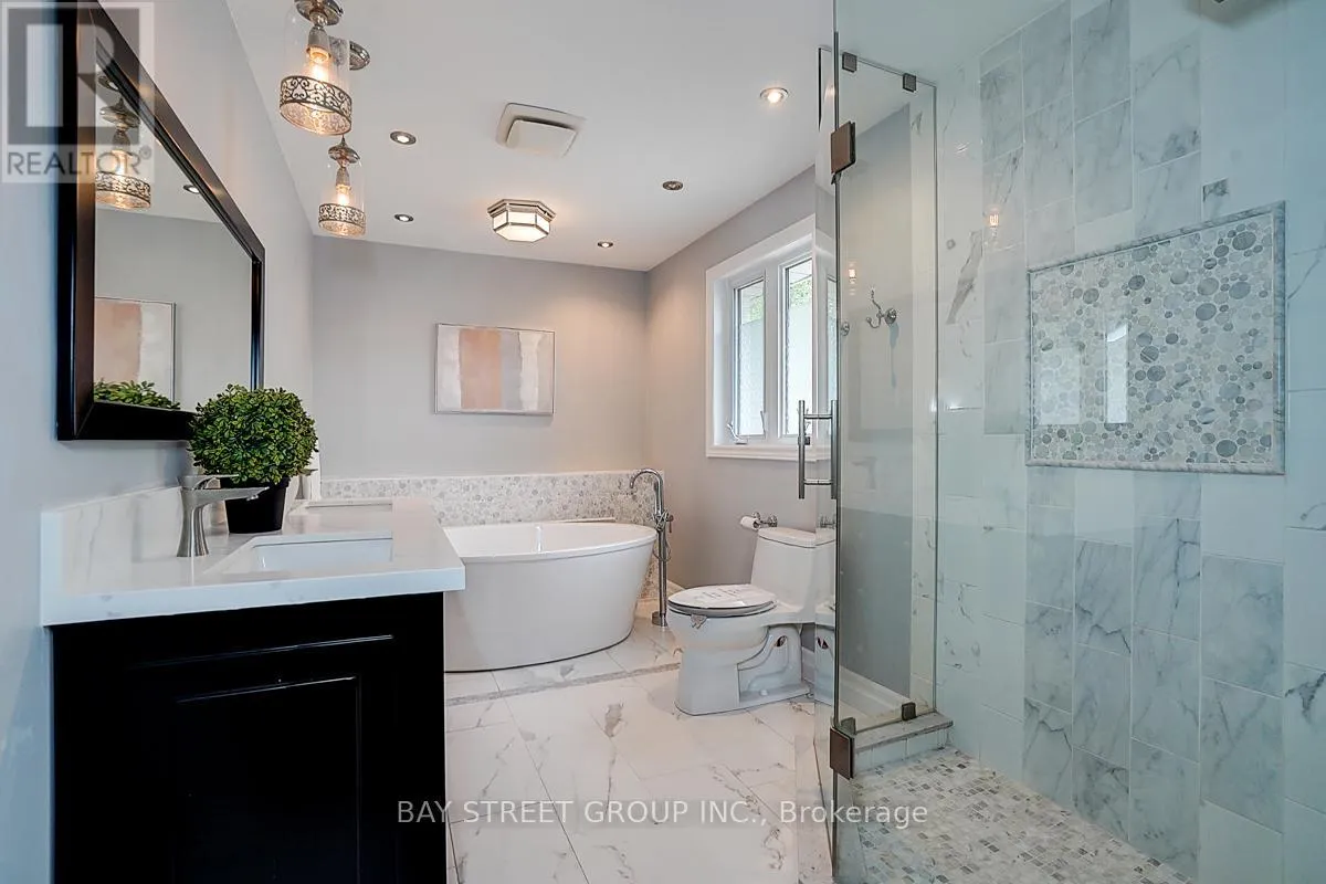 Cross Streets: Hwy 7 And Markham Road. ** Directions: south. Welcome to 2 Riverview Road Your Perfect Home Awaits! Elegantly upgraded and nestled on a serene, tree-lined street, this 4+1 bedroom, 4-bath residence blends modern luxury with timeless charm and a functional, beautiful layout. Set on a wide, south-facing lot, the grand circular driveway, which can accommodate up to 6 cars, enhances the homes curb appeal and adds a sense of prestige. Situated beside a ravine and steps to Milne Dam Conservation Park, and the Rouge River Trial, this location combines natural beauty with outdoor recreation. New hardwood flooring throughout (2023), smooth ceilings, crown moulding, Pot Lights and Upgraded designer lighting. A striking open-to-above central staircase, illuminated by a dramatic new chandelier (2023), creates a grand, airy focal point. The gourmet kitchen is a showpiece with granite counters, glass cabinetry,Farmhouse Sink, center island, stainless steel appliances (including a wine fridge), pot filler, and new kitchen tile (2023). A cozy family room with gas fireplace, formal dining room with bay window, and a laundry room with granite counters plus direct access to the garage and yard complete this level. Upstairs, the second floor offers 4 spacious bedrooms and 2 renovated baths, including stylish bathroom upgrades (2023). The primary suite features a sitting area, custom walk-in closet, and spa-inspired 5-piece ensuite. The finished basement expands the living space with fire place and a kitchenette, 3-piece bath, fireplace, and an additional bedroom perfect for guests, in-laws, or extended family. Outdoors, enjoy multiple patios and back deck. Steps to Milne Park & Rouge River trails, The breathtaking beauty of autumn is right before your eyes,this home offers the perfect balance of sophistication and nature. (id:27476)