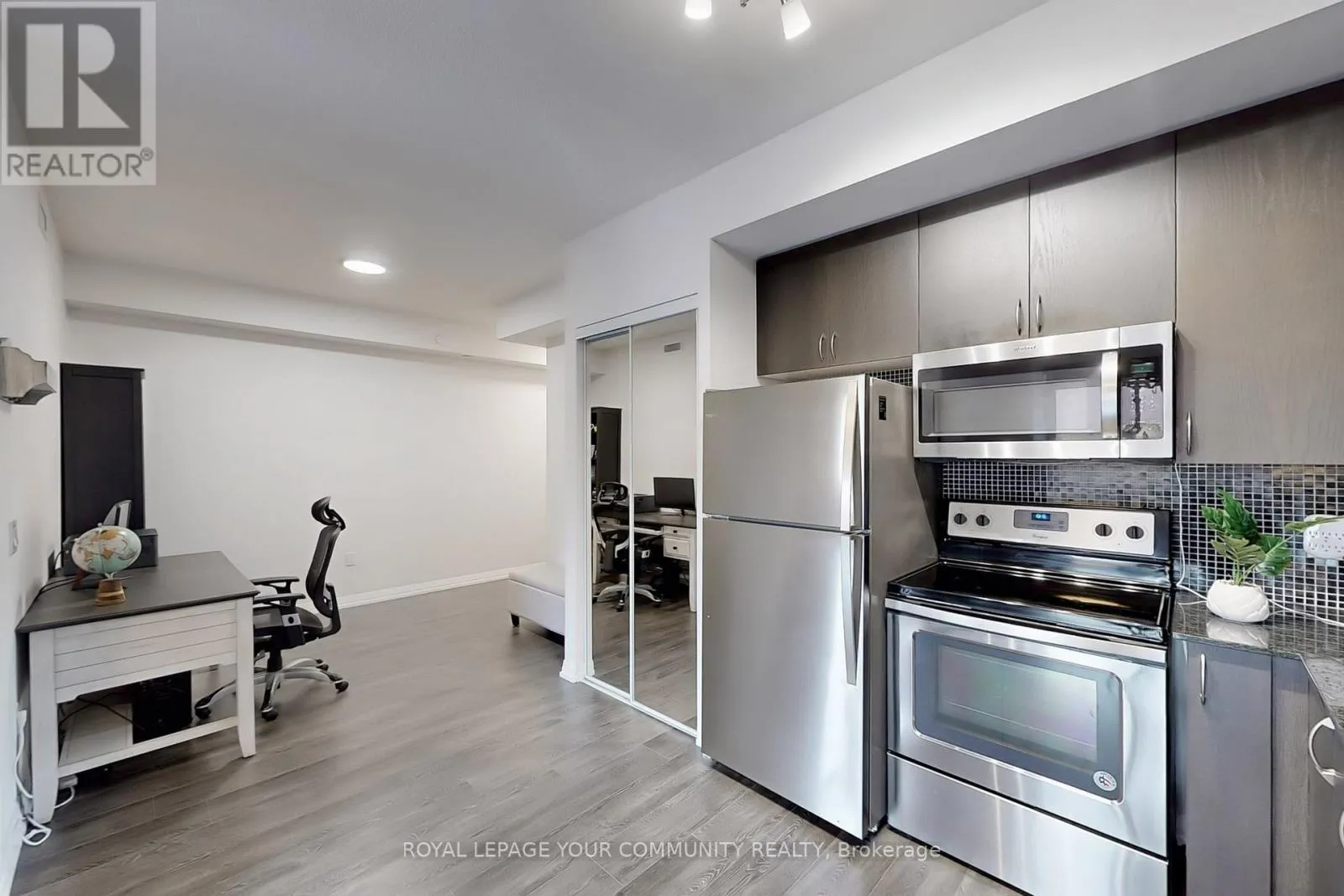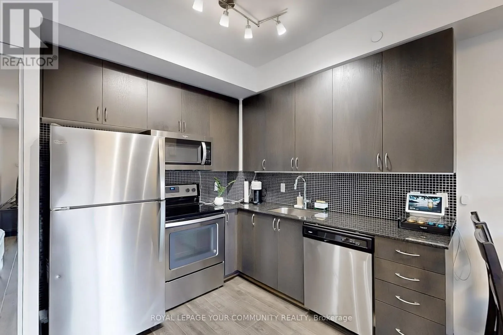 Markham Rd/ 16th Ave Welcome to "The Mark Condo" located in the heart of Markham, nestled in the Wismer Community. Approx. 683 sf of luxurious living space with 9 feet ceilings. Bright & Spacious 1 bedroom plus Den. Open concept Layout design that is ideal for entertaining. Modern Euro style kitchen accentuated with stainless steel appliances and granite countertop, Laminate floorings throughout. Walkout to balcony from the Primary bedroom. Meticulously maintained by the owners. Building amenities includes gym, pool table, party room, outdoor BBQ area, guest suites, visitors parking, concierge. Come and enjoy what this vibrant neighbourhood has to offer, high ranking schools, GO stations, transit, shopping, parks and much more... (id:27476)