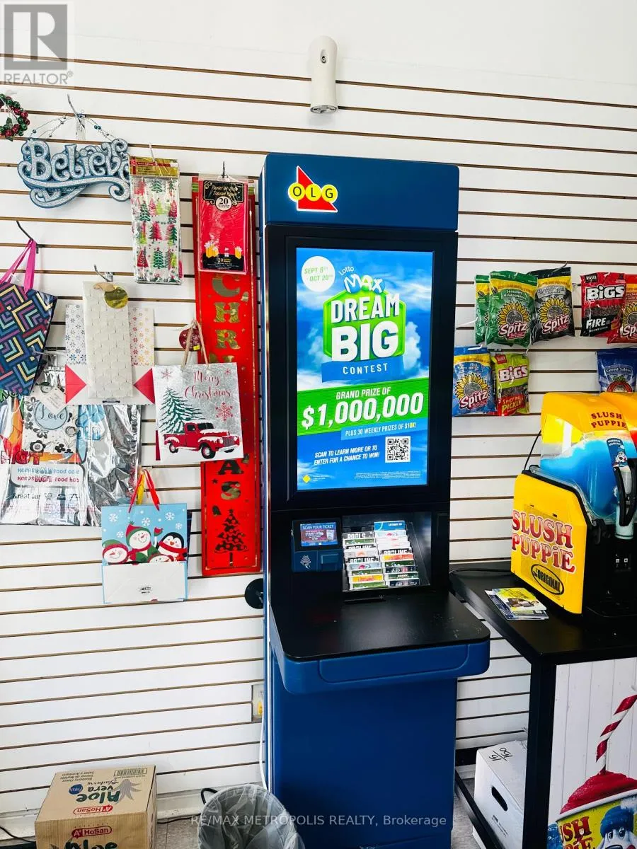Bur Oak Ave. & 16th Ave Rare opportunity to own a profitable, turn-key convenience store in the heart of Cornell, Markham. Prime corner location at Bur Oak & 16th Ave with excellent visibility, steady foot traffic, and surrounded by schools, hospital, and residential neighbourhoods. Approx. 800 sq ft retail space with Lotto Max & tobacco sales. Affordable gross rent of $2,050/month (incl. HST & utilities). Features double-car garage for storage and ample street parking. No direct competition nearby. Great growth potential by adding vape products, Ria money transfer, ATM, Bitcoin machine, photo studio, or UPS/Canada Post collection center. Perfect for owner-operator or investor. (id:27476)