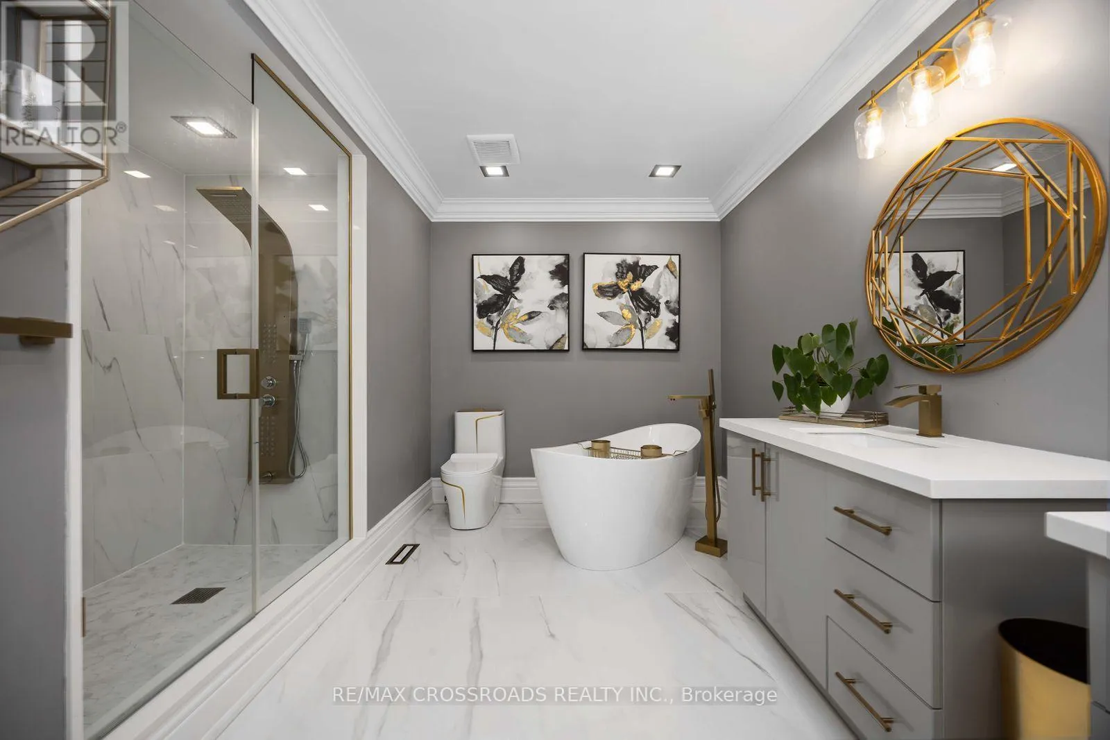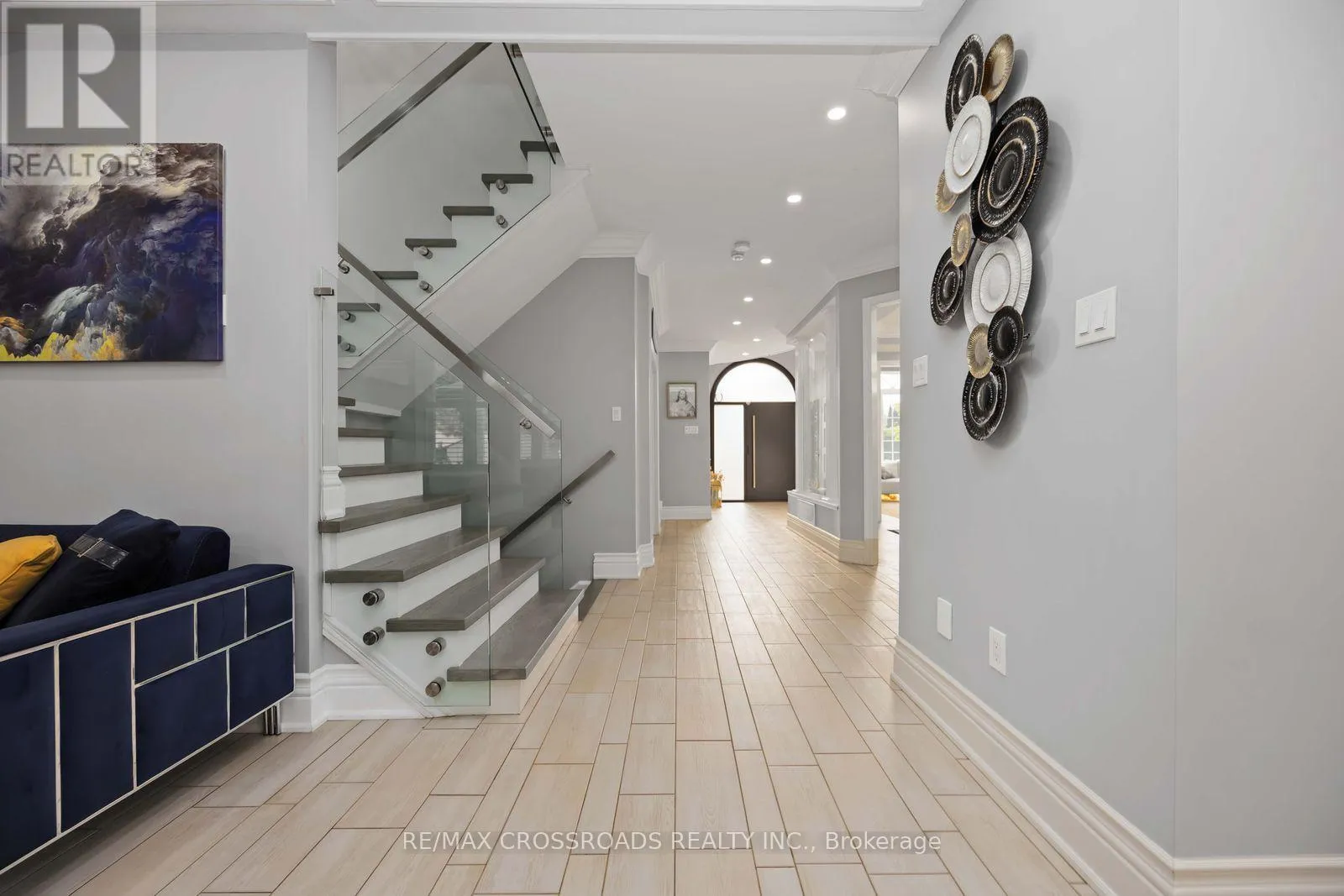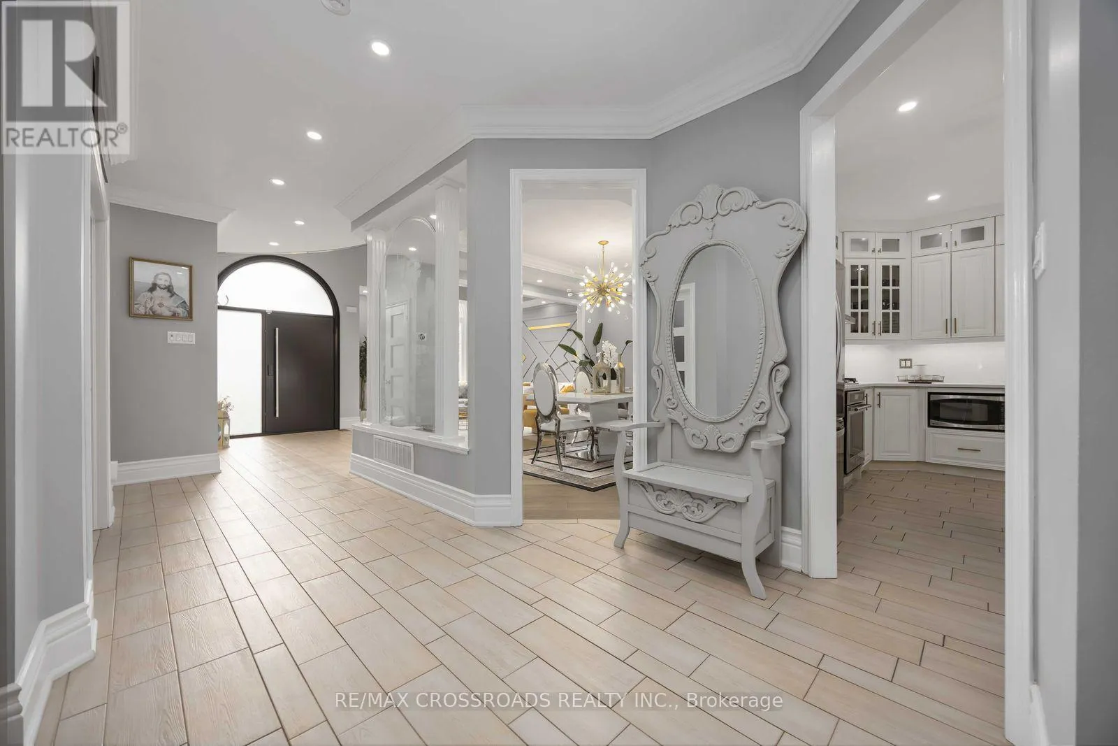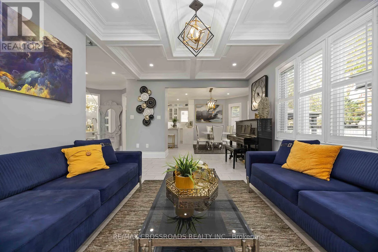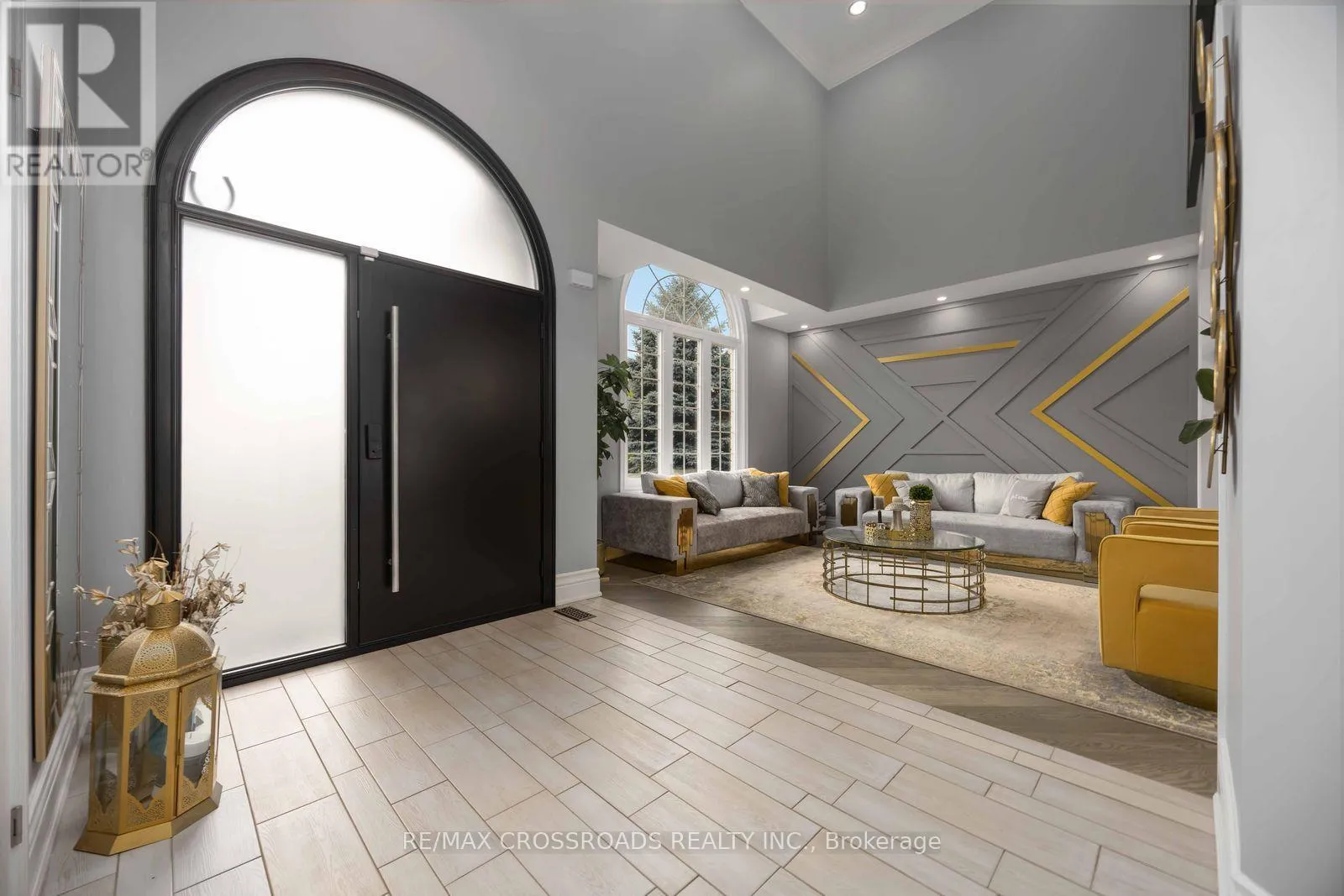 9th Line and 14th Avenue Welcome to 50 Grandlea Crescent - a stunning stone-front Greenpark home, fully renovated (OVER $350K in upgrades) and located in Markham's prestigious Rouge Fairways community. The entire interior of the home was completely redone in 2022, stripped down to the studs and rebuilt with premium finished and modern design throughout. This turn-key property features Lideyana floors, soaring cathedral ceilings, a coffered-ceiling family room with mounted TV and a dramatic floor-to-ceiling as fireplace, crown molding, oversized 8" baseboards, pot lights, and frosted glass doors throughout. A second, sleek electric fireplace adds warmth and ambiance to the lower level. The fully finished basement is brand new, complete with new appliances, offering versatile living space or in-law potential. The oversized front door, new garage doors (2023), California shutters, and all updated light fixtures add to the home's modern elegance. Utility upgrades include 200-amp electrical service (2022), water softener (2025), and roof (2013). Interlocking was completed around the entire exterior in 2023, complementing the lush new grass and enhancing curb appeal. Outdoors, enjoy a hot tub, garden shed, upgraded exterior lighting, and a private backyard oasis. This meticulously upgraded home also features two elegant lion statues, a grand front yard fountain, and a classic piano - offering the perfect blend of style, comfort, and function. Truly move-in ready. (id:27476)