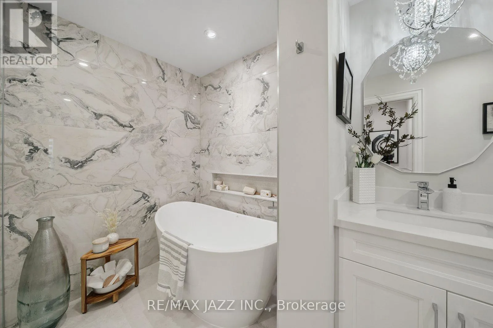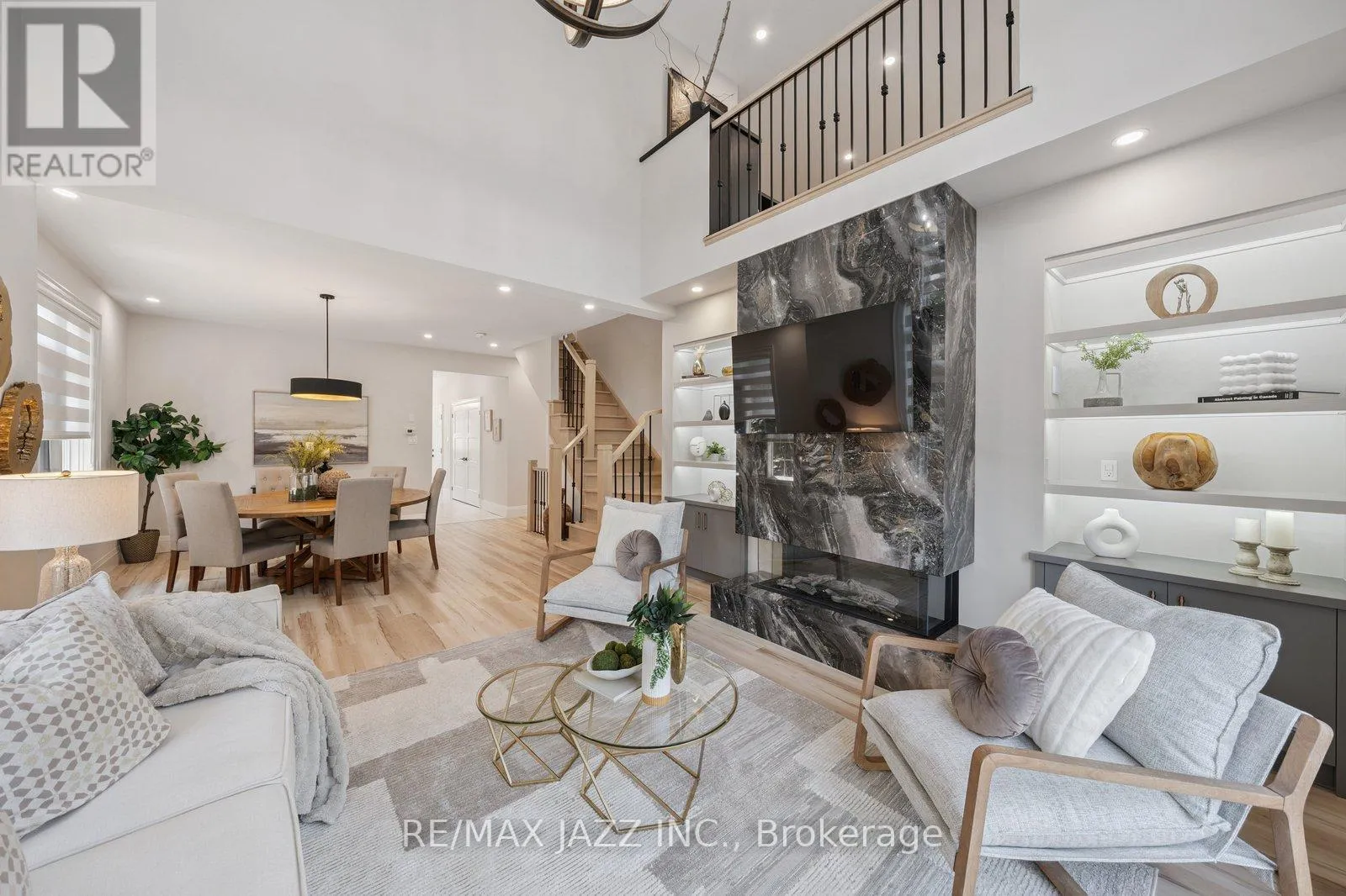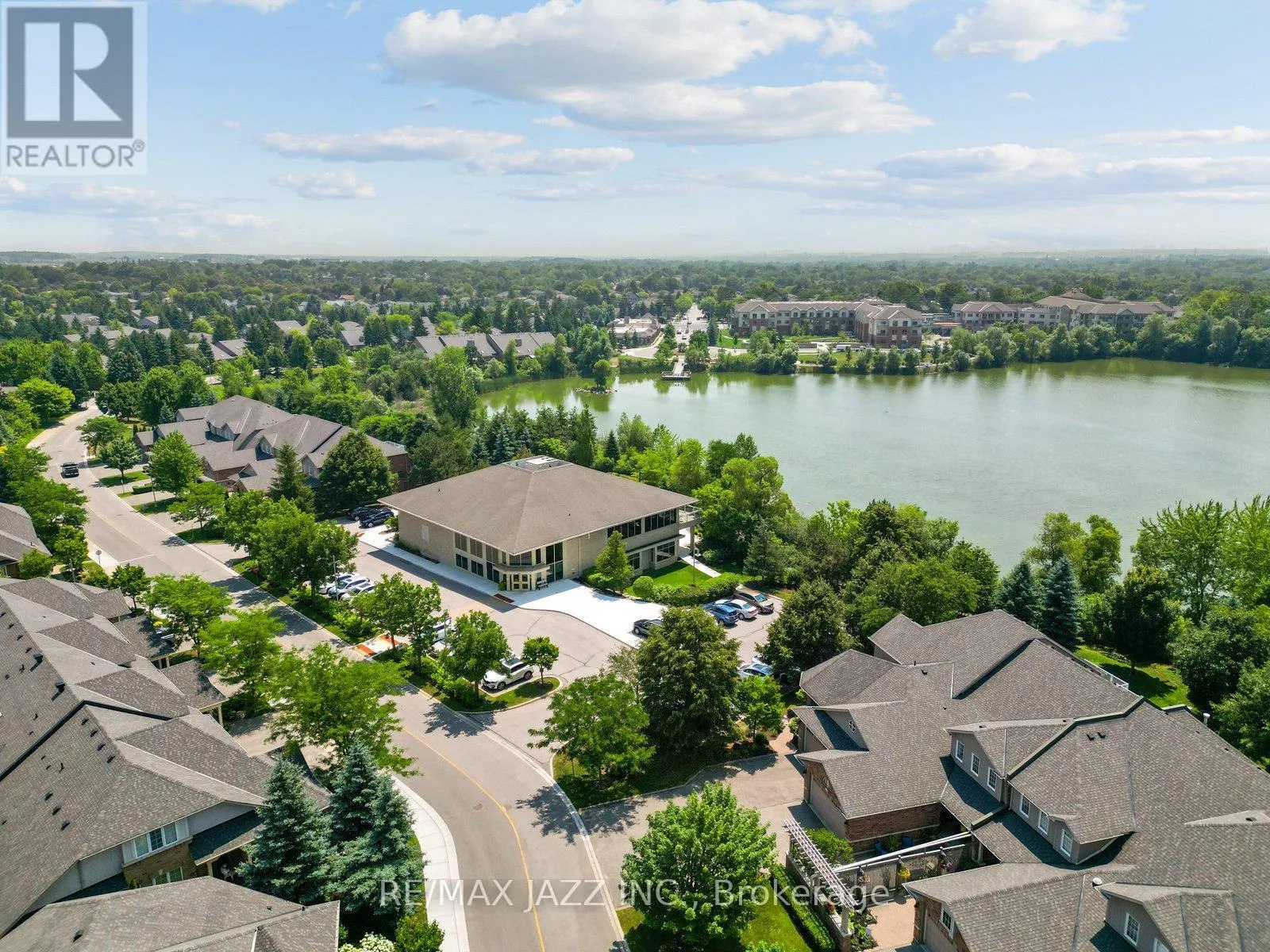 Cross Streets: 16th Ave / 9th Line/ Hwy 48. ** Directions: 16th Ave to Swan Lake Blvd must go thru Security Gate. Welcome to Swan Lake! Over 2000 sq ft of luxuriously renovated space in this end-unit bungaloft, nestled in a gated community surrounded by nature, mature trees & manicured gardens! Enjoy peaceful, resort-style living just minutes from shopping, transit, & amenities. Stunning renovation in the last 3 years with hi end finishes & impeccable workmanship! The main floor features a custom kitchen with heated floor, quartz counters/backsplash, 6-burner gas cooktop, built-in oven/microwave, & cozy breakfast alcove with table, custom seating, cushions & drawer storage. The sun-drenched great room boasts soaring ceilings, walls of windows, & a stunning custom marble 3-sided fireplace. Step out to your private backyard with refreshed stone patio, deck, electric awning, BBQ hookup & views of the Butterfly Garden & Gazebo. The main-floor primary suite includes a spa-inspired 5-pc ensuite with heated floor & custom walk-in closet. Large front hall closet, stylish powder room with heated floor, laundry area with stacked washer/dryer complete the main floor. Upstairs, a spacious loft offers flexibility as a home office, TV lounge or 2nd bedroom with expansive built-in bookcases/storage & a 3-pc ensuite which also has heated floor. The fully finished basement adds a second bedroom (no closet), third full bath, second laundry area, & reimagined staircase for better flow. The 1.5 car garage with epoxy floor has inside entry for convenience. The double driveway holds 2 cars & is not shared with a neighbour. There are also 4 visitor parking spaces in close proximity to accommodate your guests. With access to exclusive community amenities just steps away, such as indoor/outdoor pools, tennis & pickleball courts, bocce, billiards, shuffleboard & more. Everyday will feel like living at a resort! This home is perfect if you are a frequent traveler for business or pleasure & are seeking a maintenance free lifestyle! It's ideal for those who value style, space, & luxury all in one package! (id:27476)