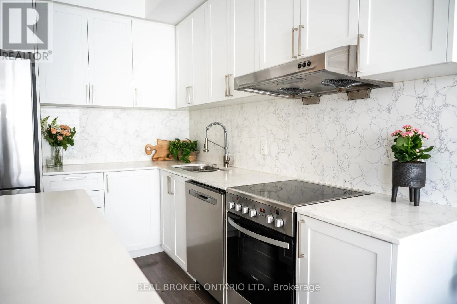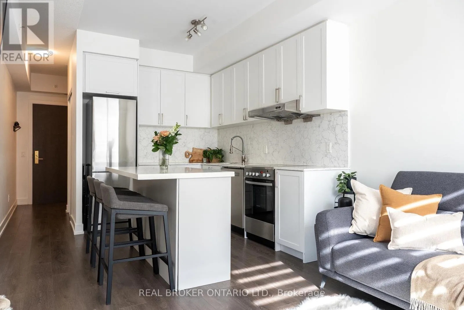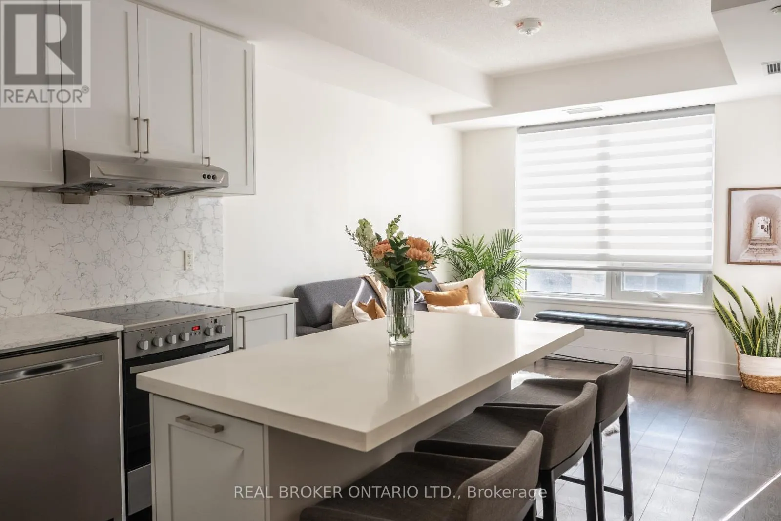 Cross Streets: Highway 7 & Village Parkway. ** Directions: Highway 7, left onto Village Parkway, left onto Buchanan Drive, Left into Unionville Gardens. Welcome to Suite 332E at Unionville Gardens a bright, north-west facing 1-bedroom, 1-bath condo with a private balcony in one of Markham's most desirable and luxurious communities. Located in a modern 8-storey building completed in 2018, this thoughtfully designed unit has 9' tall ceilings and offers a smart, open-concept layout that maximizes space and natural light. The kitchen features modern finishes and a custom island, perfect for cooking, dining, or entertaining. The spacious bedroom includes ample closet space, complemented by a stylish 4-piece bathroom and in-suite laundry. Positioned conveniently close to the elevator, this suite is as practical as it is comfortable. Unionville Gardens is more than just a residence it's a lifestyle. The building offers exceptional amenities including a rooftop deck, Thai-Chi garden, indoor pool, yoga studio, sauna, gym, party room, guest suites, & so much more. For added enjoyment, residents also have access to a ping pong room, karaoke room, and a welcoming concierge with 24-hour security. Visitor and owner parking are both available for your convenience. Perfectly situated in the heart of Unionville, you're just steps from top-rated dining like Sansotei Ramen and Five Guys, and a short drive to grocery stores including T&T Supermarket and Lucky Foodmart. Enjoy nearby green spaces like Too good Pond Park, shopping at Unionville Mews and Markham Town Square, and excellent access to schools, including Unionville High School and Toronto Art Academy. Commuting is a breeze with close proximity to transit and major highways. Whether you're a first-time buyer, investor, or down-sizer, this unit offers strong rental potential, steady appreciation, and the chance to live in a vibrant, amenity-rich community. Book your private showing today! *1 rental U.G. can be transferred to buyer on completion. Additional parking spots available for rent/purchase.* (id:27476)