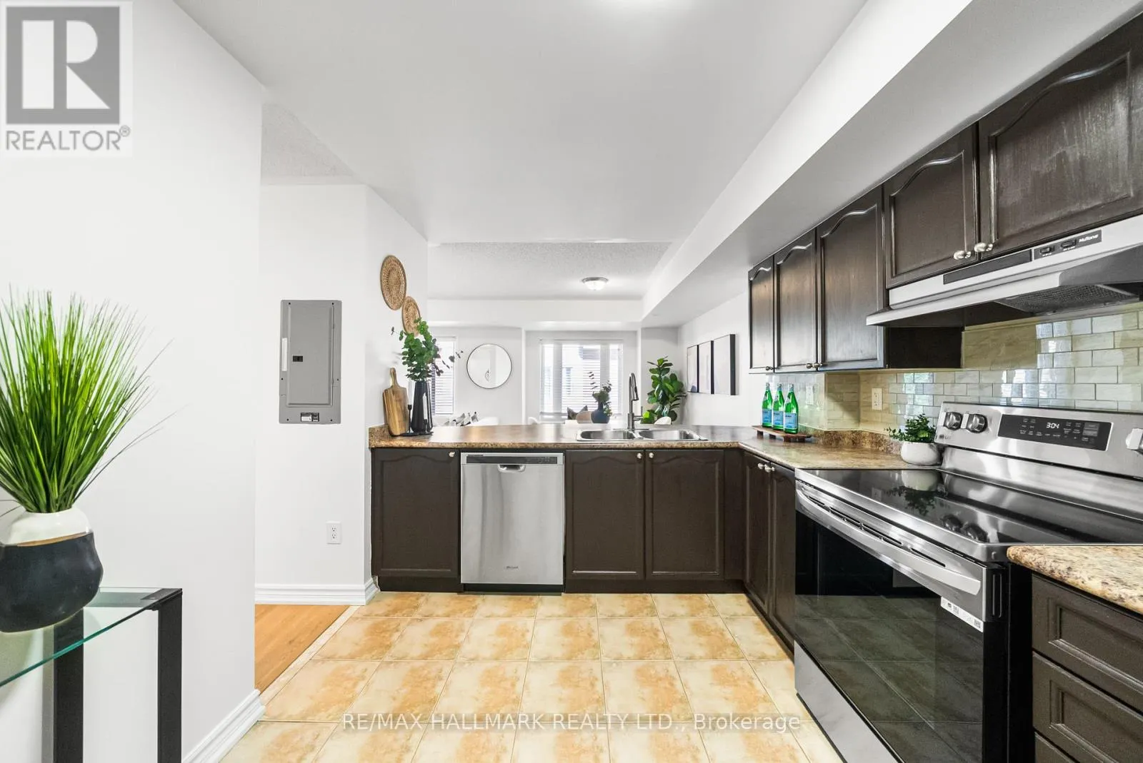 Bayview Ave & John St Welcome to 308 John St #213 an upper unit flooded with natural sunlight in the highly sought-after Olde Thornhill Village! This spacious Maplehill model features 2 bedrooms + den, a bright open-concept main floor, and a rare 345 sq. ft. private rooftop terrace perfect for entertaining or enjoying quiet evenings. Beautifully updated with brand new carpet on stairs, brand new laminate floors and fresh paint throughout, this home is truly move-in ready with brand new stove, range hood, and Fridge. Conveniently located close to visitor parking and just steps to the Thornhill Community Centre, parks, top-rated schools, shopping, and amenities. A stylish, low-maintenance lifestyle in an unbeatable location! (id:27476)