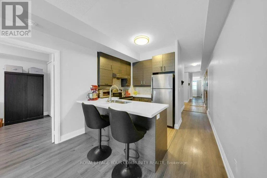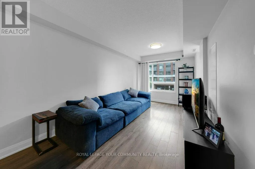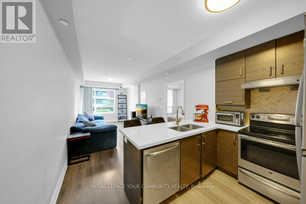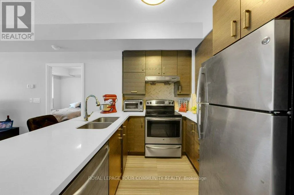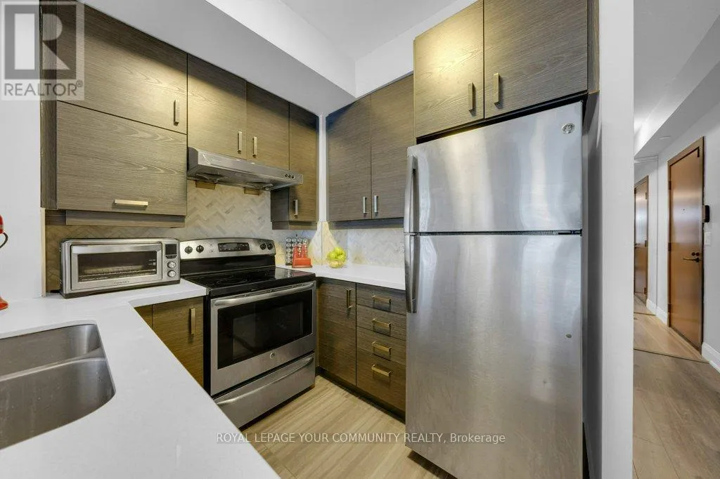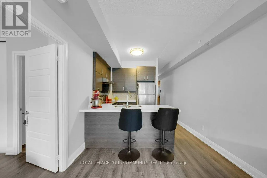 Hwy 7/Birchmount ***Discover The Epitome Of Contemporary Living At Riverpark, The Prestigious Address Of #1 Uptown Drive***Nestled In The Vibrant Heart Of Unionville. This Ideally Situated Residence Offers A Truly Exceptional One-Bedroom Suite With A Fully Enclosed Den, An Ideal Space For A Home Office Or Guest Room. With Two Pristine Bathrooms And A Coveted Position At The Tranquil Rear Roundabout Of The Complex, This Condo Offers A Rare Blend Of Privacy And Serenity. Picture Yourself Savoring A Peaceful Morning Coffee On The Expansive Balcony, Sheltered From The Bustle Of City Life. The Kitchen Features A Stunning Herringbone Marble Backsplash, Elegant Valance Lighting, Full-Size Stainless Steel Appliances, And Gleaming Quartz Countertops. Wide Plank Grey Engineered Hardwood Flows Gracefully Throughout The Suite, Lending An Air Of Sophistication To Every Room. Retreat To The Spacious Primary Bedroom, Complete With A Luxurious Ensuite, Generous Closet, And Expansive Windows That Flood The Space With Natural Light. This Remarkable Unit Also Includes Both Parking And Locker For Your Convenience. Riverpark Pampers Its Residents With Outstanding Amenities (Concierge/Security, Gym, Indoor Pool, Meeting/Party Room, Rooftop Deck/Garden, Visitor Parking, Guest Suites), While Positioning You Mere Steps From Excellent Transit, Shopping, Dining, Markham Theatre, Highly Rated Schools, And The Cultural Attractions Of Downtown Markham, Home To The "Pride Of Canada" Carousel, Multiplex Movie Theatre, Renowned Restaurants, Boutique Shopping, And Lively Special Events. Stroll To The Historic Charm Of Main Street Unionville, Explore The Scenic Too Good Pond, Or Visit Local Art Galleries Or Flato Markham Theatre, All Just Moments Away. And When Adventure Calls, Quick Access To The GO Train And Highways 407 And 404 Ensures The Entire City Is Within Easy Reach. (id:27476)