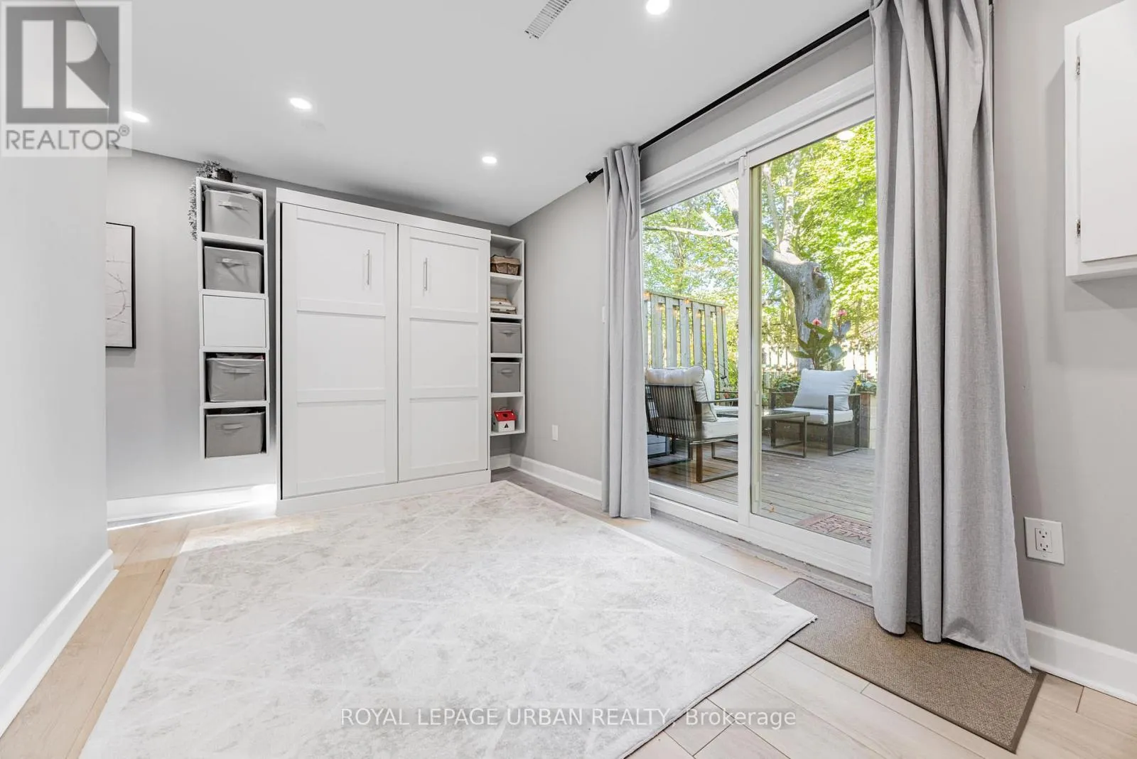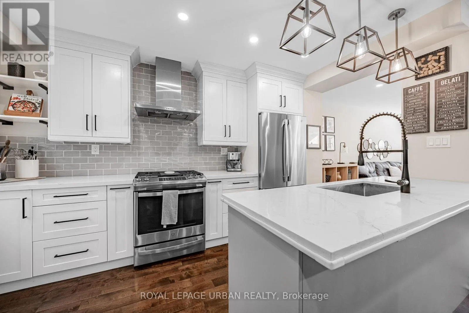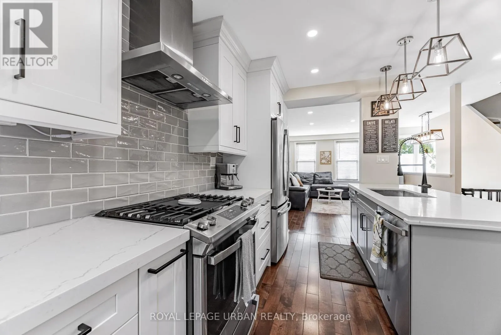 Cross Streets: Leslie/John Street. ** Directions: North side of John St west of Leslie St. Stunningly & tastefully renovated (ca $125K spent!), bright & airy condo townhouse w open concept living/kitchen/dining area & direct walk-through from the kitchen to both the dining & living areas. Smooth ceilings throughout! The kitchen boasts a very large & spacious island w breakfast bar (w seating for up to 4 people), quartz countertops, new GE stainless steel appliances, *GAS* *RANGE*!!, gorgeous backsplash, pot lights throughout living area, & magnificent pendant lights over the island. Tons of storage in custom kitchen cabinets. Light pours into the living area from three large south-facing windows & the north-facing kitchen & dining windows, all of which provide a wonderful cross-breeze in fine weather. Gorgeous, warm, rich-coloured new hardwood floors throughout the main living & bedroom levels & new tile floors in all bathrooms & entry. With 3+1 bedrooms, it's perfect for a new young family. Primary bedroom has a huge double closet w new sliding doors & built-ins, & plenty of room for a King-sized bed. Brand new LVP flooring & potlights in the very bright backyard-level living area which can be used as either a guest bedroom suite (murphy bed included!), a recreation room, or an office. This recreation area also houses the laundry & a gorgeously renovated 3-piece bathroom w full-sized shower & rain showerhead! One of the few townhouses in the complex with *TWO* *FULL* *BATHROOMS*! Direct, ground-level, at-grade walkout via huge new sliding doors to the beautifully treed, serene backyard w very private deck & BBQ including gas line hookup so you will never need to fill a propane tank! Fees include snow removal, landscaping of backyard grass, & exterior house maintenance including the roof. New 100 amp service. Easy, quick drive to 404 & 407 makes for a very easy commute. Excellent schools in the area (see virtual tour for the list) & convenient area amenities including shopping, restaurants, library, parks, community recreation centre, & walking trails. (id:27476)