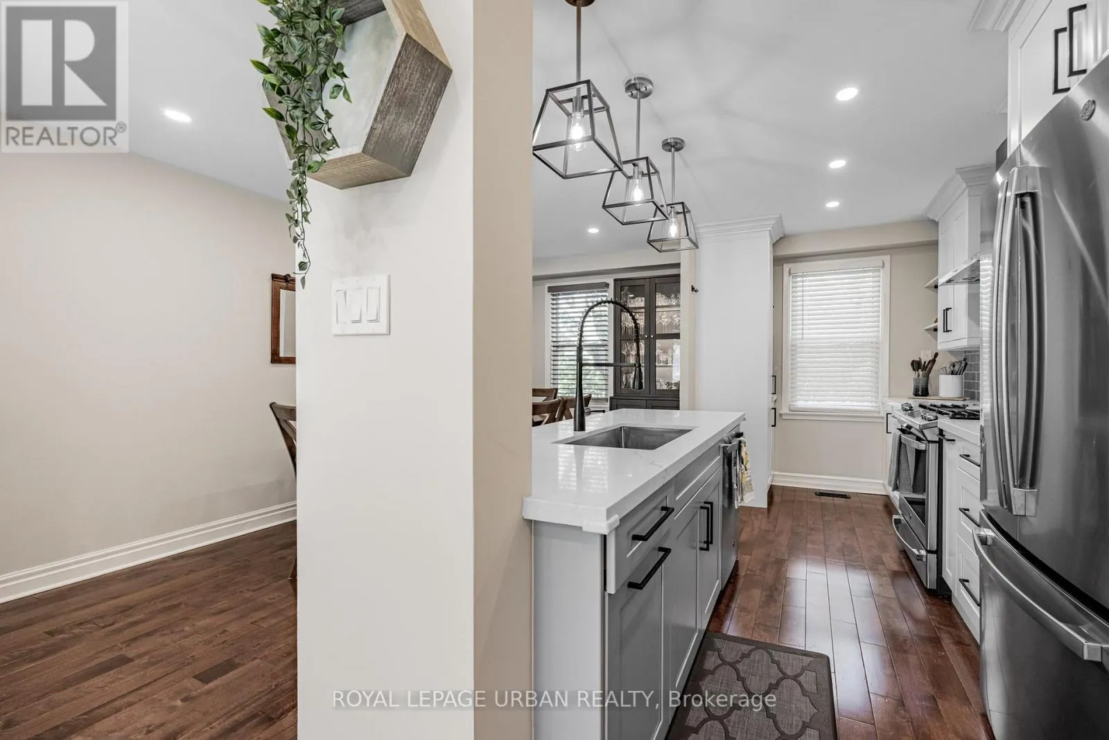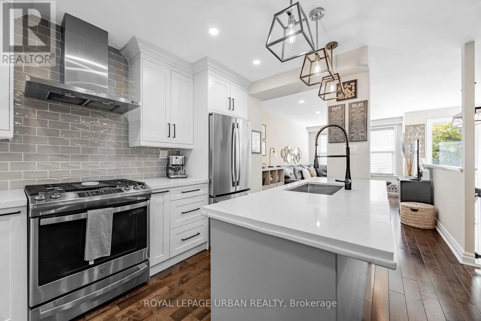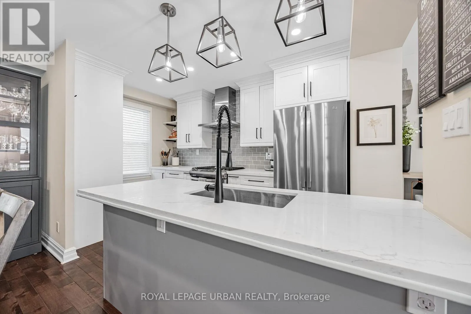 Cross Streets: Leslie/John Street. ** Directions: North side of John St west of Leslie St. Stunningly & tastefully renovated (ca $125K spent!), bright & airy condo townhouse w open concept living/kitchen/dining area & direct walk-through from the kitchen to both the dining & living areas. Smooth ceilings throughout! The kitchen boasts a very large & spacious island w breakfast bar (w seating for up to 4 people), quartz countertops, new GE stainless steel appliances, *GAS* *RANGE*!!, gorgeous backsplash, pot lights throughout living area, & magnificent pendant lights over the island. Tons of storage in custom kitchen cabinets. Light pours into the living area from three large south-facing windows & the north-facing kitchen & dining windows, all of which provide a wonderful cross-breeze in fine weather. Gorgeous, warm, rich-coloured new hardwood floors throughout the main living & bedroom levels & new tile floors in all bathrooms & entry. With 3+1 bedrooms, it's perfect for a new young family. Primary bedroom has a huge double closet w new sliding doors & built-ins, & plenty of room for a King-sized bed. Brand new LVP flooring & potlights in the very bright backyard-level living area which can be used as either a guest bedroom suite (murphy bed included!), a recreation room, or an office. This recreation area also houses the laundry & a gorgeously renovated 3-piece bathroom w full-sized shower & rain showerhead! One of the few townhouses in the complex with *TWO* *FULL* *BATHROOMS*! Direct, ground-level, at-grade walkout via huge new sliding doors to the beautifully treed, serene backyard w very private deck & BBQ including gas line hookup so you will never need to fill a propane tank! Fees include snow removal, landscaping of backyard grass, & exterior house maintenance including the roof. New 100 amp service. Easy, quick drive to 404 & 407 makes for a very easy commute. Excellent schools in the area (see virtual tour for the list) & convenient area amenities including shopping, restaurants, library, parks, community recreation centre, & walking trails. (id:27476)