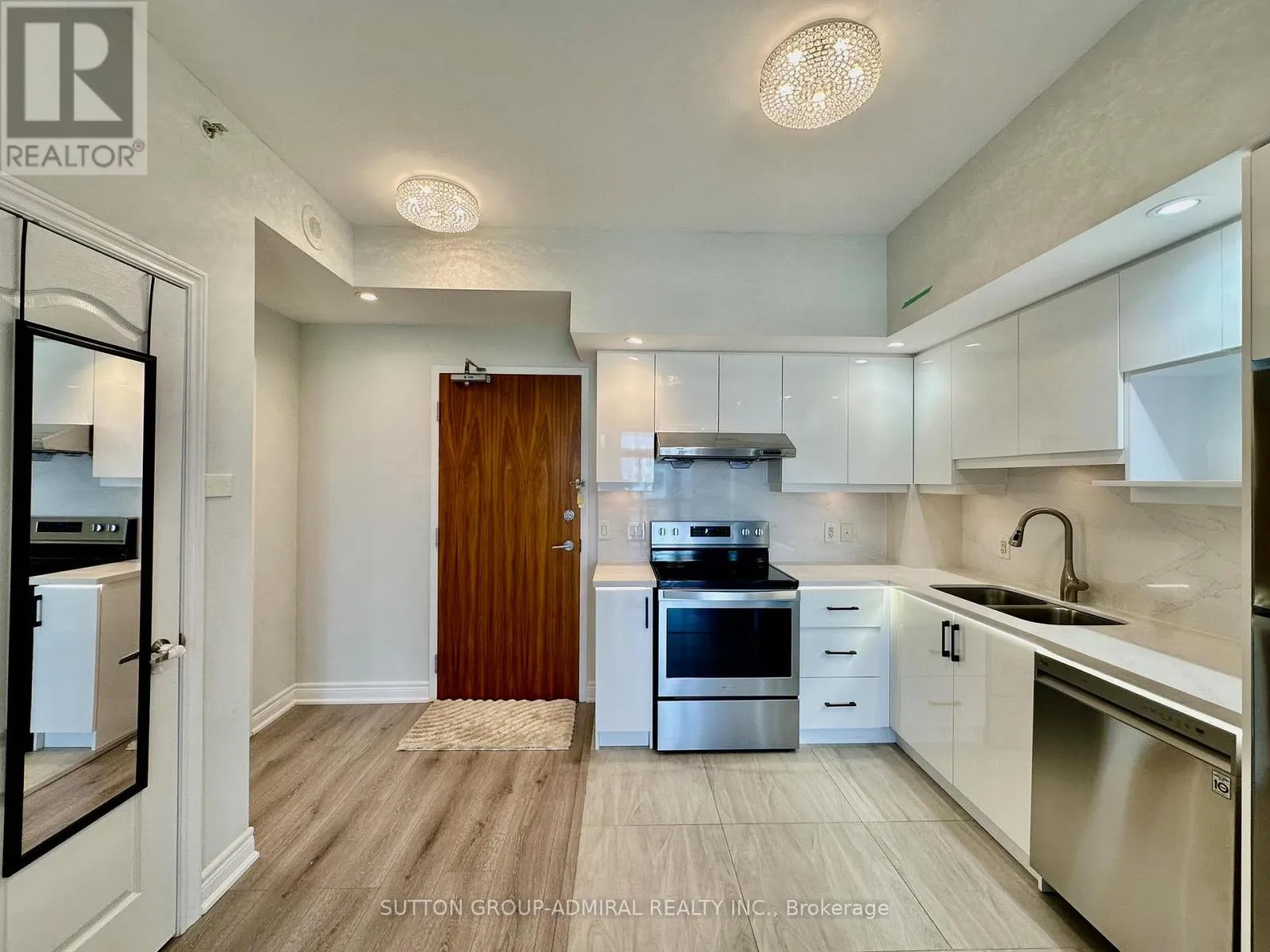 Kennedy and Hwy 7 Welcome to this beautifully updated 1-bedroom condo at THE RESIDENCES of South Unionville Square, ideally located at the sought-after intersection of Kennedy between Highway 7 and 407.At just under 600 sgit, this unit offers the perfect combination of convenience and comfort, featuring a sleek kitchen with new contemporary cabinets, stainless steel appliances, and a stunning stone backsplash that seamlessly integrates with the countertops. The open concept living and dining area boasts brand new laminate flooring, creating a warm and inviting atmosphere throughout.Step out onto your private balcony and enjoy tranquil views of the terrace perfect for morning coffee or evening relaxation. The renovated bathroom showcases modern finishes. Newer washer and dryer.With its updated features, prime location (easy access to major highways, public transit, and nearby business hubs), the mixed-use complex features residential, office, and retail spaces, makes it ideal for both living and working. It's in a family-friendly area with top schools, parks, amenities like shopping, dining, and recreational options, and serene balcony view, this condo is an ideal opportunity for first-time buyers, downsizers, or anyone seeking a move-in-ready home. Don't miss out on this gem. (id:27476)