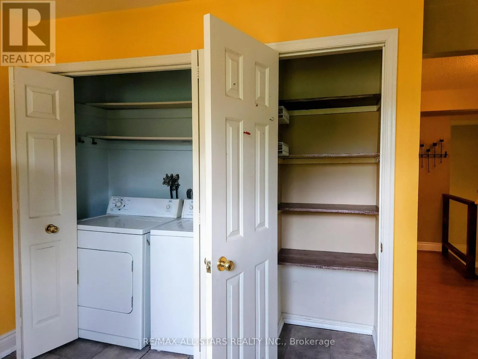 Church/Elm Charming Enclave in Old Markham! Tucked away in a quiet, sought-after pocket, this lovely home is just steps to Main Street Markham, GO Train, YRT, VIVA, TTC to Warden, shops, restaurants, schools, parks, and churches, everything you need is within walking distance. Enjoy your privacy with no neighbours behind, a fully fenced backyard and deck viewed through a large Pella window with built-in blinds! The home features updated windows, modern glass railings, laminate flooring on 2 levels and two fireplaces, adding style and warmth throughout. The bright eat-in kitchen boasts ceramic floors and convenient main-floor laundry. Upstairs, the spacious primary bedroom offers a walk-in closet and a private 2-piece ensuite plus 2 more bedrooms and 4 pc. Bath. Furnace is approx. 3 years new. Whether you're a first-time buyer or investor, this home is a perfect opportunity in a prime location. (id:27476)