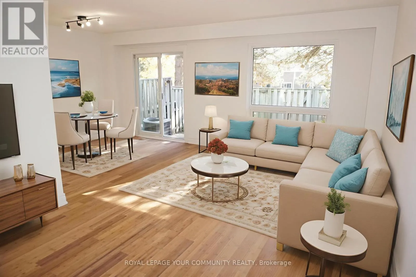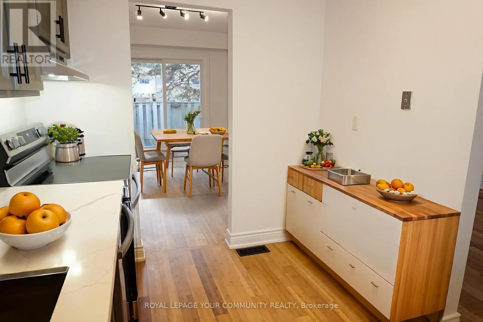 Hwy#7 & Wooten Way Welcome to 39 Knightsbridge Way-a charming condo townhouse community nestled among the mature ,tree-lined streets in Markham Village. This is a rare opportunity to own your own home in an established neighbourhood with minimum maintenance, providing a carefree and convenient lifestyle at an affordable price, A perfect starter or great investment opportunity !This bright thoughtfully updated unit offers N/S exposure, functional layout suitable for small families, professionals , downsizers alike. The unit has been freshly painted thru-out, sanded Bamboo floors , Spanish tile , pot lights in kitchen, new light fixtures, new s/s kit. appls. brdlm on stairs and lower rec room, new doors & hardware, furnace(25) washer & dryer. All ready and waiting . Step outside to your private patio & garden style backyard backing to walkway and greenspace. Perfect for peaceful relaxation! The lower level recreation room offers a bonus space for office, play room or guest suite as well as ample storage . Many units in the complex have added a kitchen island by removing the partition wall -- potential to personalize is here!!Note the large primary bedroom has potential to convert the walk-in closet into an ensuite. Ample visitor parking is available, highly walkable location near parks, schools, transit & shopping. Minutes to MS Hospital, Hwy 7 &407... William Armstrong Public School, Markham District High, Edward T. Crowle Public & French Immersion. Virtually Staged. Don't miss this opportunity. Don't miss this opportunity. "Naturally Staged". (id:27476)