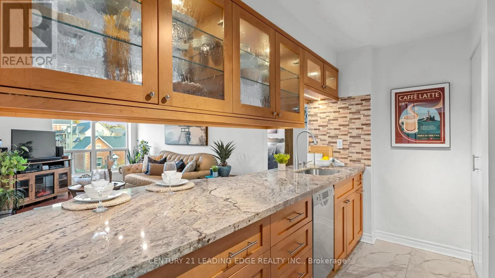 Wilson St & Markham Rd Honey Stop The Car! Beautifully Renovated & Pride Of Ownership, 2 Bd, 2 Bath Condo In The Heart of Markham. A Mix Of Old Town Charm & Modern Living. Spans Over + 1000 SQFT Right Off Main St. This Open Concept Gem Boasts A Recently Renovated Kitchen With Porcelain Tiles (2024) & California Cabinets (2023) That Are To Dream For! Glass Doors & Cabinet Lighting (2023) To Accompany The Breakfast Bar. S/S Appliances & In-Unit Laundry For Convenience! The Living Room With Gorgeous Hardwood Flooring Offers Access To The Oversized Balcony. Carpet Free All Throughout. The Primary Bedroom With Large Windows, Pot Lights, Walk In Closet & 4 Piece Ensuite Is Sure To Impress. Brand New Vanity In The Ensuite Washroom, New Porcelain Tile (2024). The 2nd Bedroom Offers A Walk Out To The Balcony & Plenty Of Space To Grow. Newly Renovated Washroom (2024). Freshly Painted Ceiling in The Living Room & Hallway (2025). Zebra Blinds Throughout (2024). New Porcelain Tile in Hallway (2024). New Balconies & Railing (2025). New Windows (2023). Extremely Well Maintained Condo. Party Room, Rooftop Terrace/BBQ Area, Underground Parking Is Owned, Surface Parking. Backs Onto A Beautiful Ravine. Steps To Coffee Shops, Dining, Boutiques, Go Station, Highway 7 &Highway 407. This One Won't Last! Don't Miss Out! (id:27476)