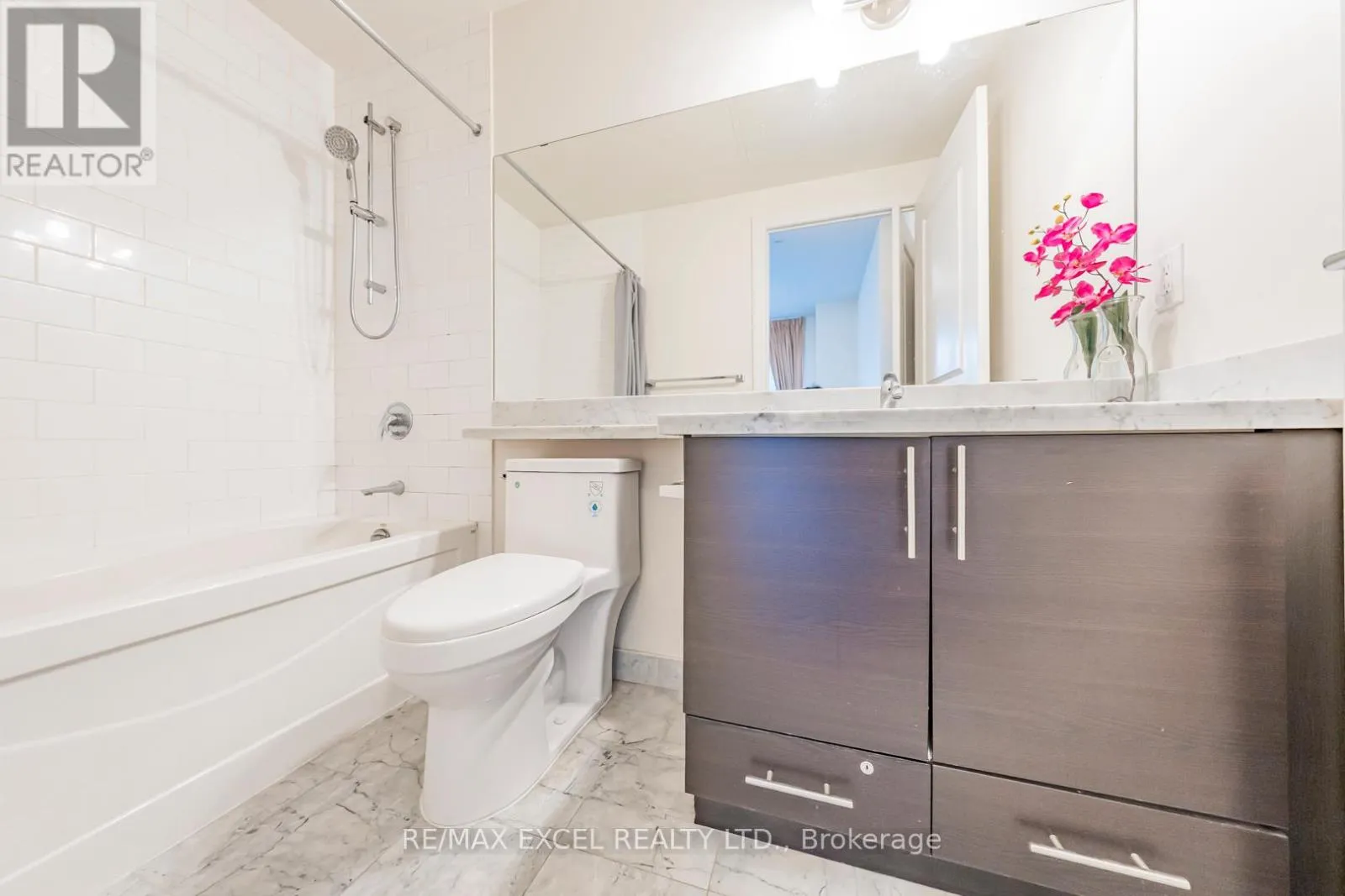 Cross Streets: Warden / Hwy 7 E. ** Directions: north of Enteprise Blvd. Bright & Spacious 1050 S.F. Corner Unit At Rouge Bijou By Remington. 2 Bed + Den (W/Window & French Doors Can Be 3rd Bdrm) High 10' Ceilings & Hardwood Flooring Throughout. Extended Kitchen Cabinets W/Quartz Countertop, Backsplash & Valance Lighting. Marble Vanity Top In All Baths. Primary Bdrm W/4Pcs En-Suite & W/I Closet. Large 280 S.F Covered Patio. Amenities: Concierge, Gym, Guest Suites, Party Room, Virtual Golf & More! **Markville Secondary School (2/739)**. S/S Appl (Fridge, Stove, Dishwasher, Range Hood). Washer & Dryer. All Existing Window Coverings. 1 Parking Spot & 1 Locker Included. Steps To Viva Bus Station, Downtown Markham Shopping & Restaurants. Close To Go Train, Hwy 404 & 407. (id:27476)