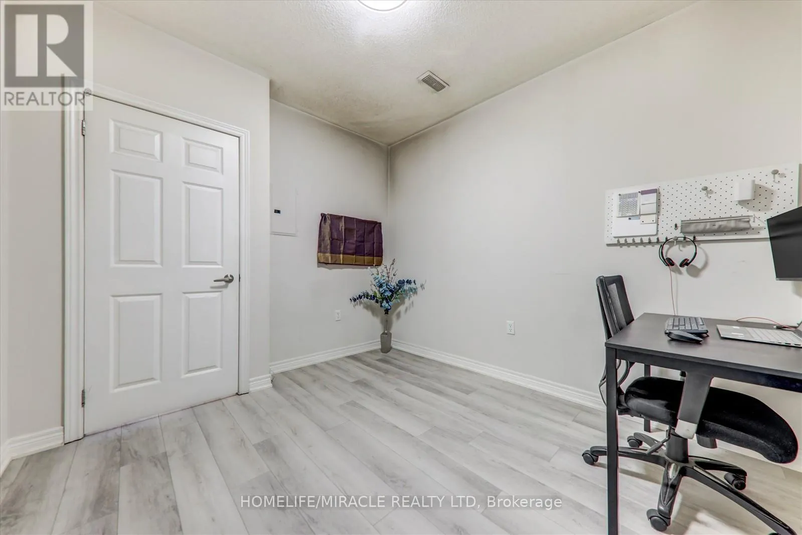 Markham Rd and Denison St Discover spacious, modern living in this stunning 2-bedroom plus large den/office condo-easily adaptable as a third bedroom covering a generous 1,488 sq. ft. (1,348 sq. ft. interior plus a 140 sq. ft. private elevated balcony). Designed for comfort and convenience, this main-floor unit offers easy access-no elevators needed-making life simpler for families and professionals alike. Step inside to an open, sunlit layout featuring expansive windows, luxurious new vinyl flooring, and soaring 9 ft ceilings. The sleek, upgraded kitchen boasts quartz countertops, abundant storage cabinets, and a dedicated water-filter faucet, catering to your culinary and lifestyle needs. The living room is enhanced with bright, dimmable flat-panel LED pot lights and additional Smart RGB LED lighting, perfect for setting the mood or entertaining guests. Smart LED fixtures continue into the primary bedroom and hallway, with a recessed floodlight in the den. Relax in style in the ensuite bathroom's fully functional Jacuzzi tub, complete with adjustable water pressure for ultimate comfort. Modern appliances, including a brand-new dishwasher, washer, and dryer (2024), bring added convenience. Enjoy two dedicated parking spaces and a locker for extra storage. The private, oversized balcony extends your living space and is ideal for unwinding or hosting friends. Located minutes from Hwy 407, Costco, Walmart, Canadian Tire, Home Depot, shopping centres, public transit, top-rated schools, parks, restaurants, and community centres. Everyday essentials-Tim Hortons and a gas station-are just 2-minute walk away. (id:27476)