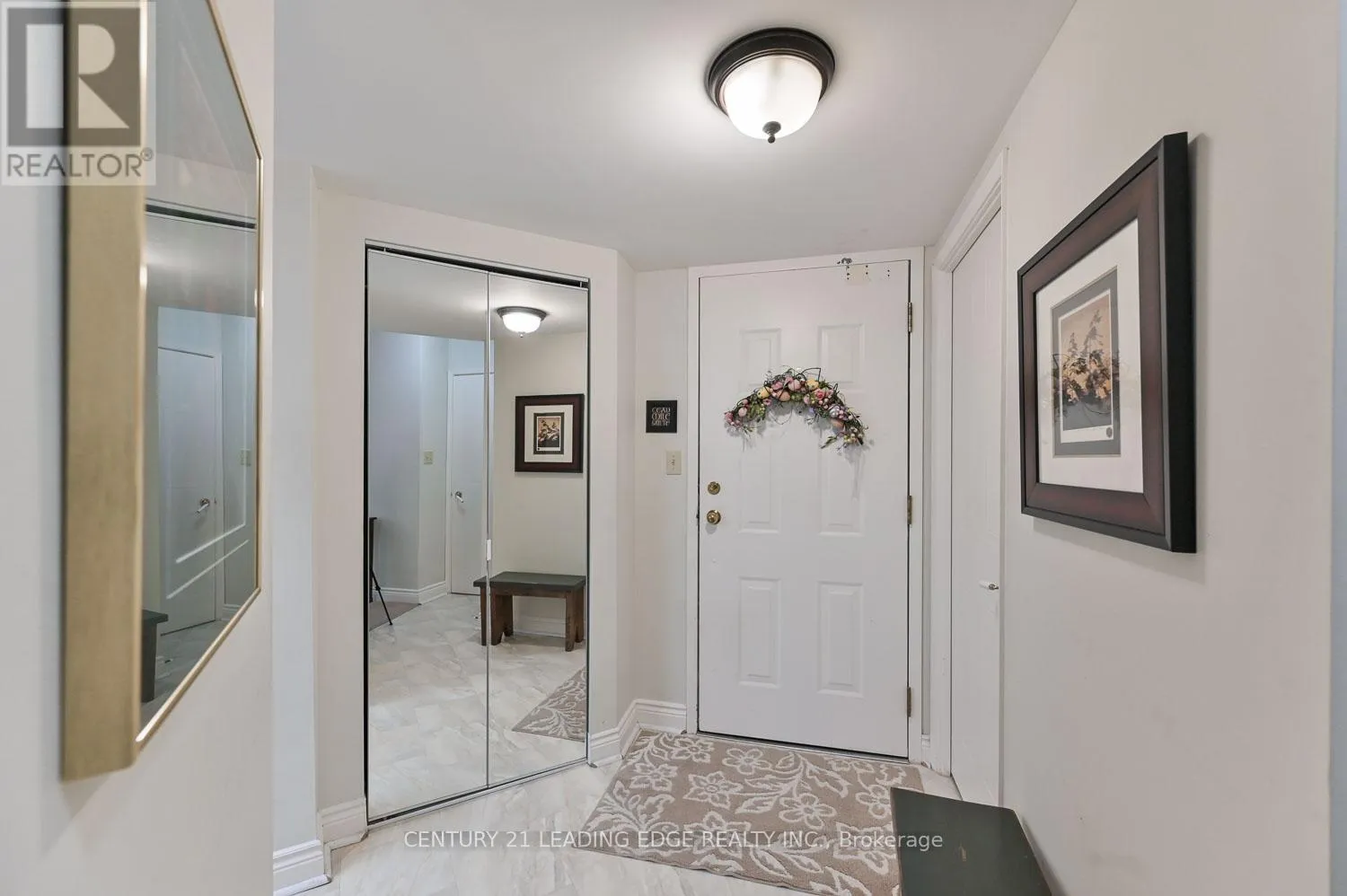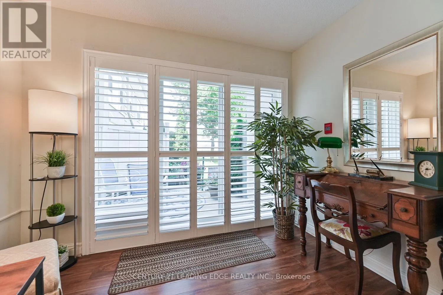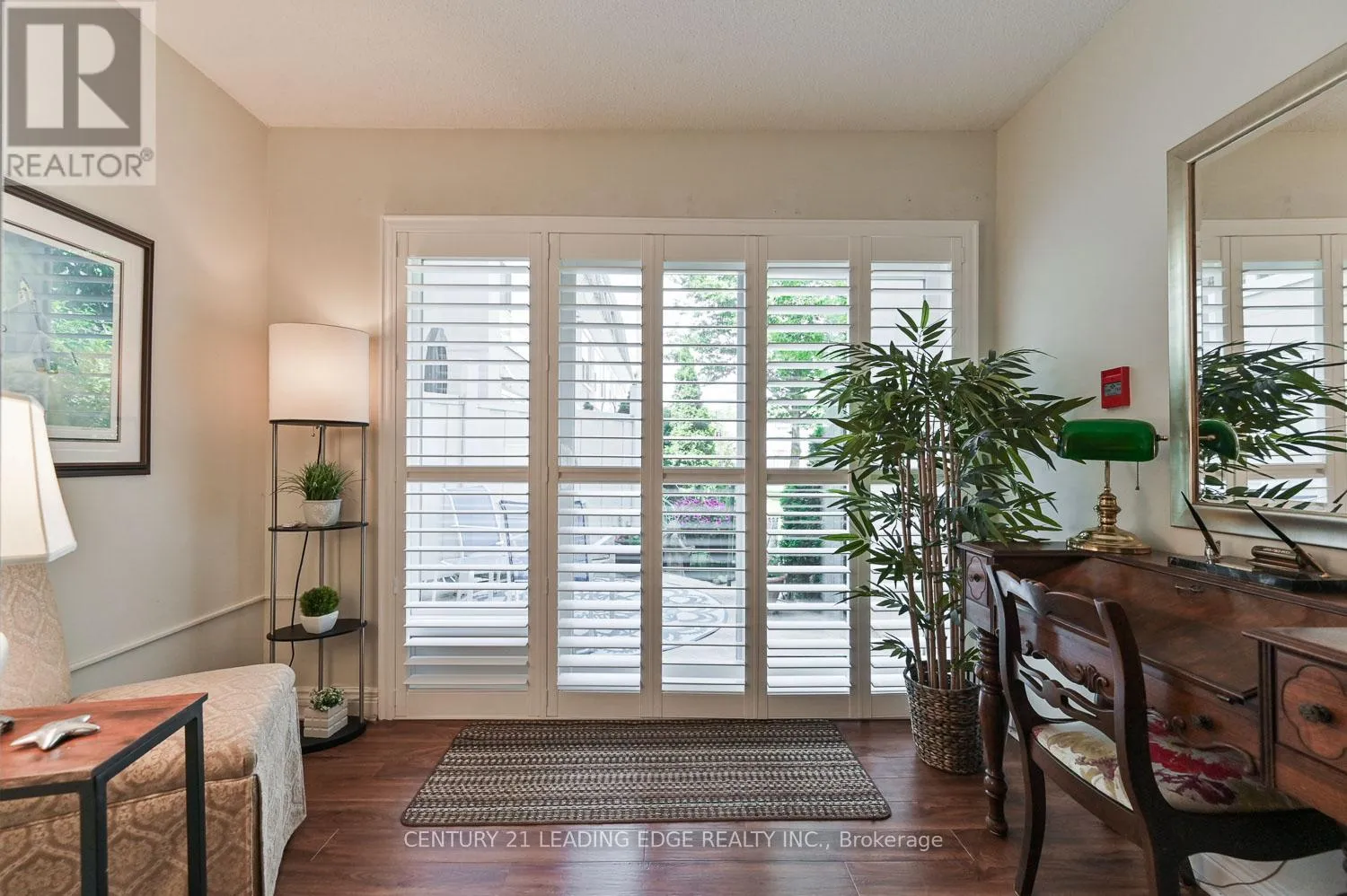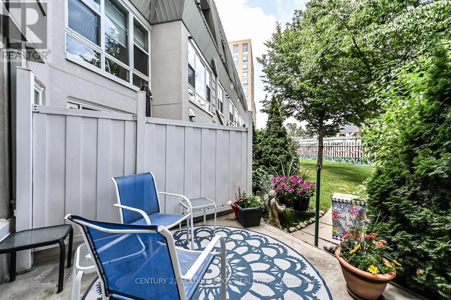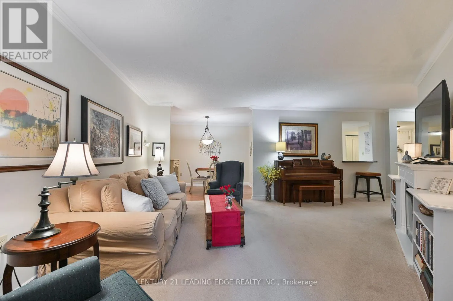 Cross Streets: Hwy 7 & Eureka. ** Directions: Hwy 7 to Eureka to Anna Russell. Welcome to this beautifully maintained 900 sq ft Crocus model in the highly desirable Wyndham Gardens, offering bright, spacious living in a vibrant 55+ community. This thoughtfully designed unit features a generous, updated galley kitchen with ample cabinetry, counter space, and a convenient pass-through to the living area. The open-concept living and dining room includes a cozy fireplace and overlooks the inviting solarium, ideal for relaxing or entertaining guests. The sunlit primary bedroom boasts a walk-through closet leading to a stylish semi-ensuite bath, complete with a walk-in shower and dual shower heads. Step outside to enjoy your own private patio and garden, a rare and tranquil outdoor retreat. Additional features include a large walk-in storage closet and convenient in-suite laundry. Perfectly located just steps from transit, parks, and all the charm and amenities of Main Street Unionville. (id:27476)