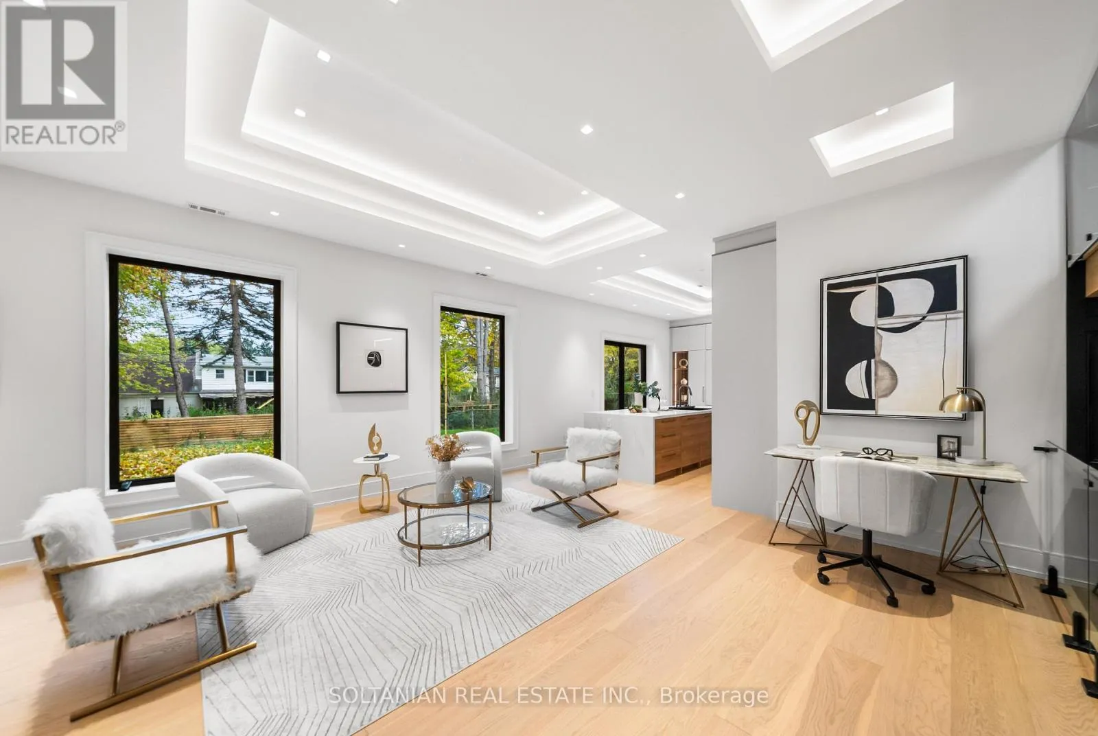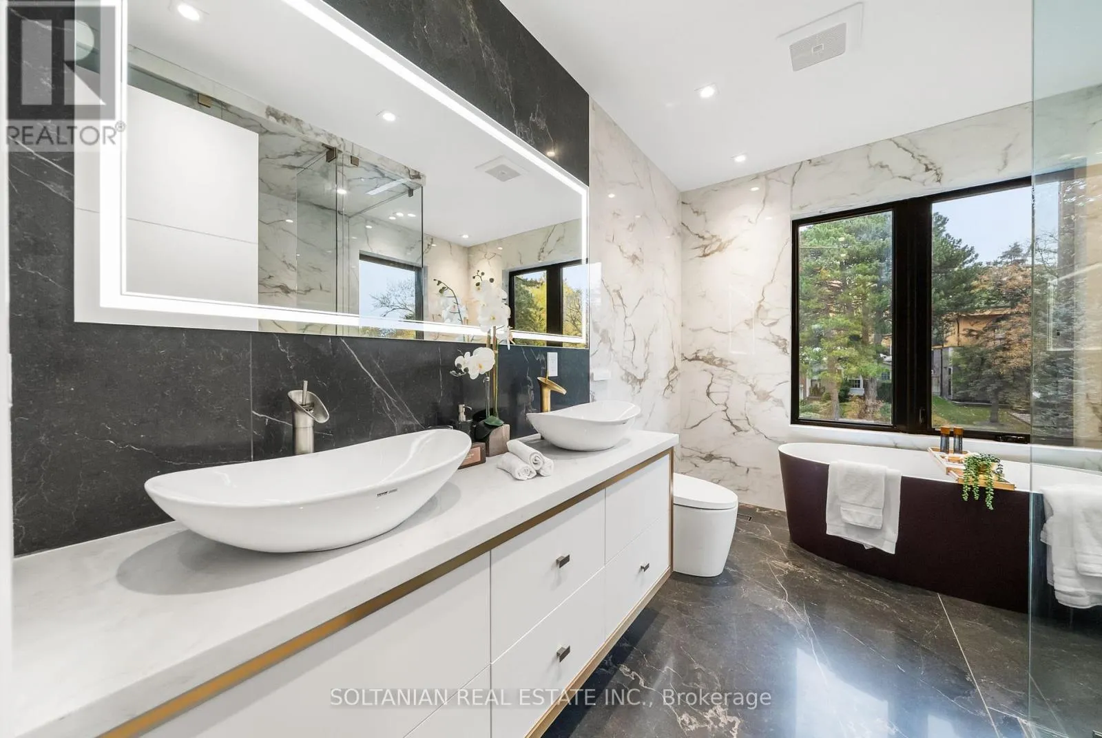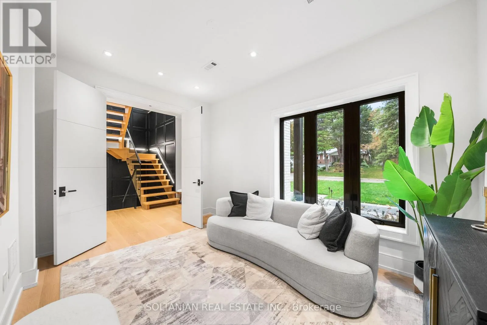 Cross Streets: Bayview/Steeles/Laureleaf Rd. ** Directions: Follow GPS. Unbeliavble opportunity! This new custom-built masterpiece on a premium 60 ft lot in 1 of the area's most desirable neighborhoods. Unimagineable value for quality and craftsmanship.Extraordinary residence blends modern architecture, elegant design offering a lifestyle of comfort and sophistication. Every inch of this home has been thoughtfully curated for those who appreciate fine living and contemporary elegance. Step inside to a breathtaking main level featuring 11ft ceilings, intricate coffered details, and halogen lighting that creates an airy, inviting atmosphere.The great room is the showpiece boasting a striking slab fireplace wall, custom entertainment area, and oversized picture windows with tranquil treetop views.The chef-inspired kitchen is both functional and stunning, complete with an oversized waterfall island, stone countertops, top-of-the-line stainless steel appliances, and a seamless flow to the dining and family areas ideal for gatherings large or small. The custom glass staircase railing, imported porcelain finishes, and designer lighting add timeless appeal throughout Upstairs, discover 4 spacious bedrooms, each with custom closets and refined finishes.The primary suite is a serene retreat with a sculpted accent wall, tray ceiling, and a 7pc spa-inspired ensuite featuring floor-to-ceiling porcelain, gold fixtures, and a body-spray shower system for the ultimate in relaxation. The fully finished lower level offers a wet bar with beverage fridge & a stone countertop w breakfast bar, perfect for entertaining or extended family. 5th bedroom and full designer washroom complete this space. Additional highlights include a video camera doorbell, designer lighting & countless custom upgrades. Step into your own private oasis a spacious, park-like backyard surrounded by mature trees, offering both privacy and serenity. A true showpiece experience the beauty, quality, and luxury, Don't miss the chance to own a stunning property like this in todays market! (id:27476)
