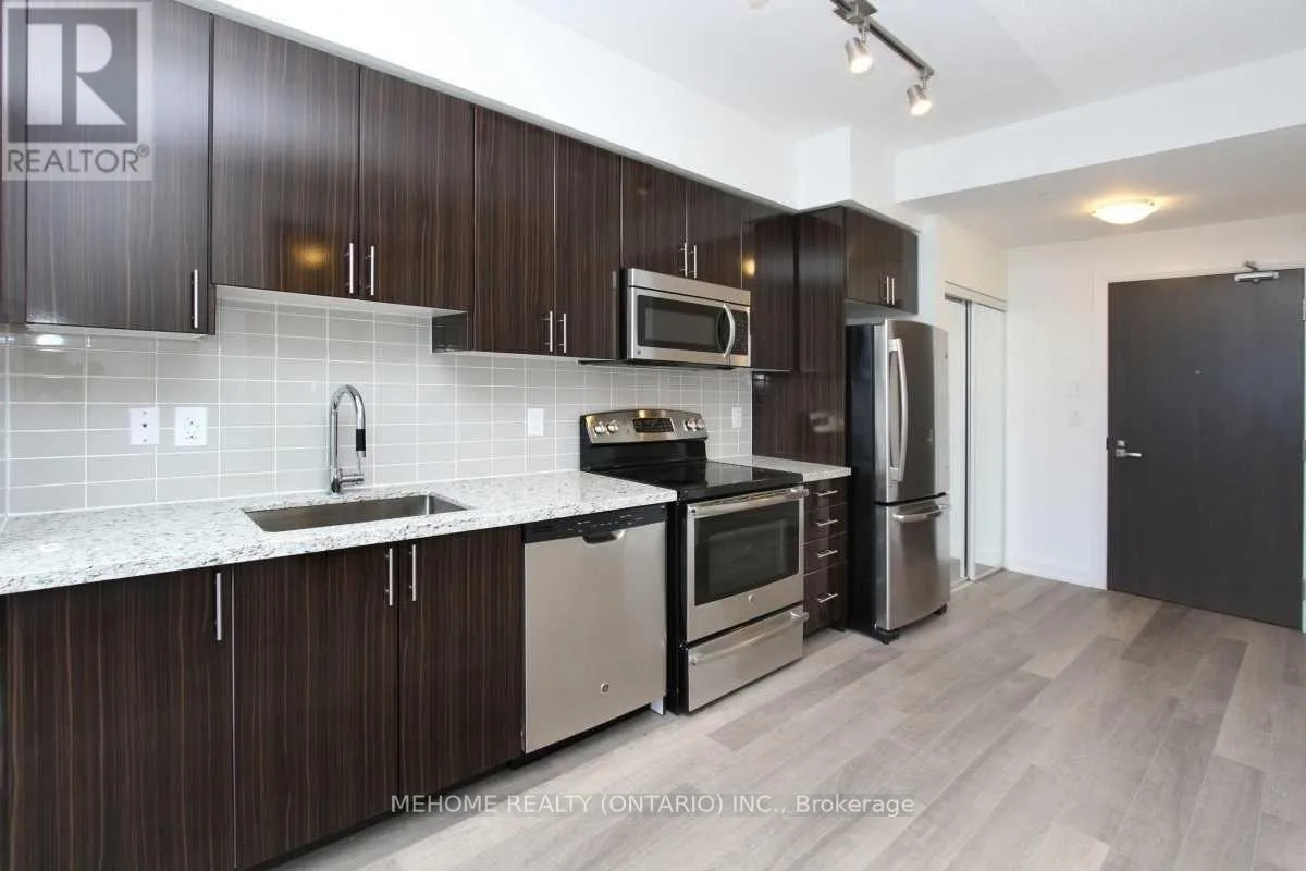 Cross Streets: Yonge/Steeles. ** Directions: w. Beautiful World On Yonge Unit By Liberty Development!! 1 Bedroom + 1 Bathroom With Unobstructed West View. Excellent Layout With 9 Ft Ceilings, Dark Kitchen Cabinets, Granite Countertop, Large Windows & Laminate Flooring Throughout. Direct Access To Local Retailers On Main Floor, Close To Ttc Finch Subway Station & Shopping Malls. A Definite Must See!! (id:27476)