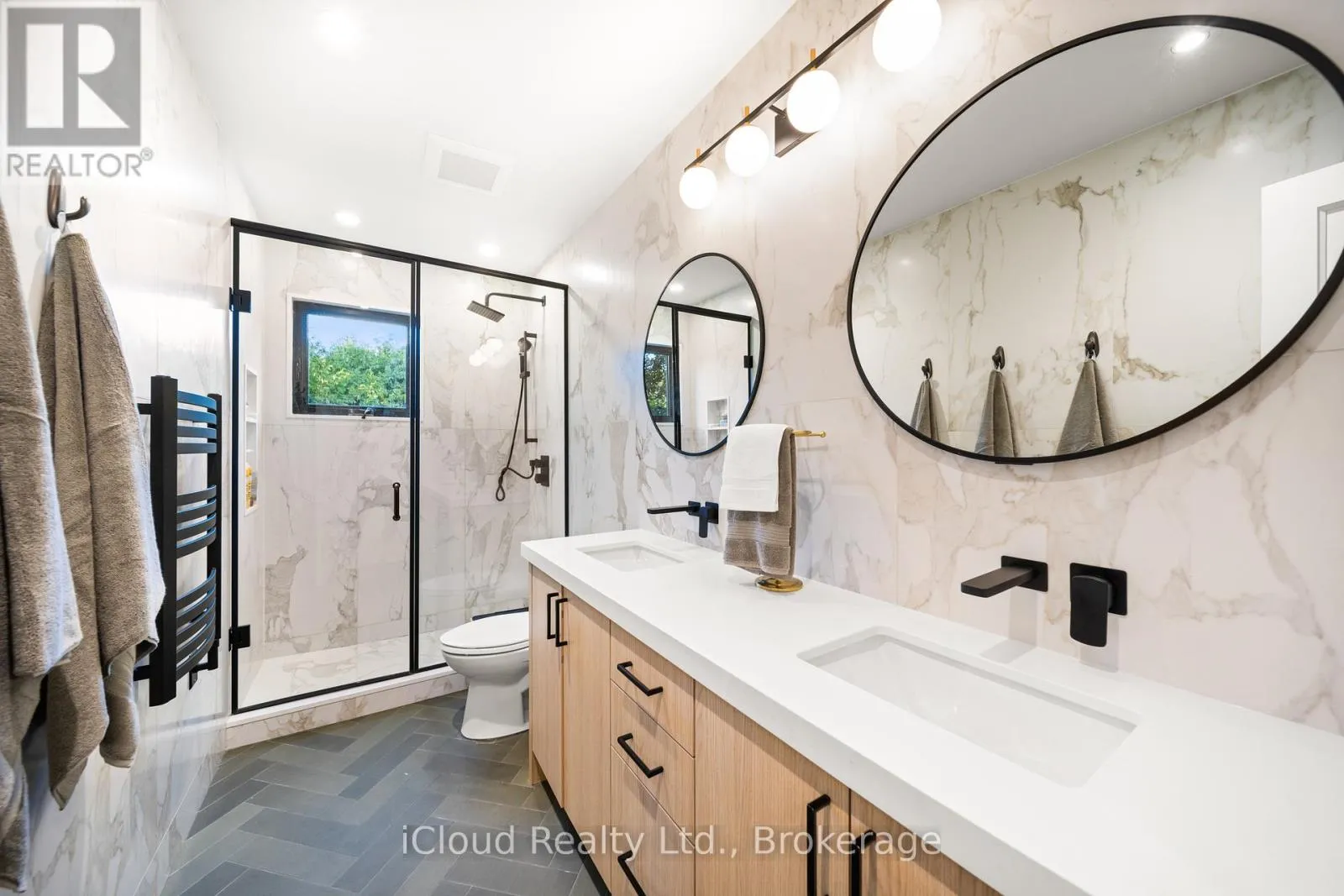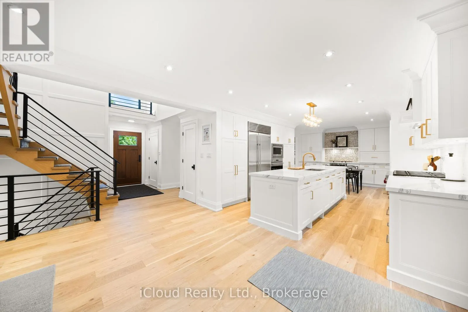 Hwy 7 & Ninth Line Exceptional fully renovated 2-storey residence situated on a premium 55.95 ft. wide lot, offering 4+1 bedrooms, 4 bathrooms, and parking for 6 vehicles with a double-car garage and 4-car driveway. Ideally located just steps from Historic Main Street Markham, renowned schools, Markham/Stouffville Hospital, public transit, and scenic parks and trails, this home provides the ultimate blend of convenience and refined living. Completely transformed in 2017-2018, the property showcases meticulous craftsmanship and high-end finishes throughout, including new windows, roof with ice & water shield and vapour barrier, custom kitchen and closets by Distinctive by Design, Cambria countertops with lifetime warranty, high-end appliances, custom solid wood doors with upgraded hardware, and a stunning custom staircase by Stairhaus. The interiors are enhanced with white oak hardwood floors, pot lights throughout, motorized blinds, and four fully renovated bathrooms. The finished lower level offers an additional bedroom, recreation area, wet bar, and 3-piece bathroom, creating versatile living space for family or guests. Exterior upgrades include stucco finish, professional landscaping with irrigation system, low-maintenance turf backyard, new cedar fencing, hot tub, new deck, custom garage doors, epoxy-coated garage floors, and security cameras. Mechanical updates ensure peace of mind with a new furnace and A/C (2018) and hot water tank (2024). A true lifestyle home- this residence embodies luxury, functionality, and timeless design in one of Markhams most desirable communities. (id:27476)