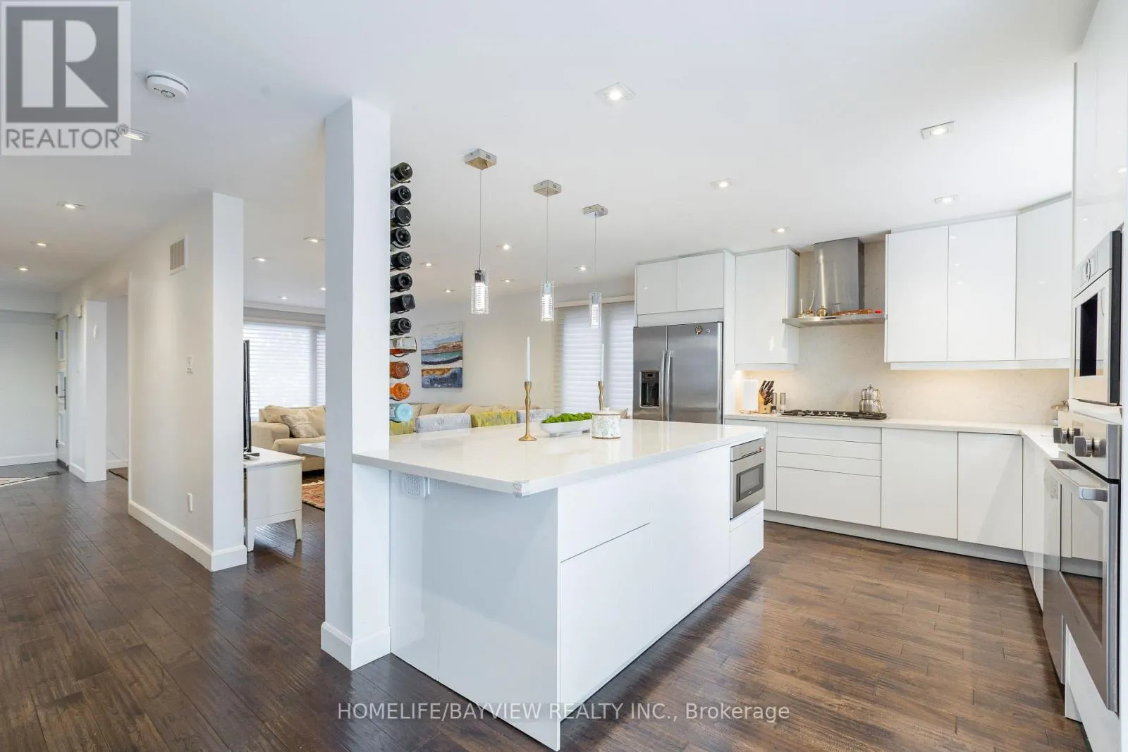 Cross Streets: Bayview/ Green Lane/ Willowbrook. ** Directions: Willowbrook / Green Lane. Excellent Location, Premier Listing, A well-maintained family home in a quiet neighborhood, Stunning 3+1 bedrooms (1 out of the 4 original bedrooms converted to a huge walk-in closet. It can easily be converted back), Custom kitchen featuring High-end Built-in appliances, oversized Caesarstone counter island, Caesarstone backsplash. Open concept Kitchen/ living/dining with hardwood floors, W/O to a raised Deck from Kitchen that leads to back yard. Spacious finished W/O basement to fenced/ private backyard. Additional bedroom / office in basement. No sidewalk, driveway fit up to 4 vehicles. Close to top ranking schools in highly desirable Willowbrook area, amenities, parks, shops, plazas, major highways. This is a Perfect house For Entertaining Friends and family. Ready to move in and enjoying this cozy & welcoming home. (id:27476)
