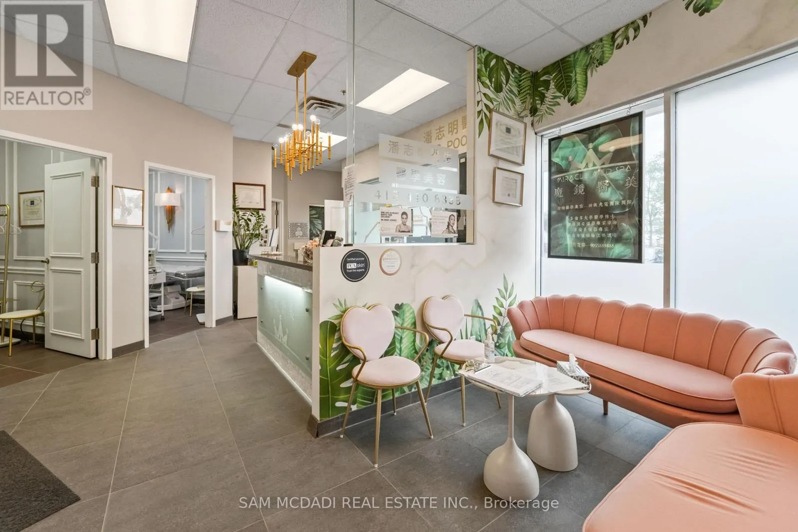 Cross Streets: Hwy 7/Commerce Valley Dr W. ** Directions: Via Hwy 7/York Regional Rd 7, turn right, then left and the unit will be on the right. Welcome to 505 Highway 7 East, Units A26 & 27, a strategic address in the heart of Markham's bustling business corridor. Rare corner units with many display windows facing busy Highway 7 offer plenty of street level exposure. Offering BC zoning, this combined double-unit provides flexibility for medical, dental, professional, retail, or service-based businesses. The layout is thoughtfully designed to provide versatility, functionality and elegance. A welcoming lobby and reception area set the stage for a professional first impression, while multiple private commercial rooms/offices allow for a variety of uses, whether its consultation rooms, treatment spaces, or staff work areas. A dedicated staff area, office, and washroom make it easy to run daily operations smoothly. With a spacious interior, this unit balances efficiency with comfort. Clients will appreciate the convenience of being along the highly visible Hwy 7 strip, surrounded by restaurants, shopping, medical offices, and easy access to Hwy 404, Hwy 407, and public transit. The plaza also provides ample parking, ensuring a hassle free visit for both staff and visitors. Monthly condo fees include common area maintenance, indoor/outdoor parking, and mall security. For buyers, this property offers a turnkey opportunity to step into one of Markham's most recognizable commercial hubs with space designed for growth, visibility, and client satisfaction. (id:27476)