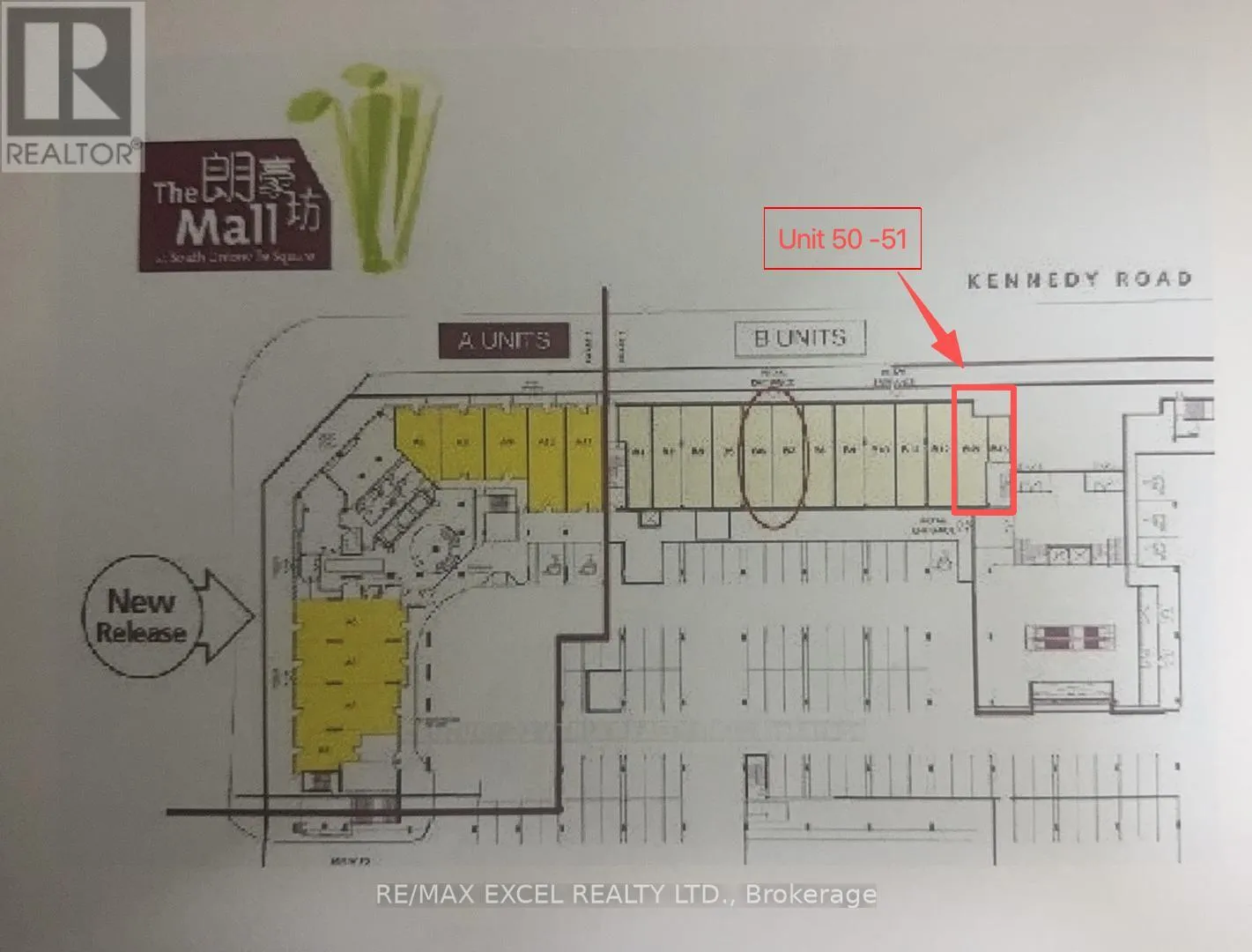 Kennedy Rd & Hwy 7 Prime Ground-Floor Commercial Units at Langham Square - Unionville (Facing Kennedy Rd). Exceptional opportunity to own two combined ground-floor units located by the main mall entrance at Langham Square. Total Gross Area: 698 + 264 sq ft, Net Area: approx. 867 sq ft. Steps from T&T Supermarket, close to public transit, across New Kennedy Square, surrounded by strong residential and commercial demand. Ideal Uses for food or café, dental, medical office, spa, travel agency, insurance office, courier service & pick-up, student/internet lounge, and many other retail or professional uses. (id:27476)