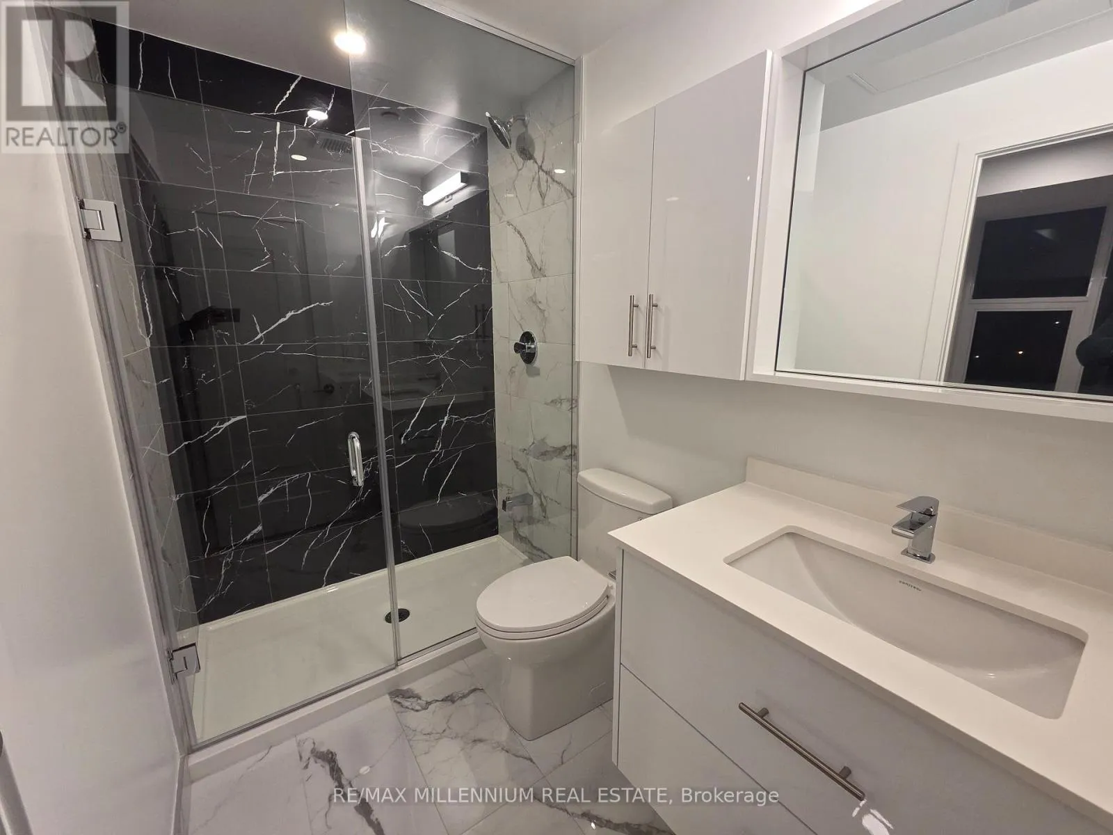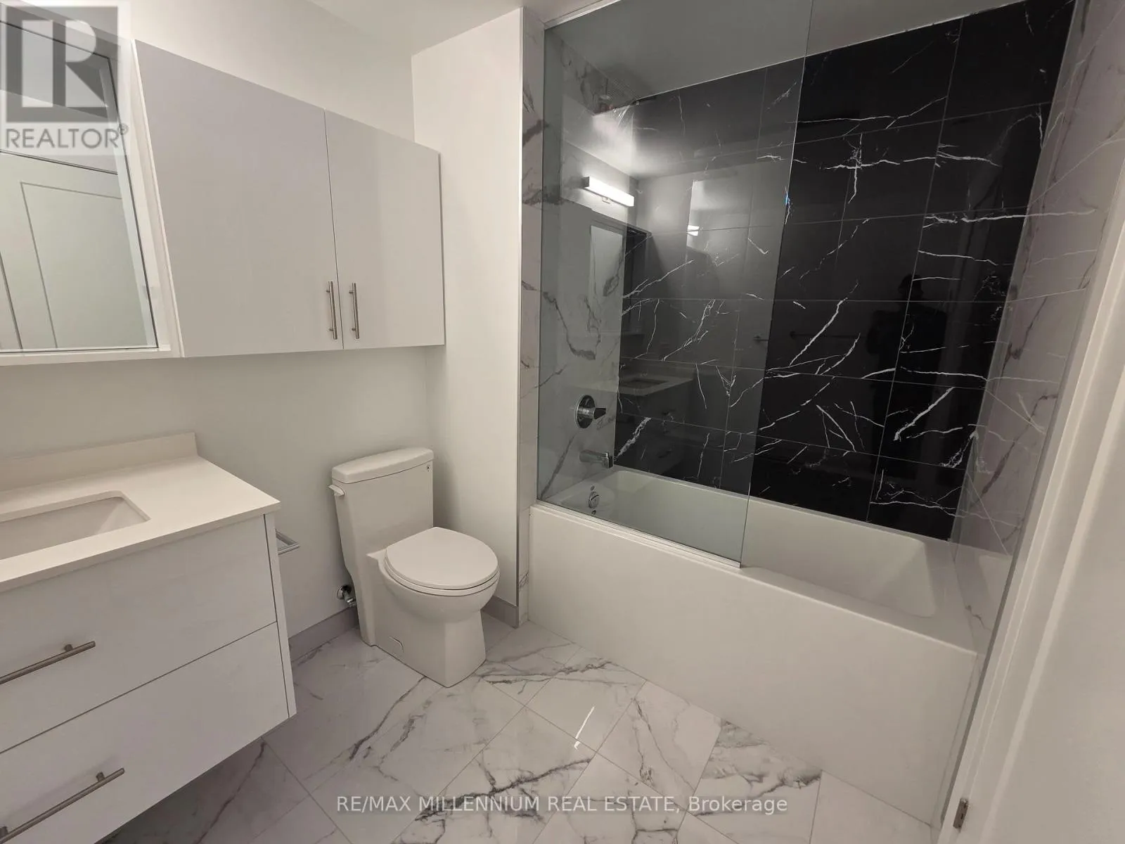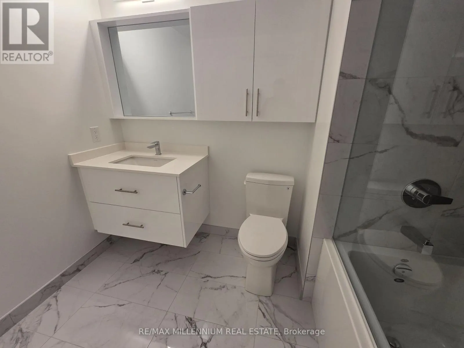 CASTLEMORE AVE / MARKHAM RD Welcome to Joy Condos, where modern elegance, smart design, and unbeatable convenience come together in one of Markham's most desirable communities. This spacious 1 + Den, 2-Full-Bathroom suite offers an exceptional layout ideal for professionals, couples, or downsizers seeking comfort without compromise. From the moment you enter, you're greeted by a bright, open-concept living space featuring floor-to-ceiling windows, refined finishes, and a thoughtfully balanced blend of style and functionality. The chef-inspired kitchen boasts sleek cabinetry, stone countertops, stainless-steel appliances, and a breakfast bar perfect for casual dining or entertaining. The generous living and dining area flows seamlessly to the private balcony-your personal retreat for morning coffee or sunset relaxation. The primary bedroom provides a peaceful escape with ample room for a king-sized bed, a large closet, and access to a beautifully appointed full bathroom. The separate den is the perfect flexible space: ideal for a home office, guest room, or creative studio-offering the rare convenience of two full baths in a 1+den layout. Residents of Joy Condos enjoy resort-style amenities including a modern fitness centre, indoor pool, sauna, yoga room, party lounge, library, guest suites, and 24-hour concierge. Situated in the heart of Markham, you're steps from transit, top-rated schools, shopping, cafés, parks, grocery stores, and dining, with easy access to highways and major employment hubs. (id:27476)