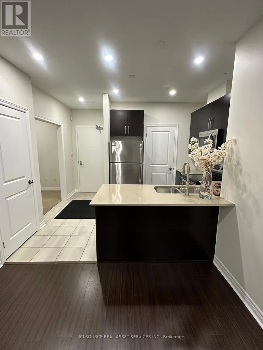 Cross Streets: Markham Rd and Denison St. ** Directions: South on Markham Rd. on East Side once you cross over Denison intersection. Welcome to this beautifully upgraded 1 Bedroom + Den condo in the heart of Markham, available January 1, 2026. Located on the ground floor - enjoy convenient access with no elevators required. This modern unit offers a bright, open-concept layout with high-end finishes throughout. The kitchen features stainless steel appliances, quartz countertops, and smooth ceilings with smart pot lights and dimmers. The spacious living area includes zebra roller shades for a clean, contemporary look. The unit also includes a front-load washer and dryer for your convenience. Building amenities include a fully equipped gym, games room, and event space. Enjoy peace of mind with on-site security from 3 p.m. to 3 a.m., underground parking with camera surveillance, and one storage locker. Extras / Highlights: Includes stainless steel fridge, stove, dishwasher, microwave, front-load washer & dryer, zebra blinds, all light fixtures, 1 underground parking space, and 1 storage locker. Ground-floor access (no elevators),smart pot lighting with dimmers, quartz counters, and access to premium building amenities (gym, games room, event space). *For Additional Property Details Click The Brochure Icon Below* (id:27476)