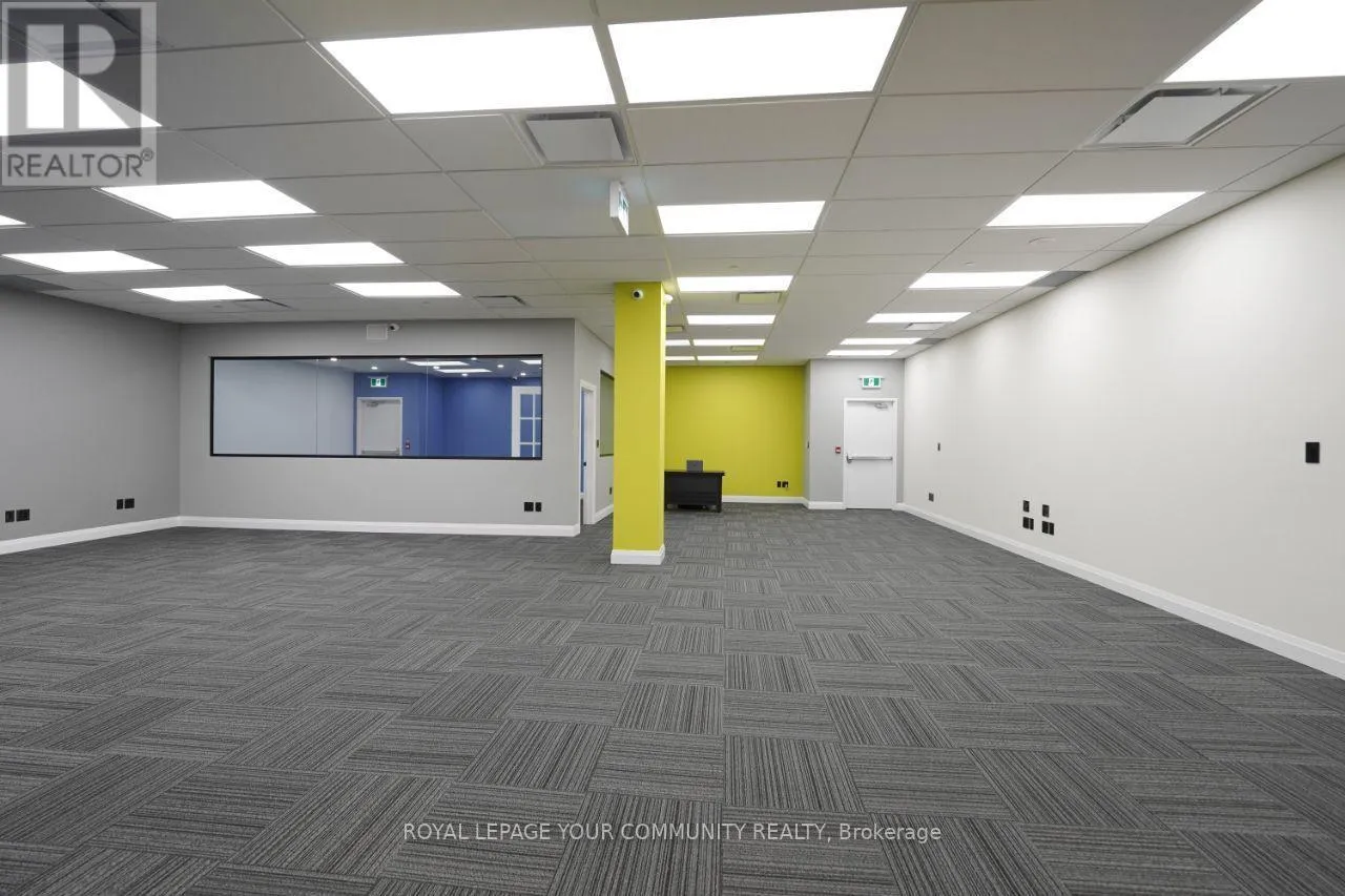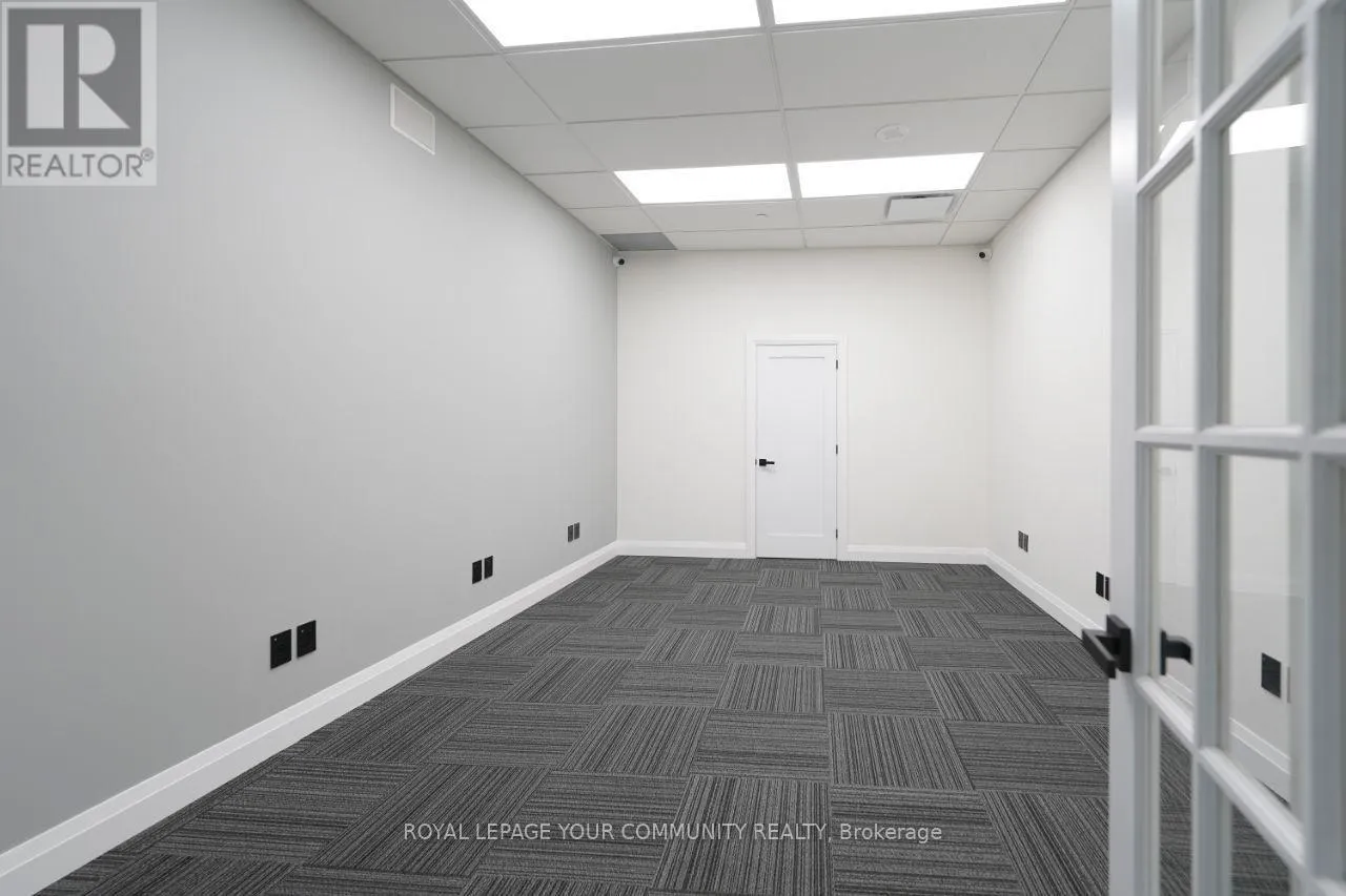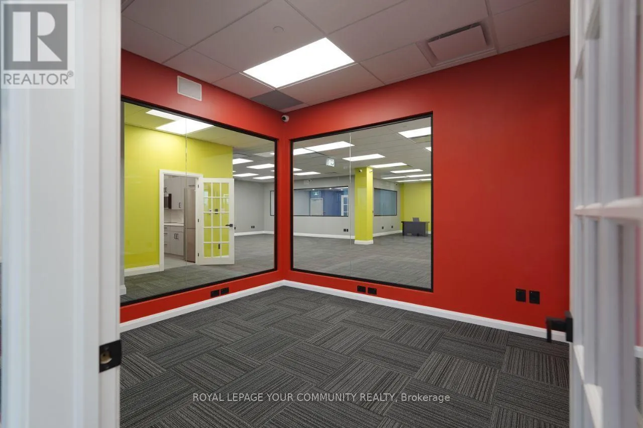 Cross Streets: Woodbine/16th. ** Directions: West side of Woodbine Ave (north of 16th Ave), Building Name: King Square. This property is approximately 3,900 square feet and was newly completed in January 2025, so it's essentially brand new. Originally delivered as a shell, it has been fully built out to a high standard.It features seven rooms, including a full kitchen and an additional kitchenette, as well as a spacious washroom that includes a shower. The flooring is high grade commercial carpet, and the ceilings are not your standard type-they're high-end with about a 12-foot height.The property also includes a storage area and has two separate entrance doors. There is a semi-private elevator, and as mentioned, there's also a kitchenette in addition to the main kitchen.The office is fully networked with Cat6 cabling throughout, providing network access everywhere, and it has a 200-amp power supply with a dedicated 600-volt line. Both 110-volt and 240-volt three-phase power options are available.It's equipped with a full fire suppression system and built-in ceiling speakers for a central music system. There are about 32 cameras installed for security, and the two separate entrances are fitted with Ring bells and dedicated security cameras.Finally, the property is currently combined into a single unit from three separate titles, making it a very versatile and ready-to-use office space. (id:27476)
