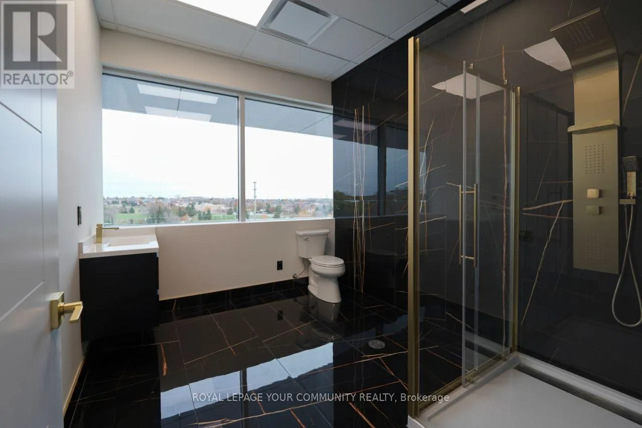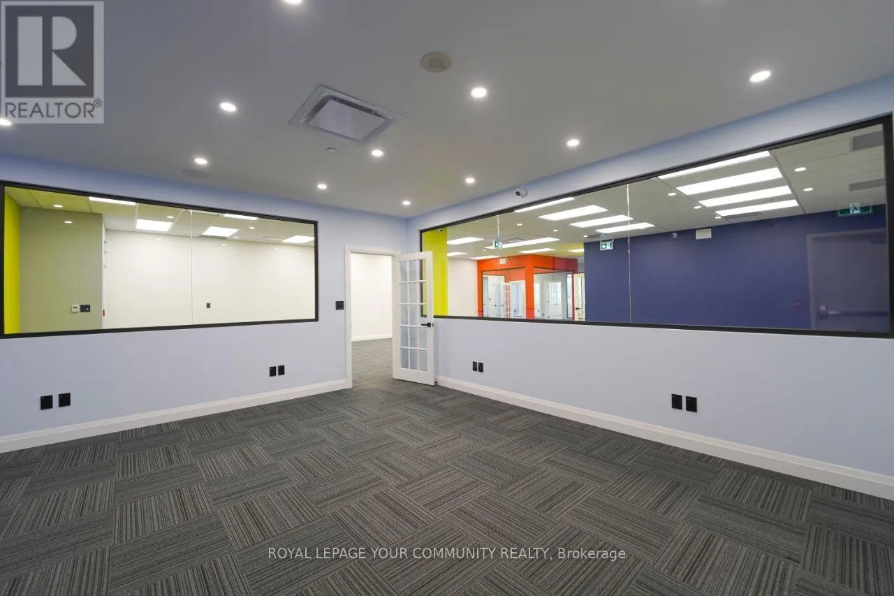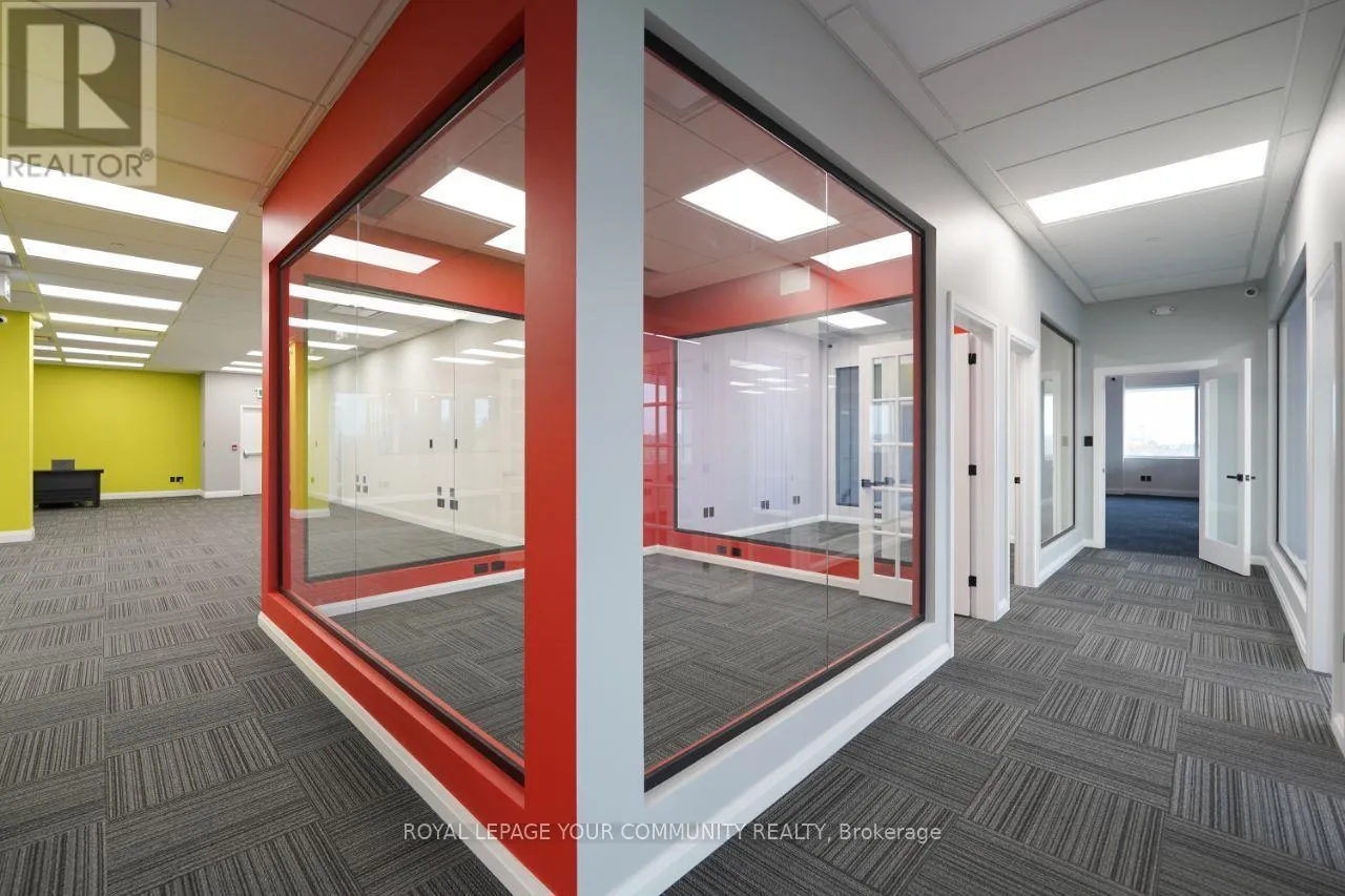 Cross Streets: Woodbine/16th. ** Directions: West side of Woodbine Ave (north of 16th Ave), Building Name: King Square. This property is approximately 3,900 square feet and was newly completed in January 2025, so it's essentially brand new. Originally delivered as a shell, it has been fully built out to a high standard.It features seven rooms, including a full kitchen and an additional kitchenette, as well as a spacious washroom that includes a shower. The flooring is high grade commercial carpet, and the ceilings are not your standard type-they're high-end with about a 12-foot height.The property also includes a storage area and has two separate entrance doors. There is a semi-private elevator, and as mentioned, there's also a kitchenette in addition to the main kitchen.The office is fully networked with Cat6 cabling throughout, providing network access everywhere, and it has a 200-amp power supply with a dedicated 600-volt line. Both 110-volt and 240-volt three-phase power options are available.It's equipped with a full fire suppression system and built-in ceiling speakers for a central music system. There are about 32 cameras installed for security, and the two separate entrances are fitted with Ring bells and dedicated security cameras.Finally, the property is currently combined into a single unit from three separate titles, making it a very versatile and ready-to-use office space. (id:27476)