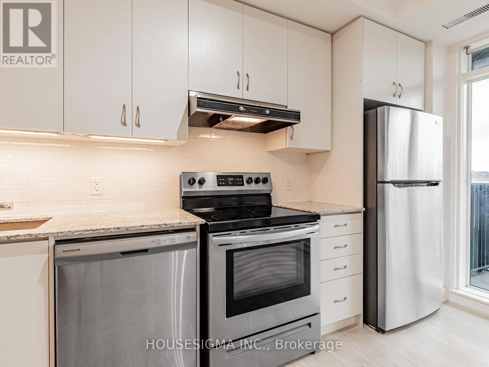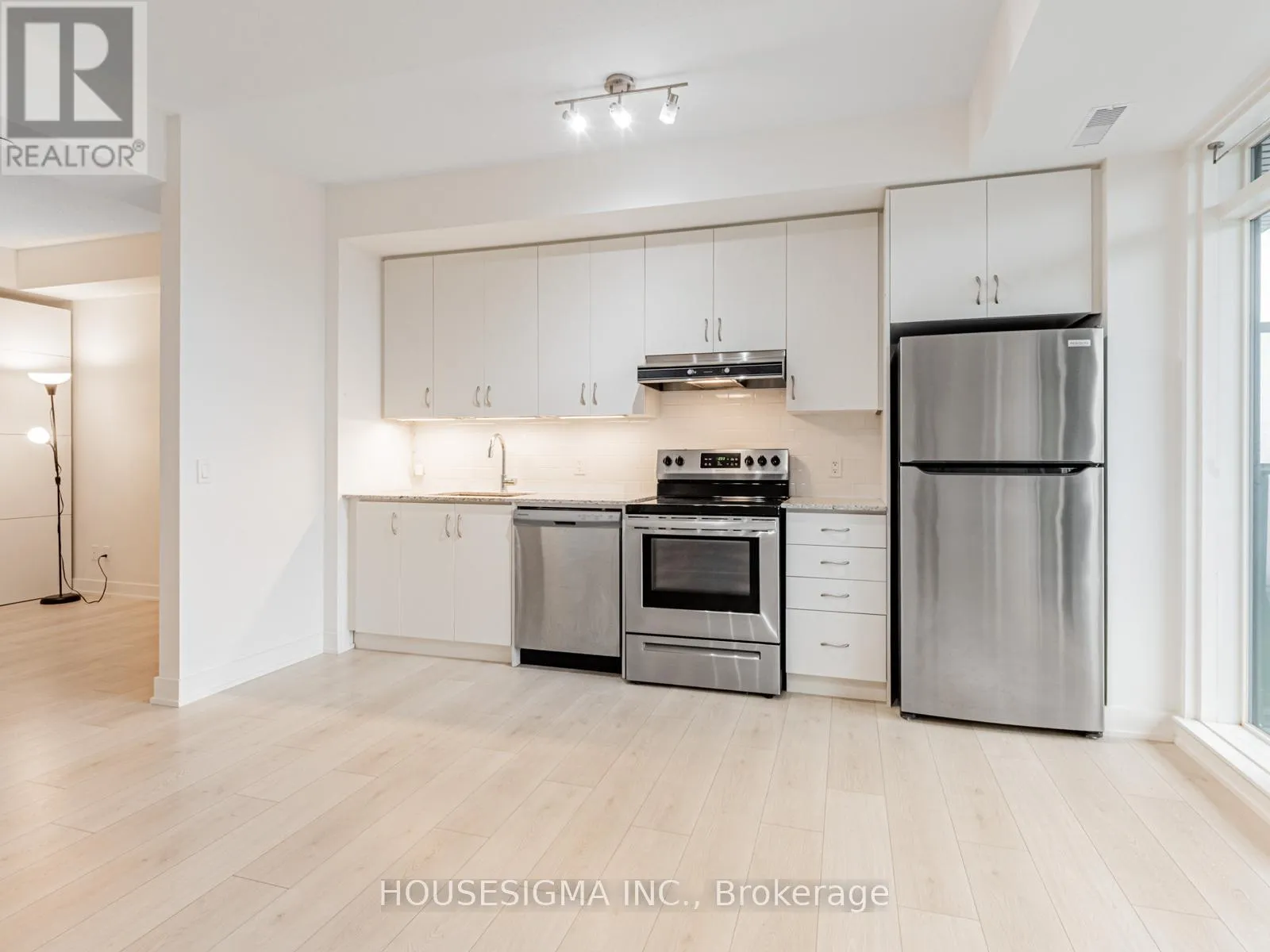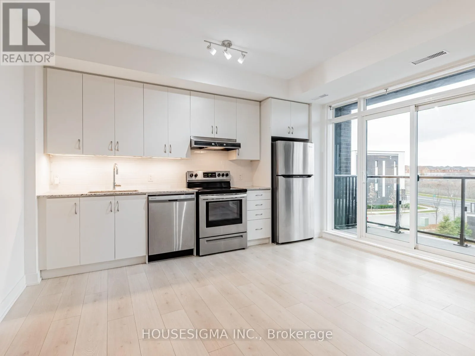 Markham Rd & Bur Oak Ave Discover this contemporary 1+den condominium by Aspen Ridge Homes, offering 796 sq. ft. of bright, well-planned living in one of Markham's most convenient neighbourhoods. The suite features 9-ft ceilings, floor-to-ceiling windows, and sleek laminate flooring throughout. The large, enclosed den with a full wall and privacy door functions perfectly as a second bedroom, office, or guest room. A modern kitchen equipped with stainless steel appliances, stone countertops, and ample cabinetry makes daily living and entertaining effortless. Both the living area and primary bedroom provide direct access to a private balcony, creating a seamless indoor-outdoor flow. This unit also includes one underground parking space and a storage locker. Just steps from Mount Joy GO Station, grocery stores, restaurants, parks, and schools, this home offers unmatched convenience for commuters and families alike. A rare opportunity to move into a well-connected and highly desirable Markham community. (id:27476)
