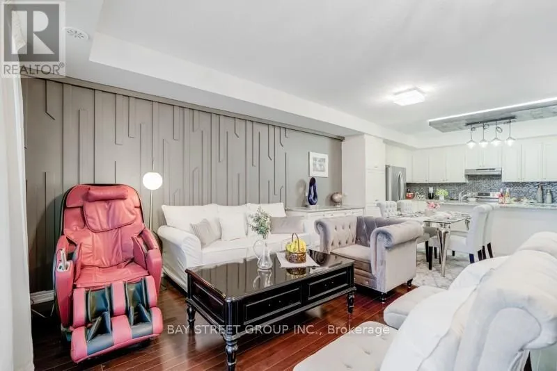 Hwy 407/9th Line Welcome to this Luxury 3,492 sq.ft. ARISTA Baywood Model in prestigious Boxgrove Village, featuring a valuable 890 sq.ft. ground-floor commercial (flex space)-perfect for retail, office, studio, medical or professional services. The commercial storefront faces Copper Creek Drive, offering premium exposure with large display windows and steady traffic. The ground level also includes an attached 2-car garage plus a driveway for 4 additional cars, providing parking for up to 6 vehicles, an exceptional advantage for both residential and commercial use. The main residential floor showcases an expansive open-concept great room with rich hardwood flooring, elegant wall trims, and a striking staircase with wrought-iron pickets. The upgraded chef's kitchen features granite countertops, stainless steel appliances, mosaic backsplash, a large island, and a stylish breakfast area. This level also includes 2 full bedrooms, laundry room, and a walkout to a balcony features motorized retractable screens that keep out mosquitoes and snow, allowing you to enjoy fresh air year-round while maintaining complete privacy (you can see out, but others can't see in). The upper level includes a bright media loft with a designer wood-accent wall, two generous bedrooms. The primary suite offers a custom geometric feature wall, a walk-in closet, and a luxury 5 piece ensuite with double vanities, glass shower, and deep soaker tub. A standout highlight is the expansive third-floor rooftop terrace, providing private outdoor living ideal for entertaining, dining, gardening, children's play, or creating a custom rooftop lounge. A large outdoor storage shed is included. This property follows layout: Ground Floor - 890 sq.ft. commercial unit flex space, 2-car garage (plus 4-car driveway); Main Floor - Great room, kitchen, breakfast, bedroom, study/office, laundry, balcony; Upper Floor - Media loft, 2 large bedrooms, 2 full baths (incl. primary ensuite) and Oversized private terrace with storage shed. (id:27476)