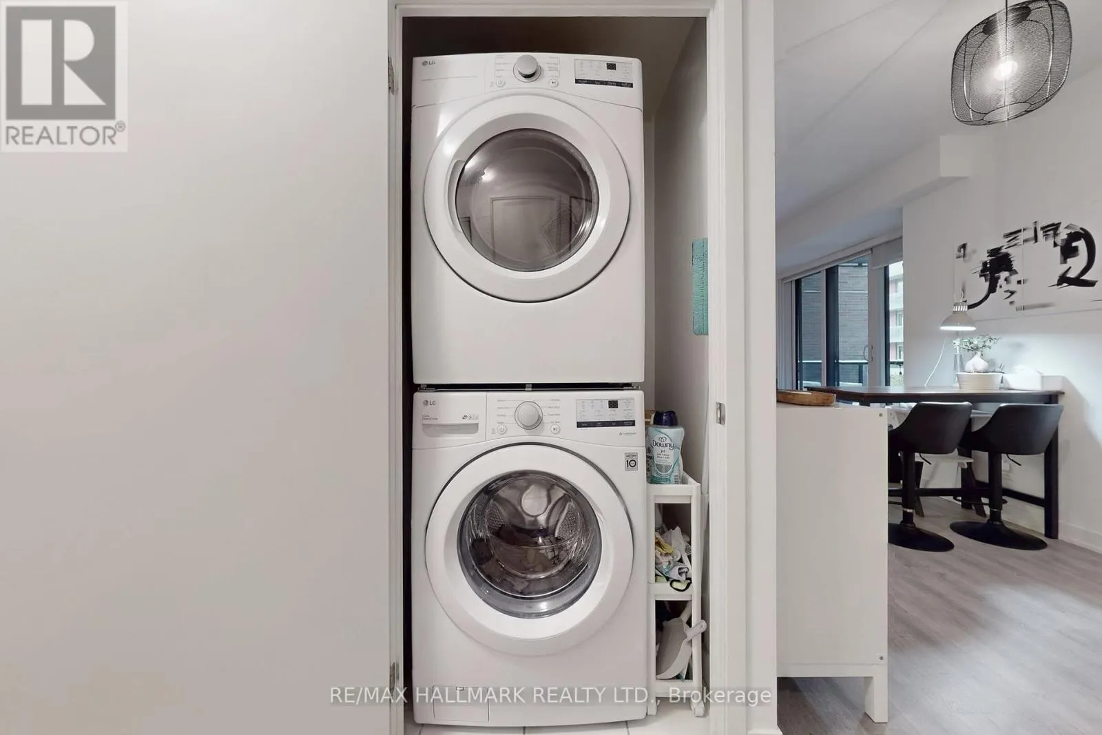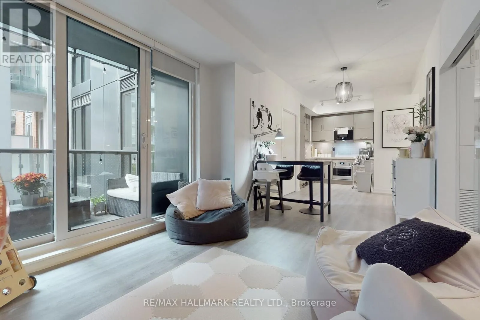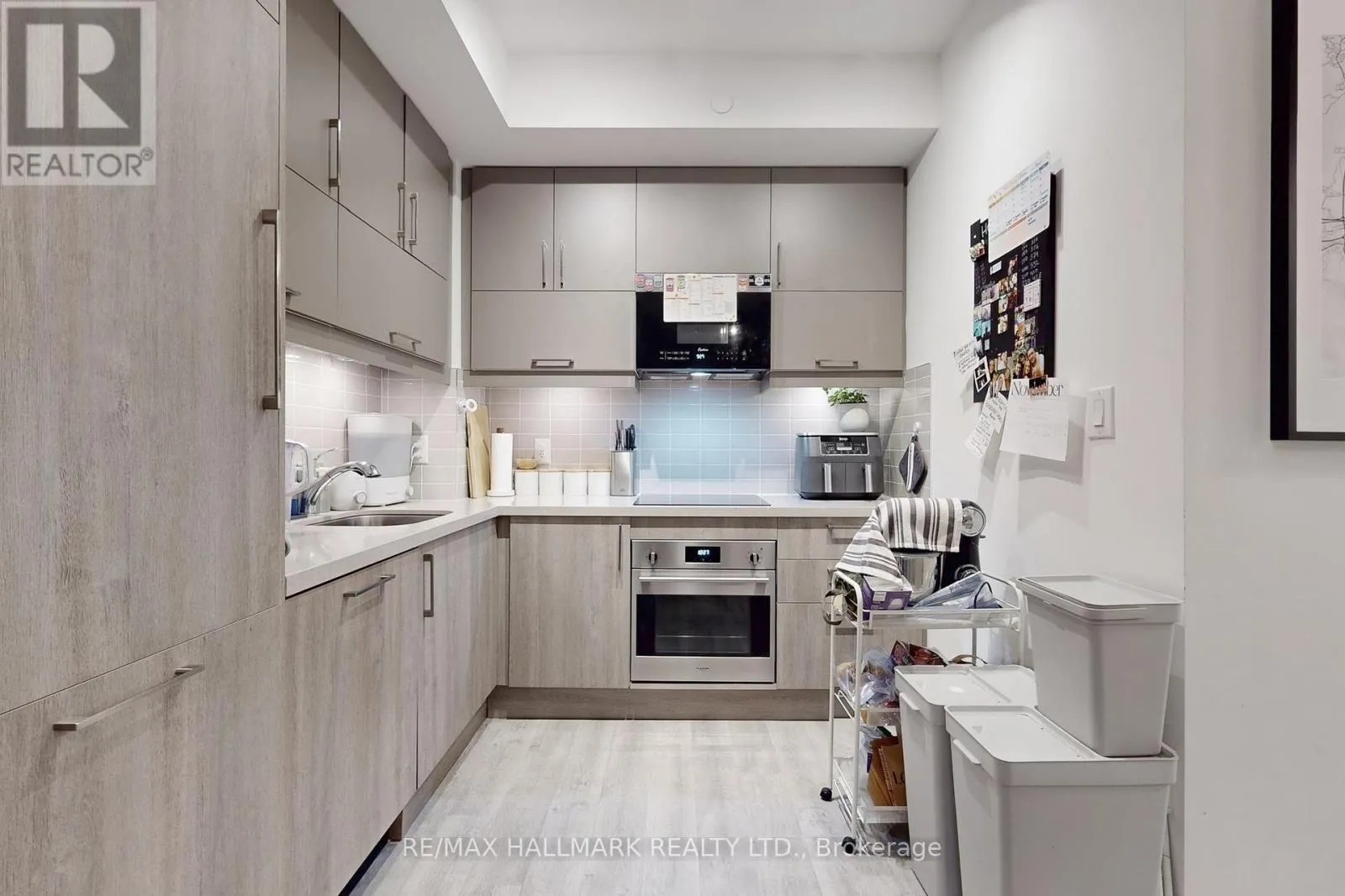 Birchmount Rd / Enterprise Blvd Experience Luxury Living In The Newly Built 'Gallery Square Condos' Perfectly Situated In Markham's Vibrant & Walkable Downtown District. This exceptional unit welcomes 9ft ceilings, accent lighting, and expansive west-facing windows that fill the space with natural light. The open-concept living and dining area seamlessly connects to a private balcony, creating an ideal setting for both relaxation and entertaining. At the heart of the home lies a sleek modern kitchen equipped with built-in stainless steel appliances, quartz countertops, a stylish backsplash, and abundant contemporary cabinetry. The primary suite showcases floor-to-ceiling windows with roller blinds, a generous closet, and a 4pc ensuite with a soaker tub and shower, floating vanity with drawers, and mirrored cabinet. The second bedroom, accessible through a sliding door, includes a closet and flexible space suitable for guests, an office, or personal retreat. A separate 3pc bathroom and in-suite laundry provide everyday convenience. Residents enjoy an impressive selection of building amenities, including a fitness centre, rooftop deck, recreation and media rooms, 24-hour concierge, and visitor parking. The unit includes one underground parking space and one locker for additional storage. Ideally located within steps of Downtown Markham's best restaurants, cafés, shops, and entertainment venues, such as Cineplex VIP and the Marriott Hotel. Effortless access to Unionville GO, VIVA Transit, Highways 404 and 407, and the future York University Markham Campus. Don't miss out on this perfect balance of modern luxury and urban lifestyle! (id:27476)