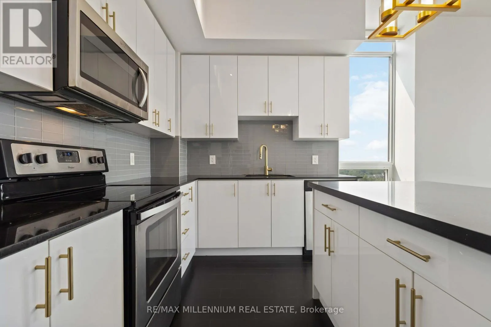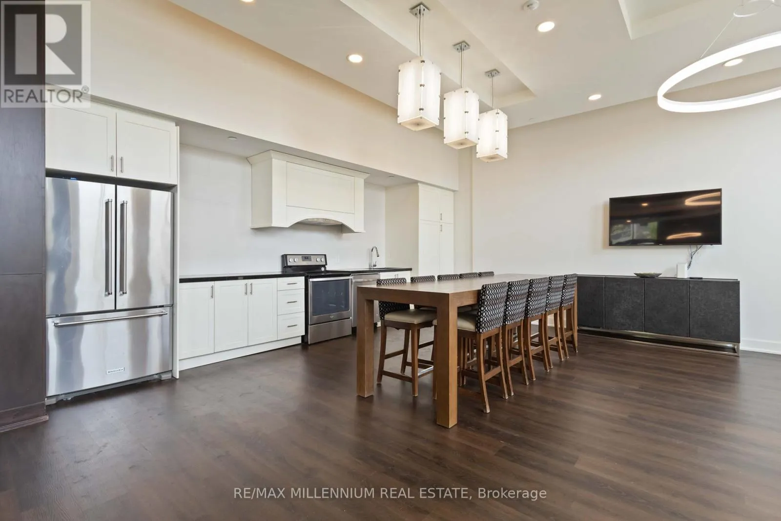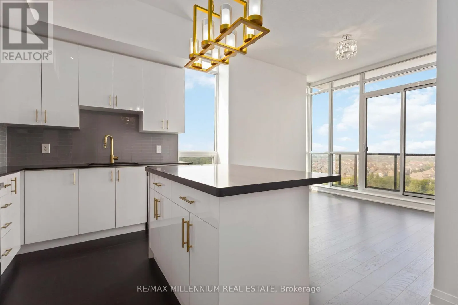 Bur Oak Ave/ Markham Rd Welcome to this bright and spacious 885 sq.ft. corner unit, freshly painted throughout and ideally located just steps from the Mount Joy GO Station in one of Markham's most desirable communities. This upgraded 2-bedroom + den suite features soaring 10-ft ceilings, large windows with unobstructed views, and elegant hardwood flooring throughout. The open-concept layout is both functional and inviting, highlighted by a sleek modern kitchen complete with quartz countertops and a custom-built quartz island that's perfect for dining and entertaining. The den offers a flexible space that can be used as a home office or reading nook, while the two full bathrooms provide both comfort and convenience. This well-maintained unit also includes ample storage, ensuite laundry, and one parking spot. Building amenities include a fitness centre, jacuzzi, party room, guest suites, and 24-hour concierge/security. With a location surrounded by parks, shops, restaurants, and direct transit access, this home truly combines luxury, lifestyle, and location. (id:27476)