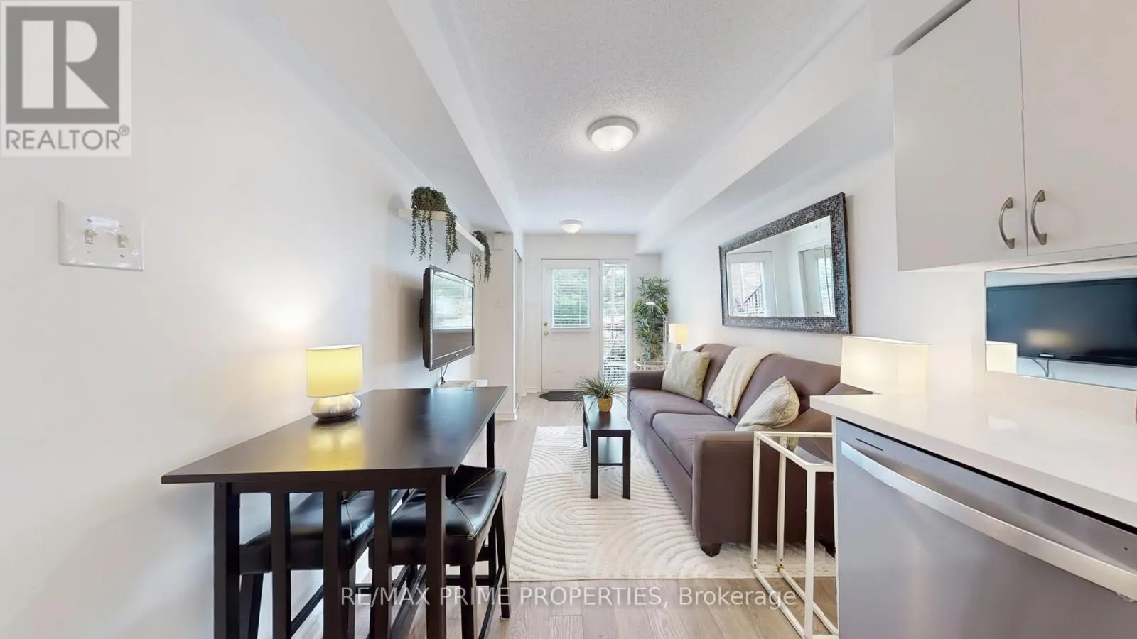 Bur Oak Ave & Ninth Line Cute. Clever. Condo goals. This sharp little number checks all the right boxes -- adorable and affordable, with just the right amount of style and substance. Whether you're a first-time buyer, smart investor, or simply looking to downsize without compromise, this unit delivers. Tucked into the vibrant, family-friendly neighbourhood of Greensborough, this Daniels-built community offers the best of both worlds: the lock-and-leave convenience of a condo with the lush, leafy vibe of a suburban street. Peaceful, walkable, and loaded with charm, it's a neighbourhood that makes you want to stay a while. Step inside through your own private, gated terrace - a generous outdoor space thats perfect for sipping your morning coffee or catching golden hour in the evenings. Inside, the open-concept living area is bright and welcoming, offering a cozy spot for movie nights, casual hangs, or curling up with a good book.The crisp white kitchen is a standout with quartz countertops, ample cabinetry, and all the prep space you need to show off your culinary chops or reheat last nights UberEats in style. The four-piece bathroom echoes the same clean, modern finishes, including a quartz vanity top and upgraded light fixture. The bedroom? It fits a queen-sized bed with room to spare, has nightstands on either side, and features a mirrored double closet complete with built-in organizers to keep your wardrobe game strong. Add in 9-foot ceilings and wide plank laminate flooring throughout, and you've got a space that feels elevated and easy. Location-wise, it's a total win: just east of Markham Road, you're 5 minutes from grocery stores, restaurants, coffee shops, and more. And if commuting is part of your life, the Mount Joy GO Station is a breezy 15-minute walk or 5-minute bike ride away. Stylish, smart, and seriously sweet - this is condo living done right. Don't let this little gem get away. (id:27476)