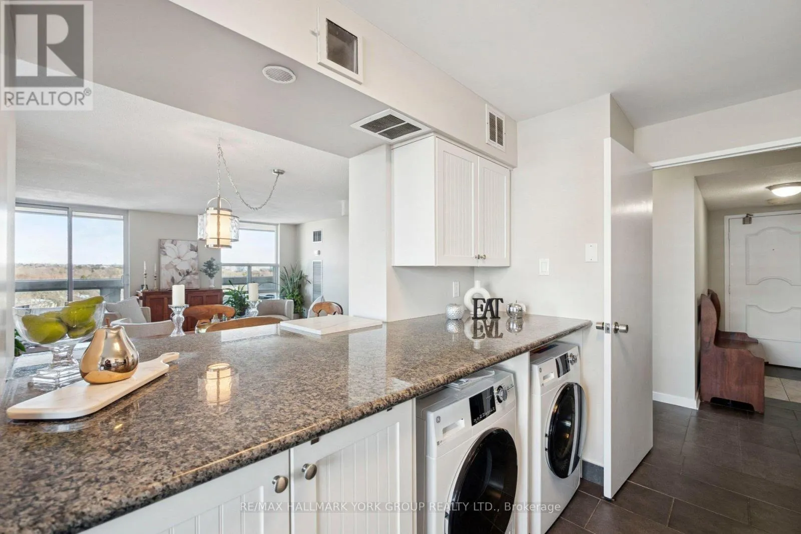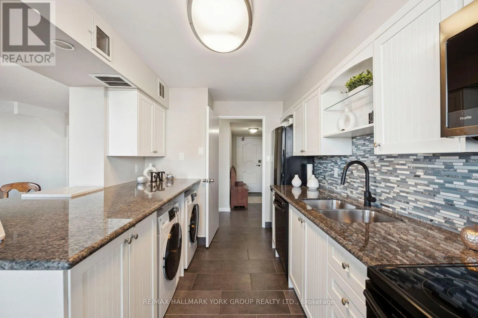 Yonge And Royal Orchard Beautiful Spacious 3 bedroom corner suite. Panoramic view of sunrise and surrounding areas. Hardwood and Porcelain tiles. A generous Primary Suite with hardwood floors and a walk in closet and ensuite with loads of cabinet space and storage. Two other bedrooms with closets and hardwood flooring. Entertainment sized Living and Dining combined room with hardwood floors and two walkouts to two oversized balconies. A modern kitchen with a wine rack, breakfast bar, glass backsplash, floor to ceiling window, built in laundry and porcelain tiled flooring. This suite has an ensuite storage locker with a free standing cabinet. Main 4pc bathroom with porcelain tile. An abundance of natural light throughout, located on the quiet side of the building. The Maintenance fee includes all utilities, high speed internet, cable tv, swimming pool, tennis court, indoor Basketball court, weight and cardio room, wood working area, billiard and ping pong rooms, bicycle storage room and designated under ground parking spot. Conveniently located within walking distance to to all amenities including, transportation, schools, groceries, shopper's, bank, restaurants, parks. The future subway makes this an excellent investment decision. This is a meticulously maintained suite definitely worth your time to view as it's an exceptional offering. (id:27476)