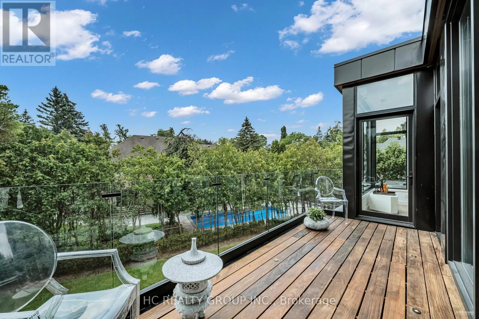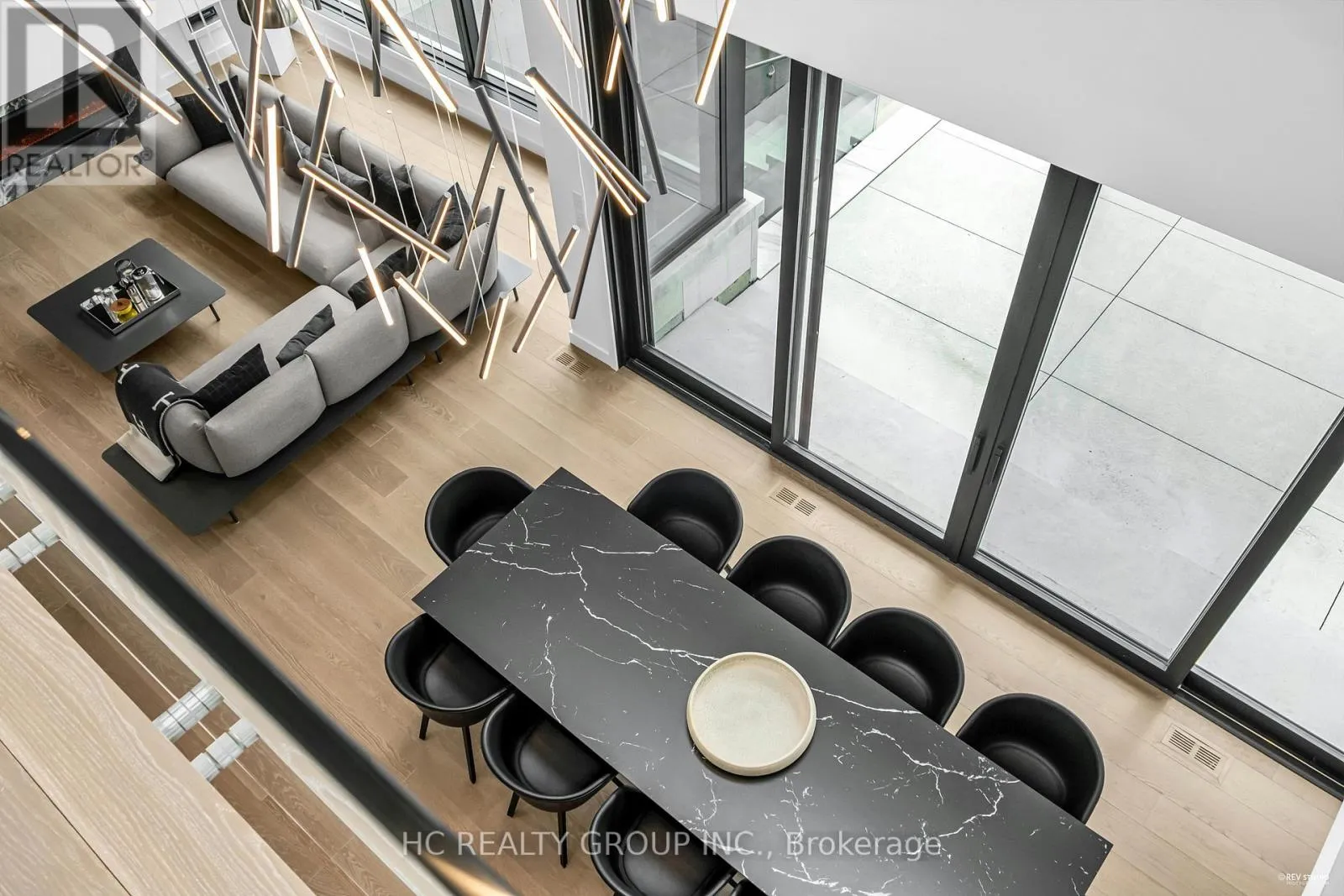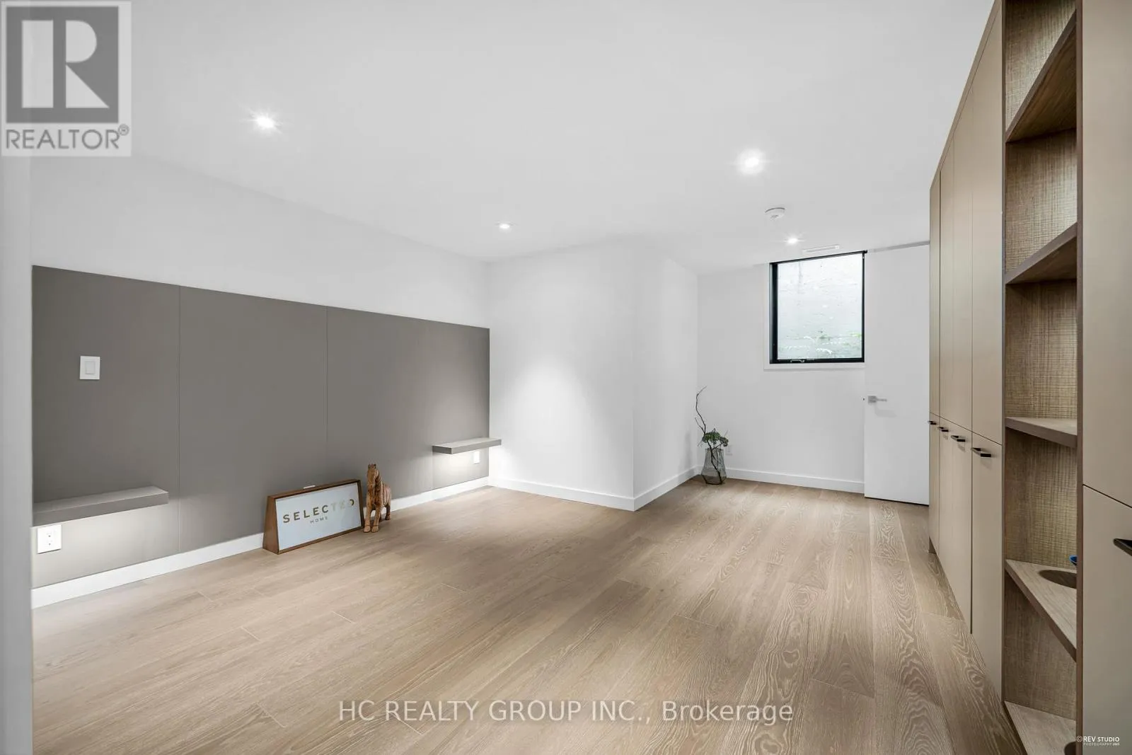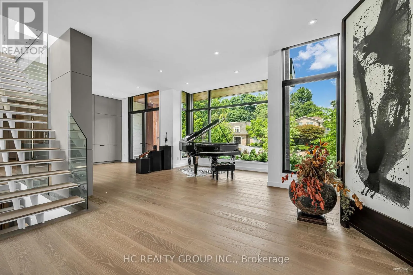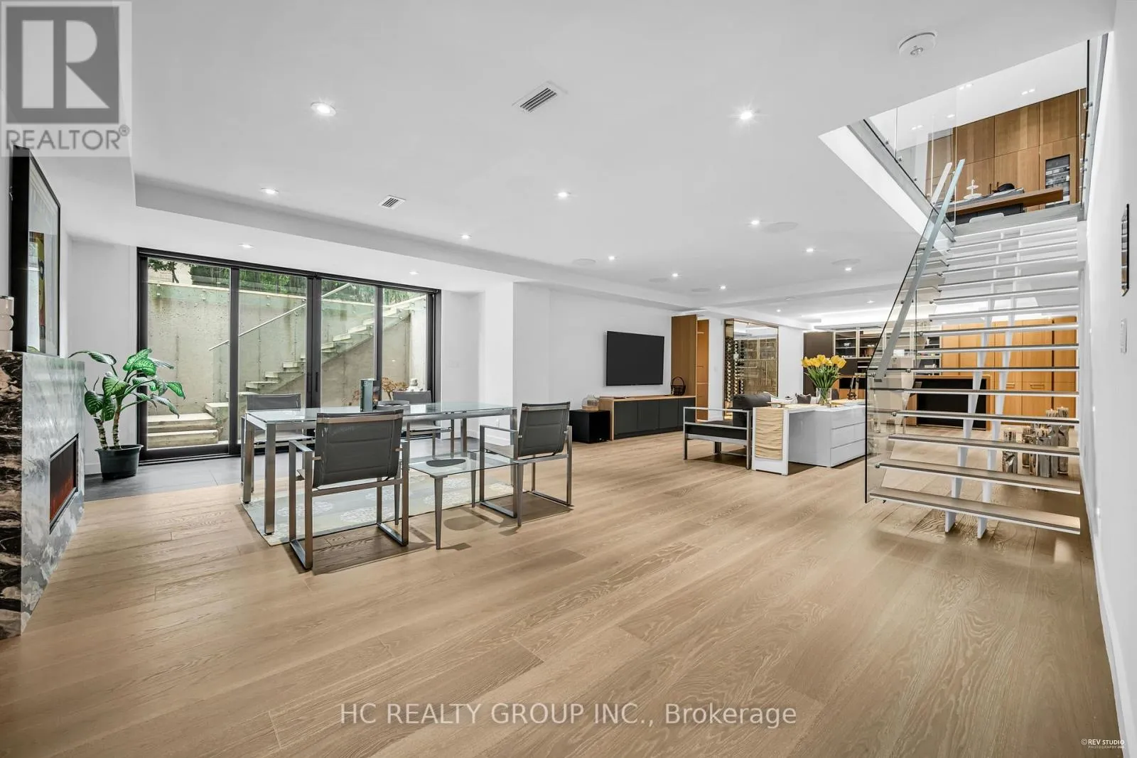Cross Streets: Bayview Ave/ Steeles Ave E. ** Directions: google Map. An extraordinary modern estate of distinction, privately set on a tranquil cul-de-sac on a rare 107.34 foot frontage lot, showcasing a refined interplay of glass, stone, and light. Designed by award-winning architect David Small, the residence features polished Ontario white marble, European aluminum-clad wood windows, and professionally landscaped grounds with mature evergreens, integrated outdoor elements, and a full irrigation system. A generous three-car garage with extra-high ceilings accommodates vehicle lifts. The main level offers a guest bedroom and a gourmet kitchen with top-tier appliances and a walk-in pantry, complemented by radiant heated floors, wide-plank European white oak, floor-to-ceiling windows, and a striking 23-foot dining room ceiling with sculptural chandelier. Floating stairs with sleek glass railings elegantly connect all levels. The upper level presents a lounge, office, and four ensuite bedrooms, including a luxurious primary retreat with a spa-inspired ensuite featuring heated floors, dual custom marble-lite floating sinks, and an expansive dressing room with premium custom cabinetry and integrated LED lighting. The lower level is designed for elevated living, featuring a recreation room, climate-controlled wine cellar, nanny suite, and fitness room. Over $500,000 in premium custom German cabinetry throughout the home unifies the interiors with exceptional craftsmanship, modern elegance, and refined luxury. (id:27476)