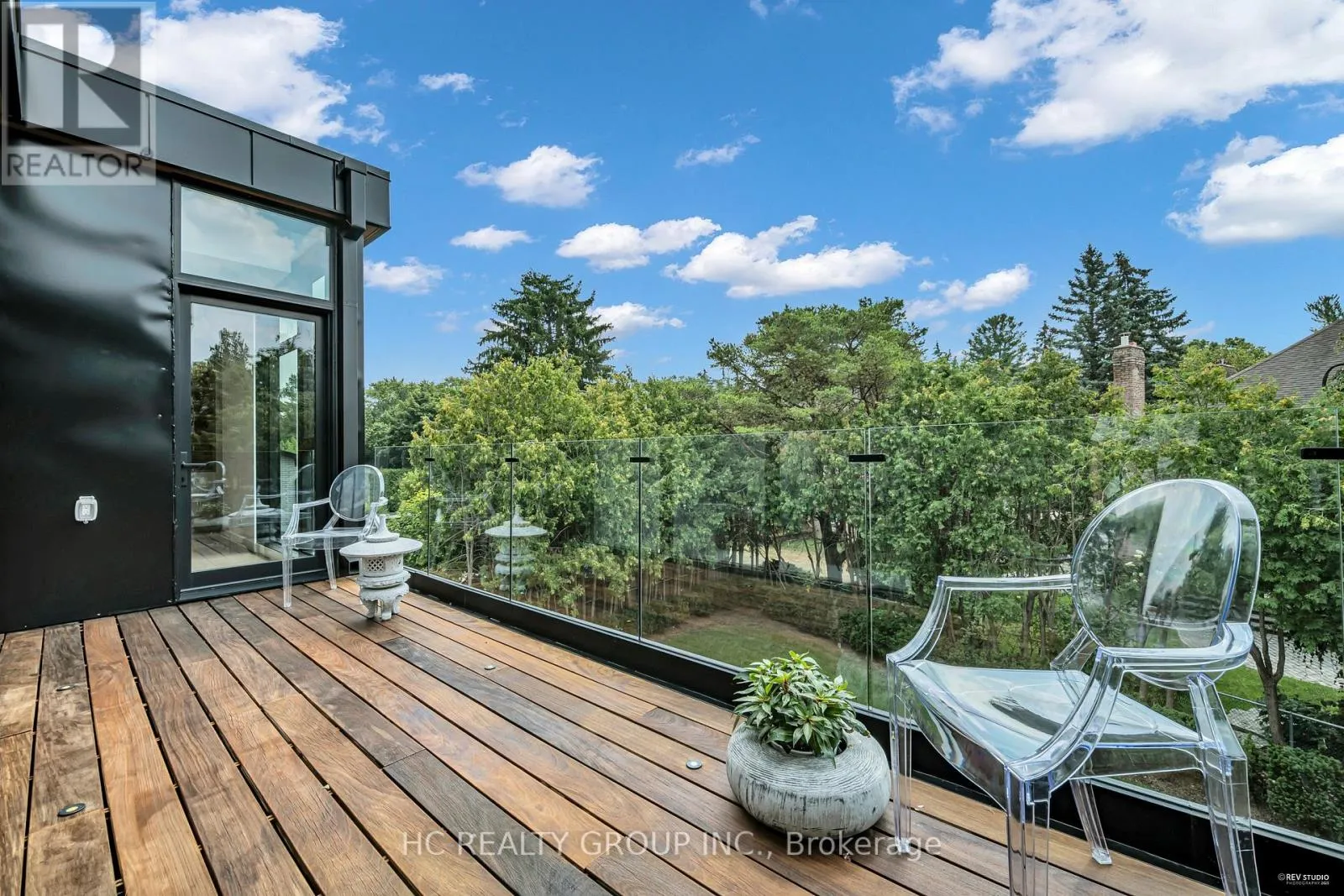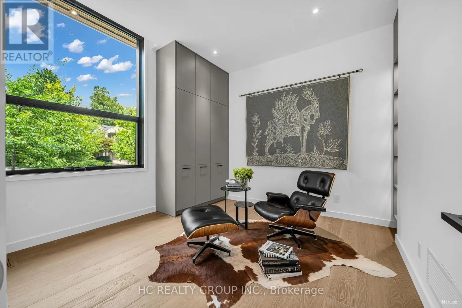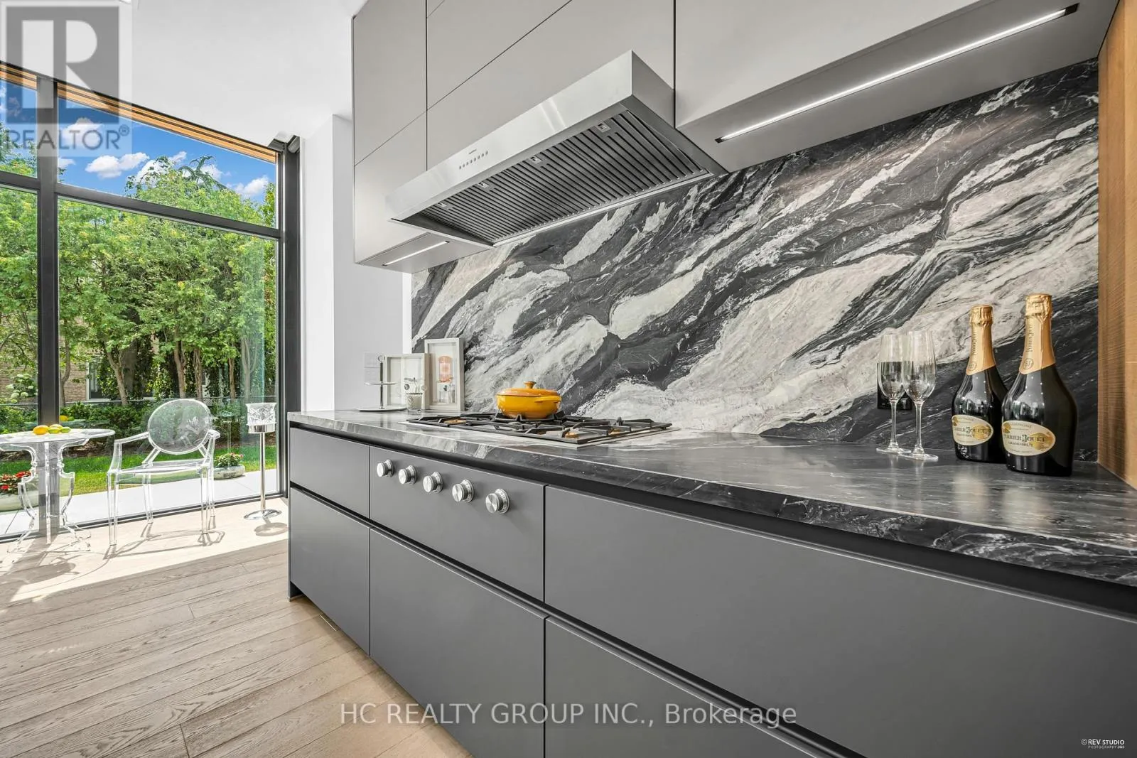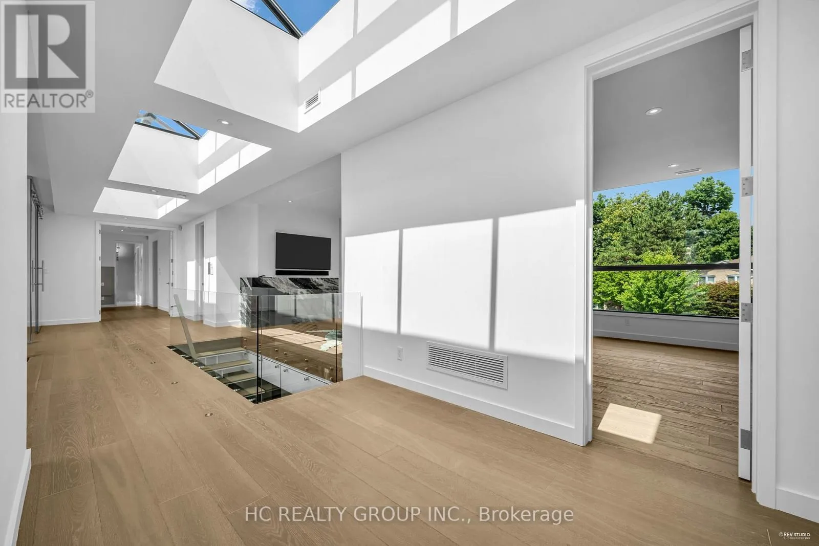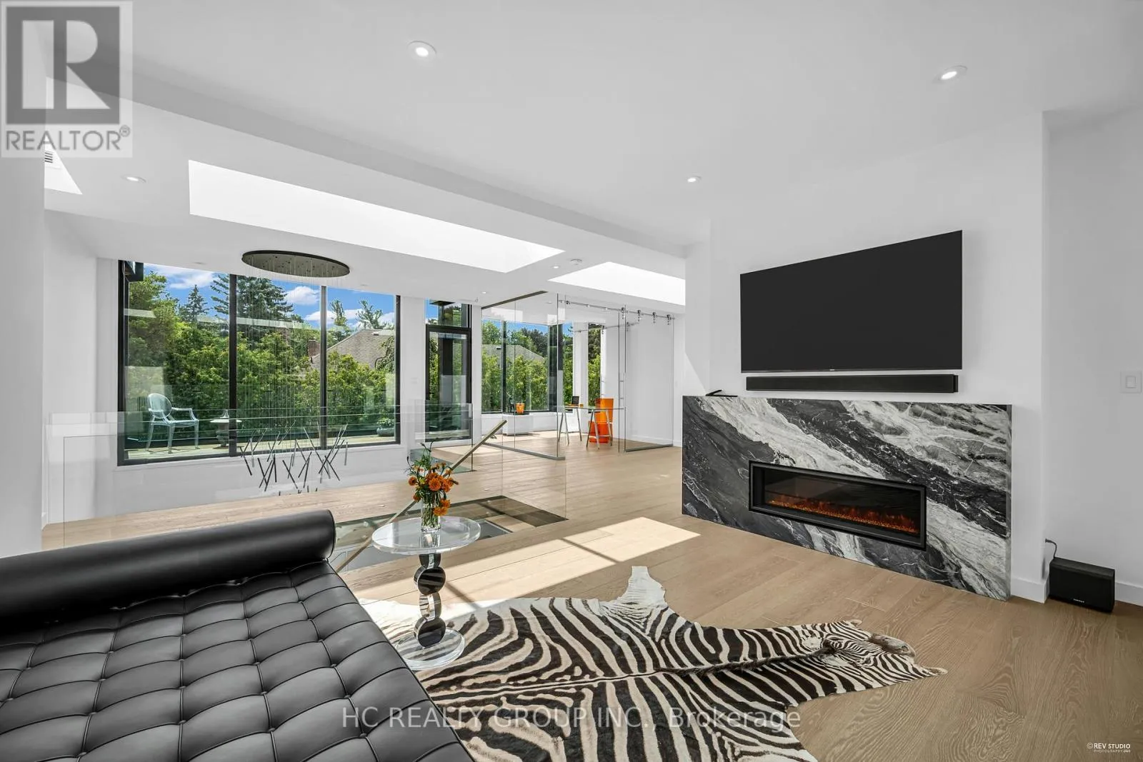 Cross Streets: Bayview Ave/ Steeles Ave E. ** Directions: google Map. An extraordinary modern estate of distinction, privately set on a tranquil cul-de-sac on a rare 107.34 foot frontage lot, showcasing a refined interplay of glass, stone, and light. Designed by award-winning architect David Small, the residence features polished Ontario white marble, European aluminum-clad wood windows, and professionally landscaped grounds with mature evergreens, integrated outdoor elements, and a full irrigation system. A generous three-car garage with extra-high ceilings accommodates vehicle lifts. The main level offers a guest bedroom and a gourmet kitchen with top-tier appliances and a walk-in pantry, complemented by radiant heated floors, wide-plank European white oak, floor-to-ceiling windows, and a striking 23-foot dining room ceiling with sculptural chandelier. Floating stairs with sleek glass railings elegantly connect all levels. The upper level presents a lounge, office, and four ensuite bedrooms, including a luxurious primary retreat with a spa-inspired ensuite featuring heated floors, dual custom marble-lite floating sinks, and an expansive dressing room with premium custom cabinetry and integrated LED lighting. The lower level is designed for elevated living, featuring a recreation room, climate-controlled wine cellar, nanny suite, and fitness room. Over $500,000 in premium custom German cabinetry throughout the home unifies the interiors with exceptional craftsmanship, modern elegance, and refined luxury. (id:27476)