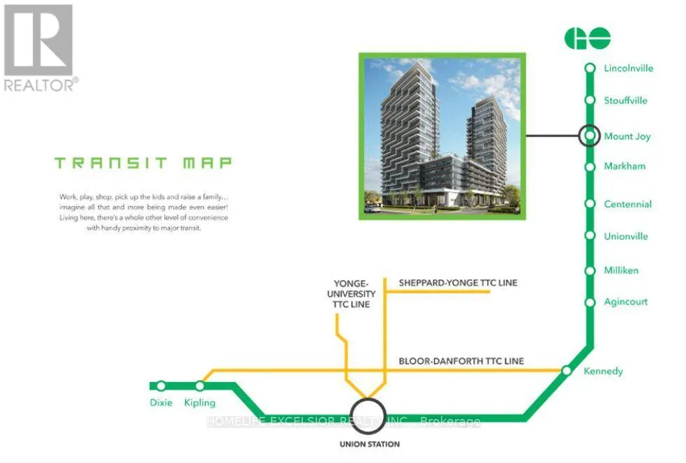 Cross Streets: Markham Rd/Castlemore Aveneu. ** Directions: Markham Rd/Castlemore Ave. Enjoy modern urban living in this brand-new, move-in-ready 1-bedroom, 1-bath condo offers a bright open-concept layout with floor-to-ceiling windows that flood the space with natural light. The contemporary kitchen features stainless steel appliances and quartz countertops, blending modern style with everyday functionality. Residents enjoy exceptional building amenities, including a fully equipped fitness centre, games room, guest suite, party room with private dining area, pet wash station, golf simulator, rooftop terrace, and 24-hour concierge service. Ideally situated in a prime Markham neighbourhood - just steps to Mount Joy GO Station, shopping, restaurants, parks, grocery stores, and daily conveniences, with easy access to Hwy 7 and Hwy 407. ONE YEAR OF FREE INTERNET INCLUDED. Book your showing today! (id:27476)