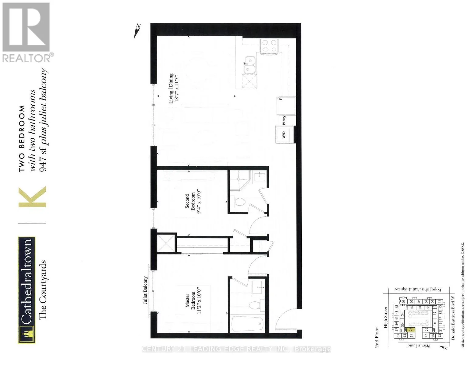 Cross Streets: Major Mackenzie/Woodbine. ** Directions: https://share.google/DXURFOi4a1rjvztiE. Move in this Year! Live In The Elegant Architecture Of The Courtyards I At Cathedraltown! European Inspired, 5 Storey Boutique Style Condo Building. Unique Distinctive Designs surrounded by Landscaped Courtyard/Piazza w/patio spaces. This 2nd Floor 947 Sq.Ft. 2Bedroom, 1 Bath Unit Is In Walking Distance To Shopping, Public Transit And Great Schools. Building Amenities Include Grand Salon, Bar & Solarium, Concierge, Visitor Parking, Exercise Room, 6 E.V. Charging Stations and much more! (id:27476)
