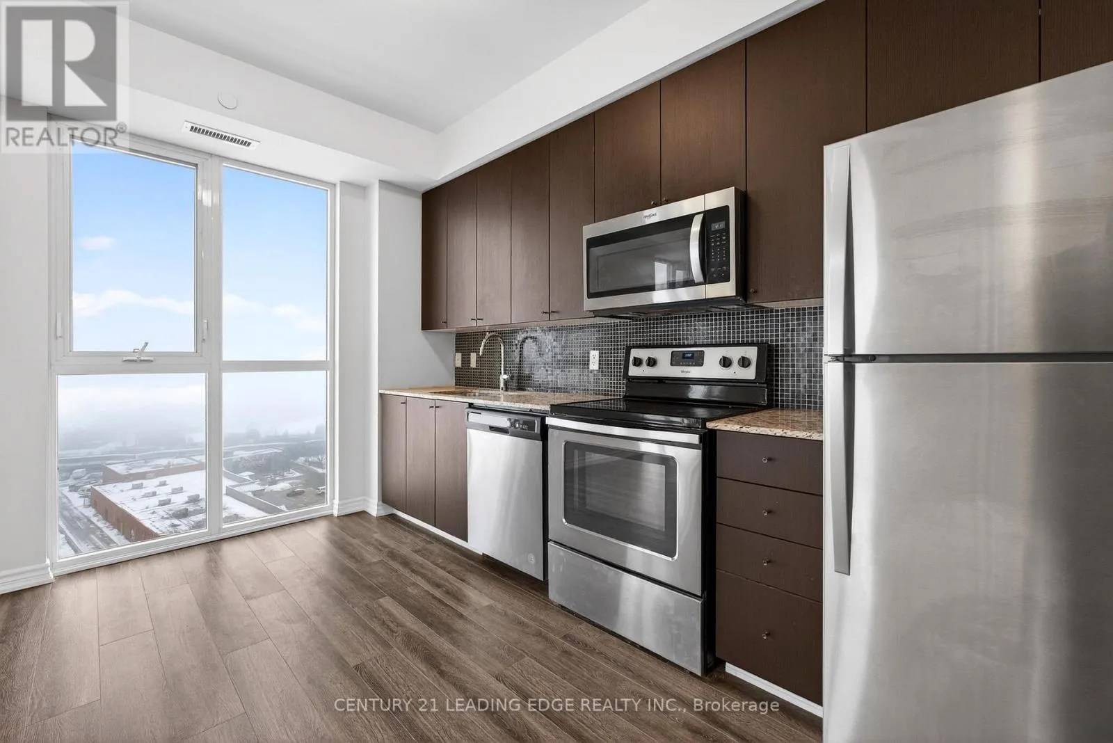Markham Rd And Bur Oak Welcome to this beautifully updated 1+1 bedroom condo in the heart of Wismer, Markham! Ideally located just steps from Markham Rd & Bur Oak Ave, across Mount Joy Go, shopping, parks, and top-rated schools. Situated in a well-maintained building, this modern suite features a bright, open-concept layout with brand new flooring, fresh paint, and new baseboards throughout, offering a truly move-in-ready experience. The spacious living and dining area showcases laminate flooring and a walk-out to a east-facing open balcony with lovely sunrise views. The contemporary kitchen features granite countertops and stainless steel appliances. The primary bedroom enjoys west-facing views with direct balcony access, while the versatile den is perfect for a home office or guest space. Owned parking and locker included. An excellent opportunity for first-time buyers, downsizers, or investors in a highly desirable community. (id:27476)