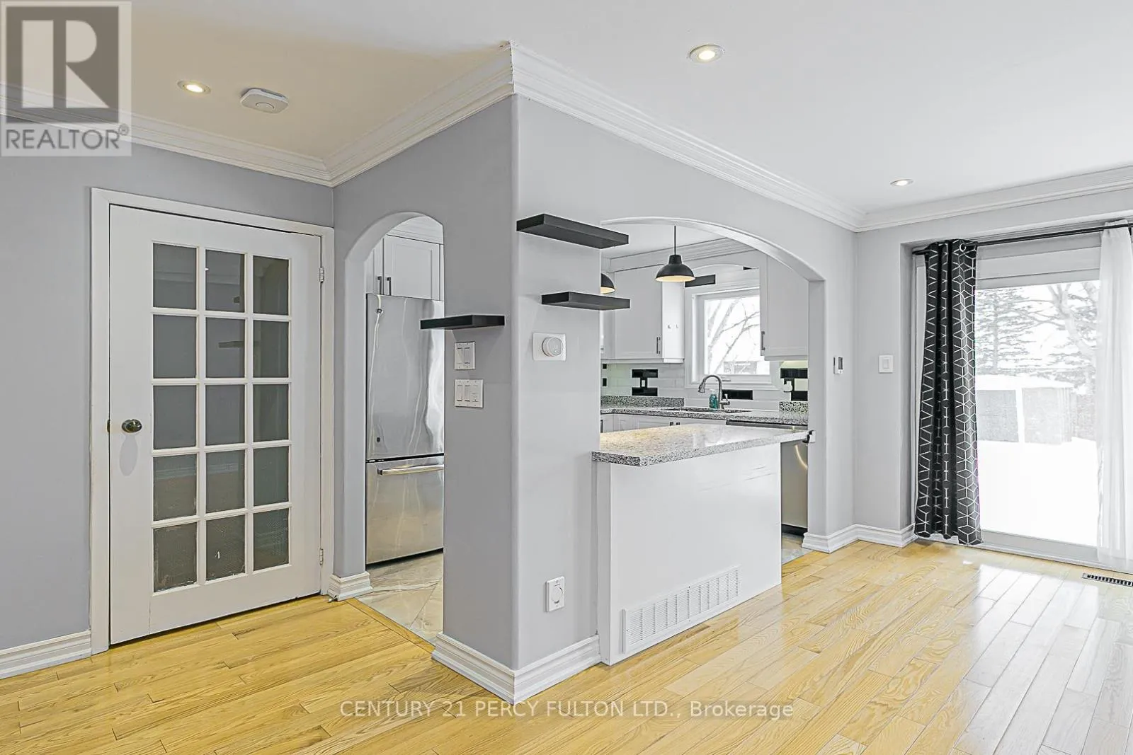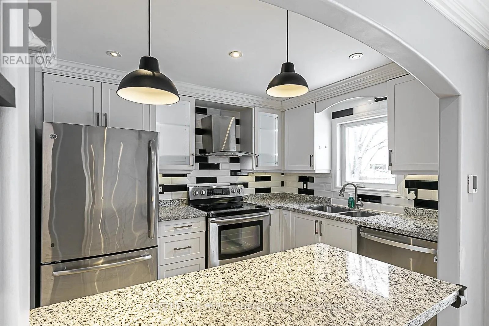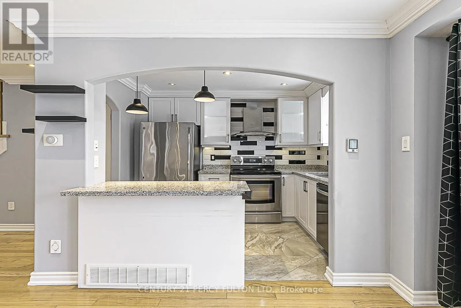 McCowan/Hwy 7 53 Miley Drive is a detached two-storey home located in the Markville neighborhood of Markham, Ontario. The property features 3+1 bedrooms and 2 bathrooms, with a lot size of 32.24 x 107.95 feet. The main floor boasts hardwood flooring, smooth ceilings with crown molding, and numerous pot lights. The modern kitchen is equipped with floor-to-ceiling cabinetry, an island for casual dining, granite countertops, a tiled backsplash, and heated porcelain flooring. The dining area opens to a patio, enhancing indoor-outdoor living. The finished basement includes a sizable fourth bedroom and a full three-piece bathroom. Additional updates comprise a newer roof, a fully enclosed porch, and an extended driveway without sidewalk interference. The home is situated within top-ranking school zones, including St. Matthew Catholic Elementary School, Central Park Public School, and Markville Secondary School. It is also conveniently close to public transit, Markville Mall, community centers, and the GO Station. ** This is a linked property.** (id:27476)