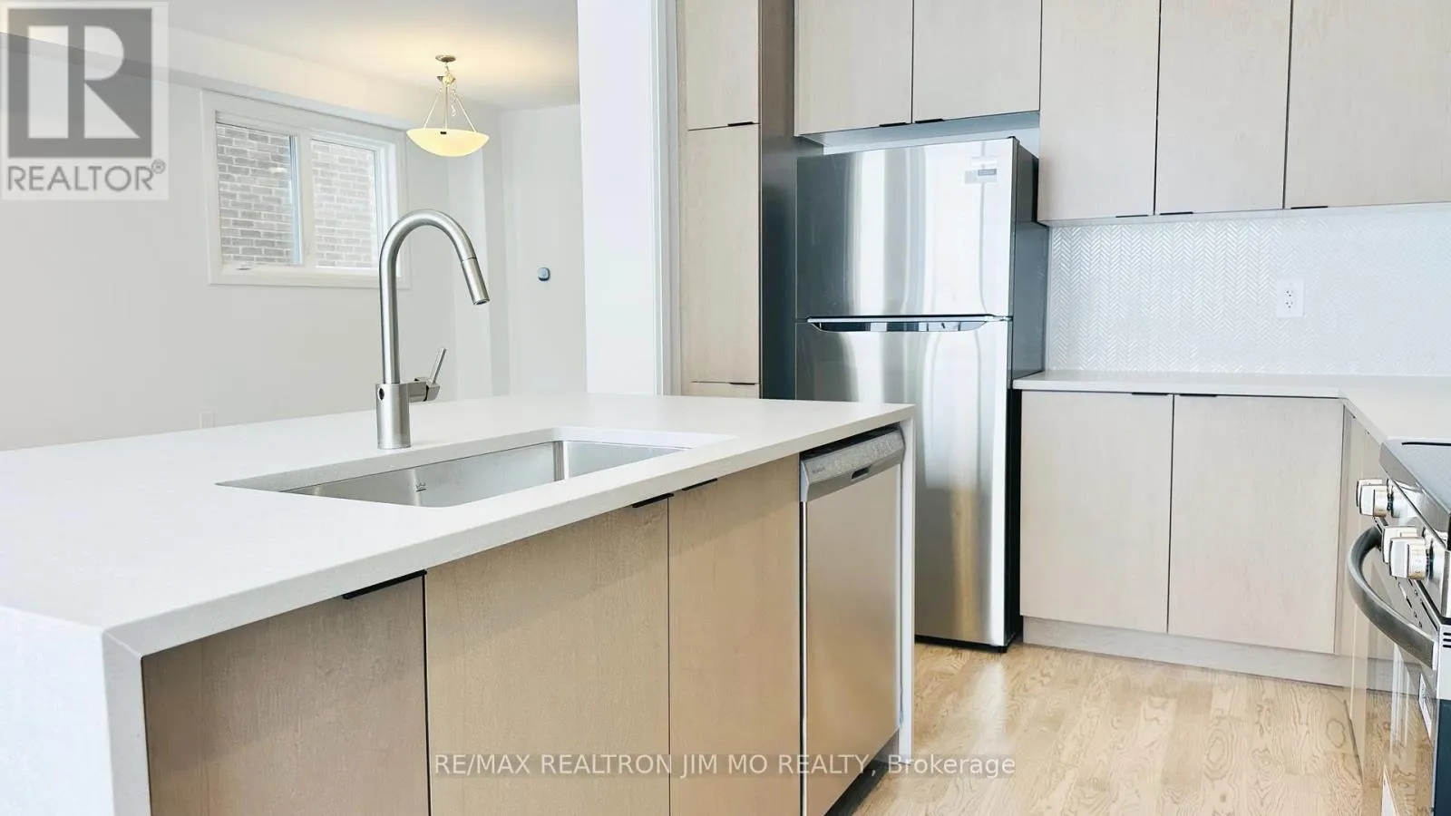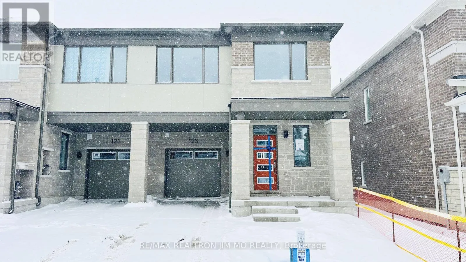 Cross Streets: Warden / Major Mac. ** Directions: 123 Leslie Richards Street. FULLY UPGRADED 4 BED, 3 BATH END-UNIT Brand New TOWNHOME For Lease. Open-concept main level with 9-ft ceilings. Modern kitchen with huge central island, stunning waterfall quartz countertops, upgraded backsplash, stainless appliances, and sleek LED pot lights. Spacious family room features a dramatic black marble surround electric fireplace as the focal point. Premium finishes throughout: stained hardwood floors and stairs (no carpet), elegant primary suite with walk-in closet and ensuite featuring double sinks. Second floor offers 9-ft ceilings and 4 generously sized bedrooms. Minutes to Hwy 404, top schools, shopping, parks, and transit. Move-in ready - modern luxury living awaits! (id:27476)