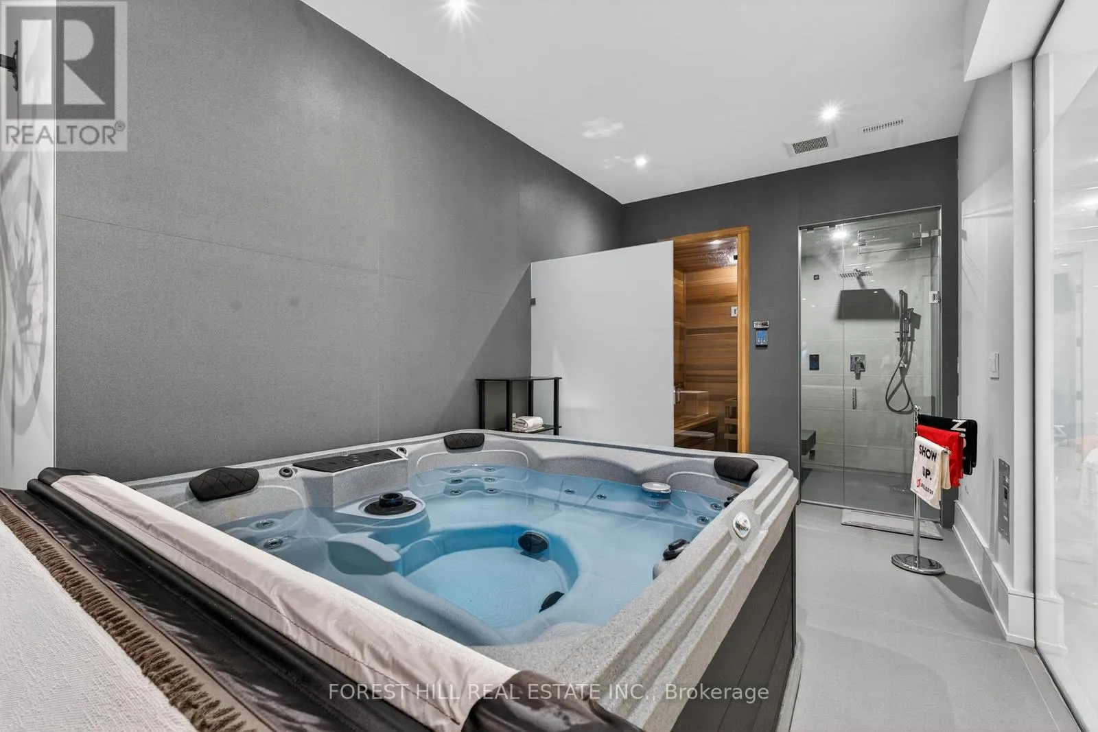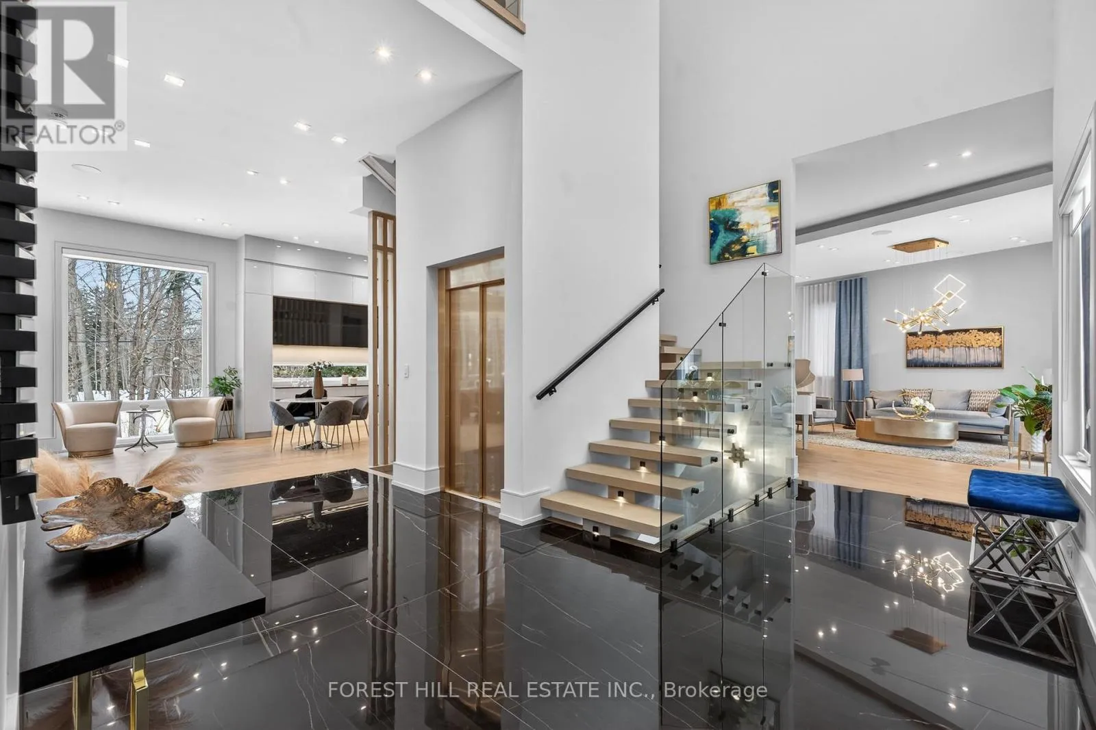 Cross Streets: E.Yonge St/E.Grandview Ave/N.Steeles Ave E. ** Directions: W.Bayview Ave/N.Steeles E. *A Private Oasis--Set on an expansive 13,971 sf. ft land*(RAVINE-LIKE/COTTAGE SETTING)*LUXURY ESTATE(just over 3-year old*Spectacular custom-built hm--over 8,200 sf living area), situated at the end of a tranquil cul-de-sac and backing onto a serene green-setting in the prestigious and convenient location!!-This UNIQUE architectural masterpiece offers over 8,200 sq.ft of meticulously designed living space inc a lower level(5,500 sq.ft/1st & 2nd flrs) that balances sophistication with comfort, and exuding timeless elegance. This estate purposefully was designed for seamless modern living, to capture nature views from multiple angles and ultimate privacy. The main flr offers 12-ft ceilings adorned with exquisite chandeliers, while a grand 24-ft raised ceiling enhances the home's opulence and architectural unique that create airy and open feel, luminous atmosphere. The chef's kitchen is equipped with top-of-the-line SUBZERO and WOLF appliances, a large waterfall island, complemented by a separate cooking kit for effortless entertaining. The stunning family rm showcases a 24-ft ceiling height, panoramic flr to ceiling windows, auto-controlled blinds, a dramatic 3-way gas fireplace, and direct flow into an outdoor deck & patio ideal for effortless indoor-outdoor living. This residence features four spacious bedrms upstairs, each with an ensuite bathrm showcasing premium finishes and fixtures and heated flrs. The primary suite is a private sanctuary, located in its own wing with a spa-like bathrm, generous sitting area, and serene views of the nature. The basement is an entertainer's paradise, featuring a state-of-the-art gym with a hot-tub, spa-shower, sauna and a wet bar, a fully equipped home theatre with surround sound and custom leather recliners. The additional two-bedrm, one with an ensuite, provide ample space for family or guests.This exceptional property combines unparalleled craftmanship with smart home amenities, offering a lifestyle of luxury, and tranquility (id:27476)