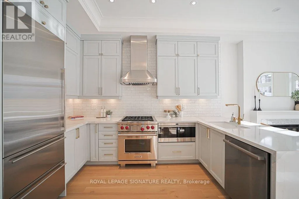 Cross Streets: Major Mackenzie Dr.E/Warden. ** Directions: Major Mackenzie Dr. E./Elm Green Lane. Welcome to this elegantly designed brand new 'Kylemore' town home situated the beautiful community of 'Brownstones' surrounded by forest golf course. This end unit features: 5" hardwood floors & hardwood stairs with black iron pickets and pot lights throughout. Gorgeous kitchen has pastel colored cabinets with gold hardware, subway tile backsplash, large sink with gold faucet, Sub Zero, Wolf & Bosch built in stainless steel appliances, quartz counters with waterfall feature & breakfast bar. Open concept family room features an upgraded electric fireplace and mantel, has a walk out to terrace and gas BBQ. line. Large Formal room. Extra family room/office on ground level, 3 Bedrooms, 2.5 bathrooms with upgraded tiles & faucets. Situated close to all amenities. Walking trails, Schools, Transit, Golf, Community Centre, Library, shopping & Hwy 404 (id:27476)