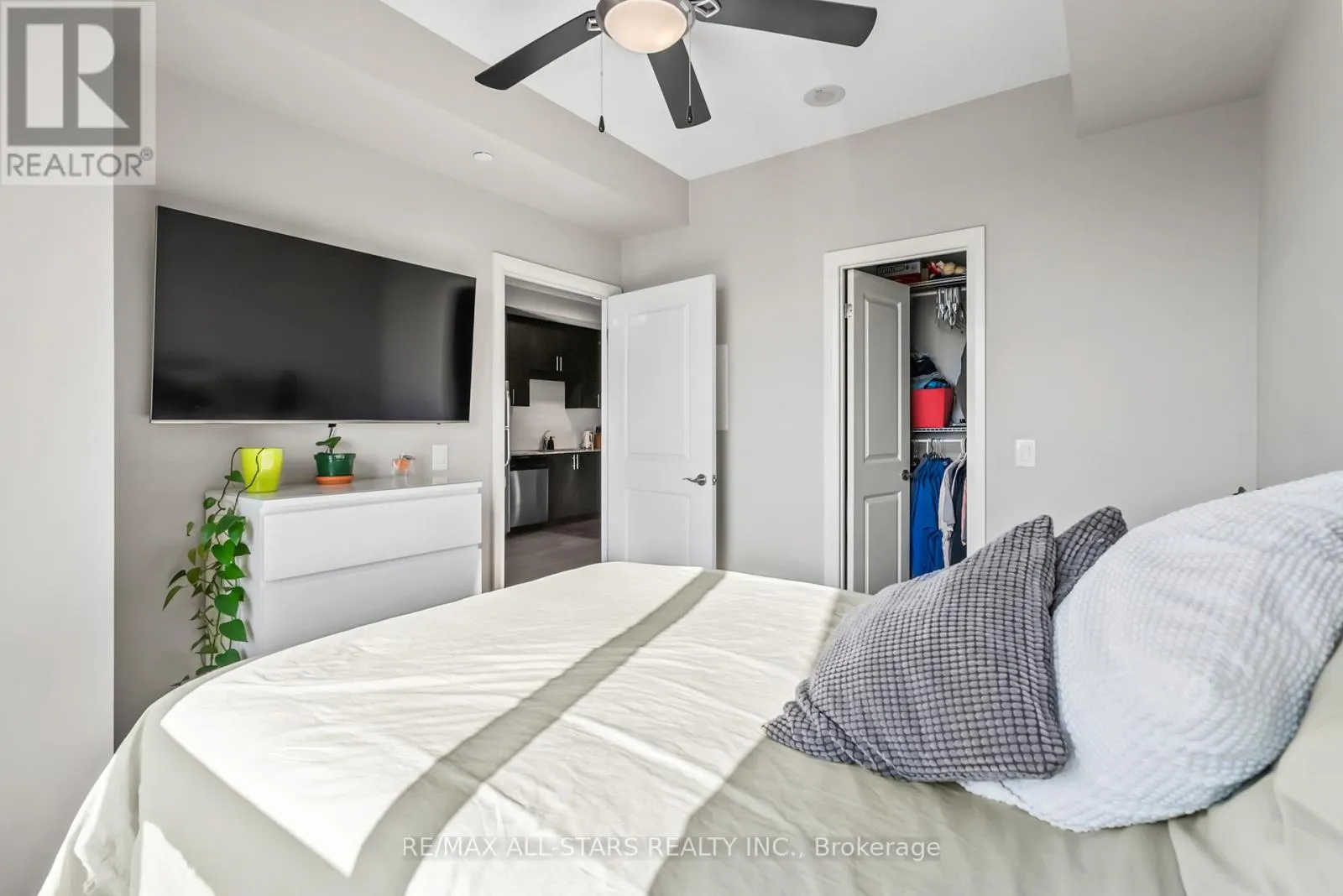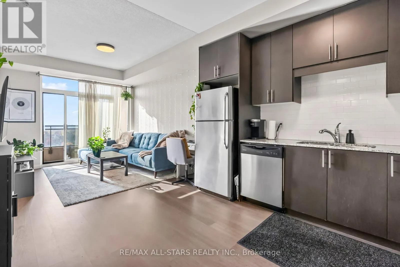Cross Streets: Markham Road & Edward Jeffreys. ** Directions: Markham Rd & Edward Jeffreys. Amazing South Exposure floods this unit in Greenpark Upper Village with unobstructed views. Walk into the open concept unit with 9' ceilings and laminate floors. The Primary bedroom is bright with oversized window that has comes with closet organizers. The kitchen has 41" upper cabinets with granite counters, undermount sink and backsplash. The walkout to the balcony from the living room has beautiful unobstructed views of trees and a pond. Excellent location for Mount Joy GO Train Station, shopping, and easy highway access. 24 hr Concierge service, gym, recreation/meeting room and guest suites. This is a great investment for a first time buyer and or investor. (id:27476)