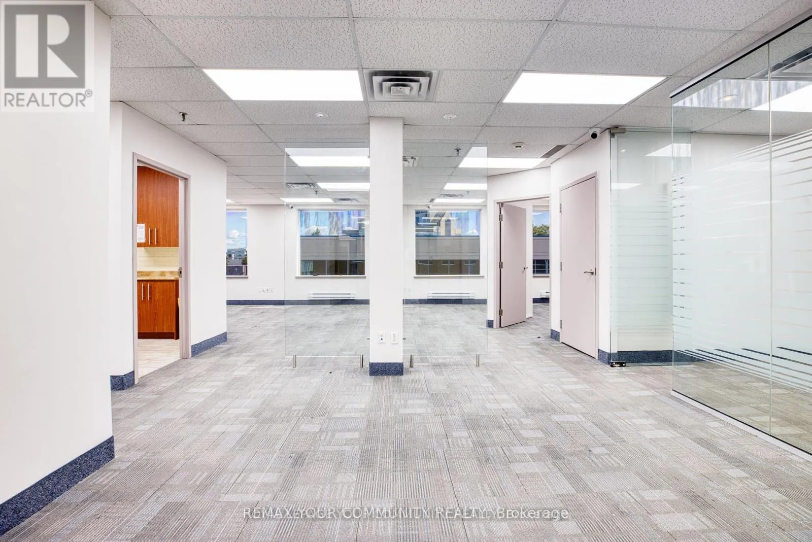 Cross Streets: Woodbine/14th Ave. ** Directions: Woodbine/407/Hwy 7/400/14th Avenue. Rare opportunity to acquired an extra large, custom built with 2 standard units, combined professional office (1322 sqft of useable space) in demand Markham location. Minutes to Hwy 400,407,401, major shopping plazas, Costco, banks, restaurant, transport routes. Value offered in much below the replacement cost, makes it a sound investment. TOP FLOOR, spacious and bright, highly functional unit. Superior floor plan incorporating offices, 2 meeting rooms with glass walls, and a storage room. Large open workplace, allow for multiple desks, complimented by two more full size private offices (one with glass wall and glass door entry). Good security in the building and outside with multiple cameras, timed-in entry system. More than 200 surface parking spaces, plus some underground spots, free outdoor visitor parking. Freshly, re-painted, updated and cleaned and ready for turn-key possession. Ideal for multiple professional uses like: law firms, accounting, realty companies, tutoring/commercial schools, medical, acupuncture, wellness centre, spa, etc...) Reasonable maintenance fee includes all utilities. HST is in addition (commercial property). Min 5% deposit with certified funds. Note the measurements: Workspace: 40'10" x 25'6", 1st office: 15'5" x 10'11, 2nd: 14'5" x 9'6", 3rd: 15'5" x 8'4", electrical room: 9'8" x 6'9", Storage Rm: 5'5" x 4'3". All measurements, financials to be verified by Buyer, Buyer's Realtor. (id:27476)