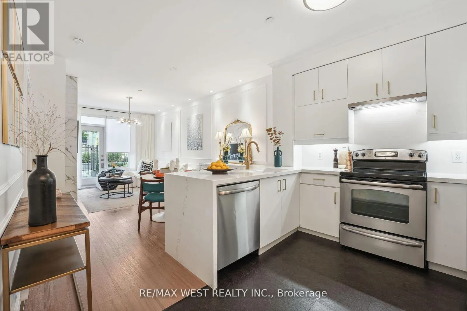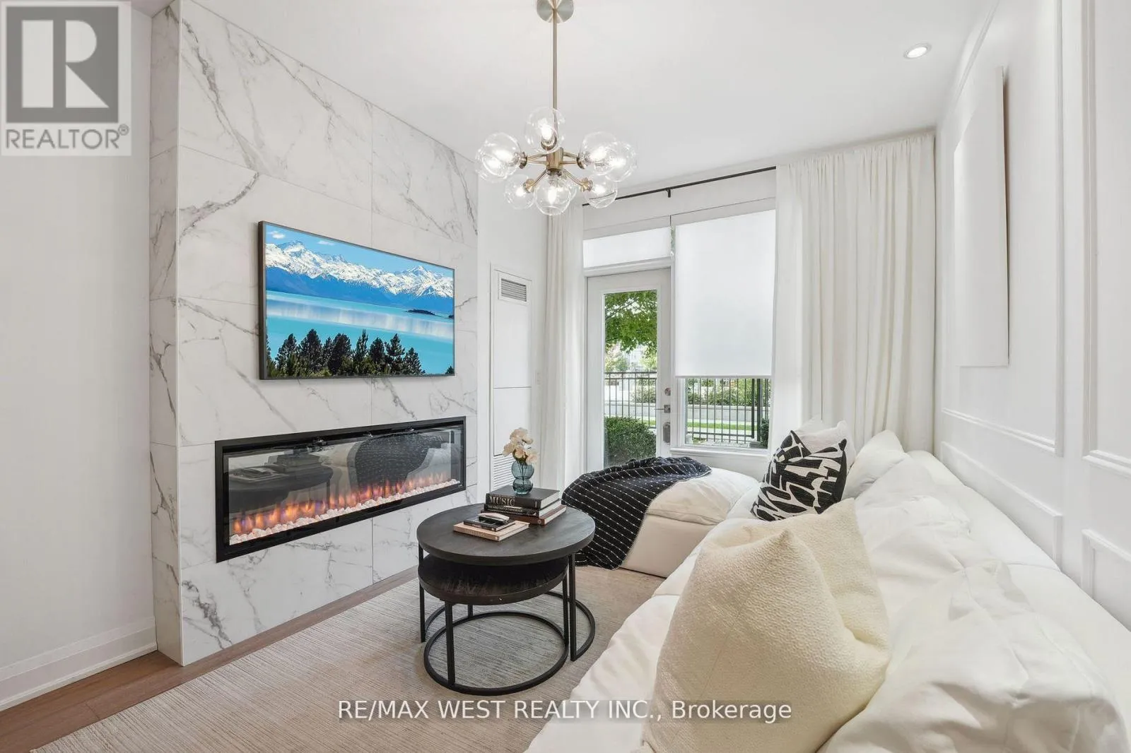 Hwy 7 & Birchmount Rd Spacious 750 Sqft Renovated One Bedroom Plus Den Unit. Luxury Upgrades Throughout. Kitchen Boasts Quartz Counters And Backsplash With Waterfall Edge. Stainless Steel Appliances, Under Mount Sink, And Luxury Vinyl Plank Flooring. Panel Mouldings and Oak Engineered Hardwood Through Out. Open Plan Living and Dining Area, Floor To Ceiling Electric Fireplace. French Door Leading To A 285 Sqft Private And Gated Terrace. Bright Primary Bedroom With Large Walk-in Closet And Four Piece Ensuite. Oversized Den (Can Easily Be Second Bedroom), Built In Wall Unit And Double Clothes Closet (Doors Removed).2 Car Tandem Parking and Locker. Excellent Recreational Facilities & Amenities. Steps To Fine Dining, Whole Foods, Child Safe Parks, Public Transportation & Close Proximity To Cinema, York U, Great Schools, Downtown Markham, Hwy 404 & 407. (id:27476)