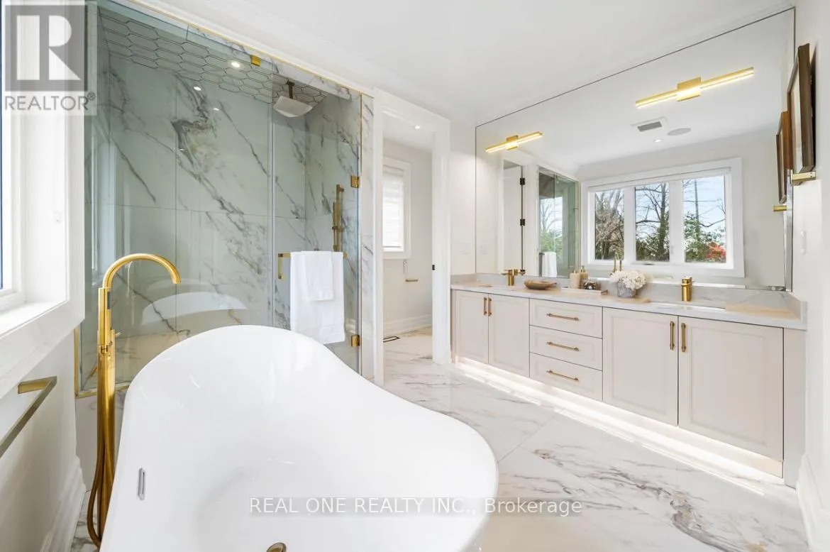 Woodbine Ave & Hwy 7 Welcome to this new built, meticulously crafted estate, offering approximately 7000 sq. ft living apace nestled in the heart of Markham at Buttonville community! Featuring 4+2 bedrooms 6-bathroom. Luxury Bronze entrance door with Smart Lock. The main level features a Sunlit Stunning double-story high grand Foyer, built-in speakers, hardwood flooring, elegant paneling, custom moulding, Premium lighting illuminate every space, enhanced by an abundance of natural light from skylights and expansive windows. The finest craftsmanship throughout, plaster moldings, Skylight, Oak Stairs. The modern gourmet kitchen is a chefs dream, equipped with top-of-the-line appliances and featuring a chef-inspired gourmet kitchen with top-tier appliances, central island, and stunning countertops, catering/work kitchen offering additional prep space and storage. The breakfast area opens to the sunlit deck. Bright family room with custome built-in showcases & fireplace, and panoramic views of the backyard. Private office and functional mudroom with garage access complete the main floor. The primary suite is a true retreat, featuring a luxurious 6-piece ensuite, a Toto automatic toilet, along with a spacious walk-in closet. Elegant drop ceilings and custom lighting details enhance the ambiance. All four generously sized bedrooms feature ensuite bathrooms. Second floor laundry room adds convenience. Fully finished basement offers spacious recreation room with fireplace and feature wall, 2 additional bedrooms, and walk-up to backyard. Built-in speaker/sound system, security camera system, cvac. Close to Hwy 404 and Hwy 407, and within walking distance to First Markham Place, shops, restaurants, and transit and much more! (id:27476)
