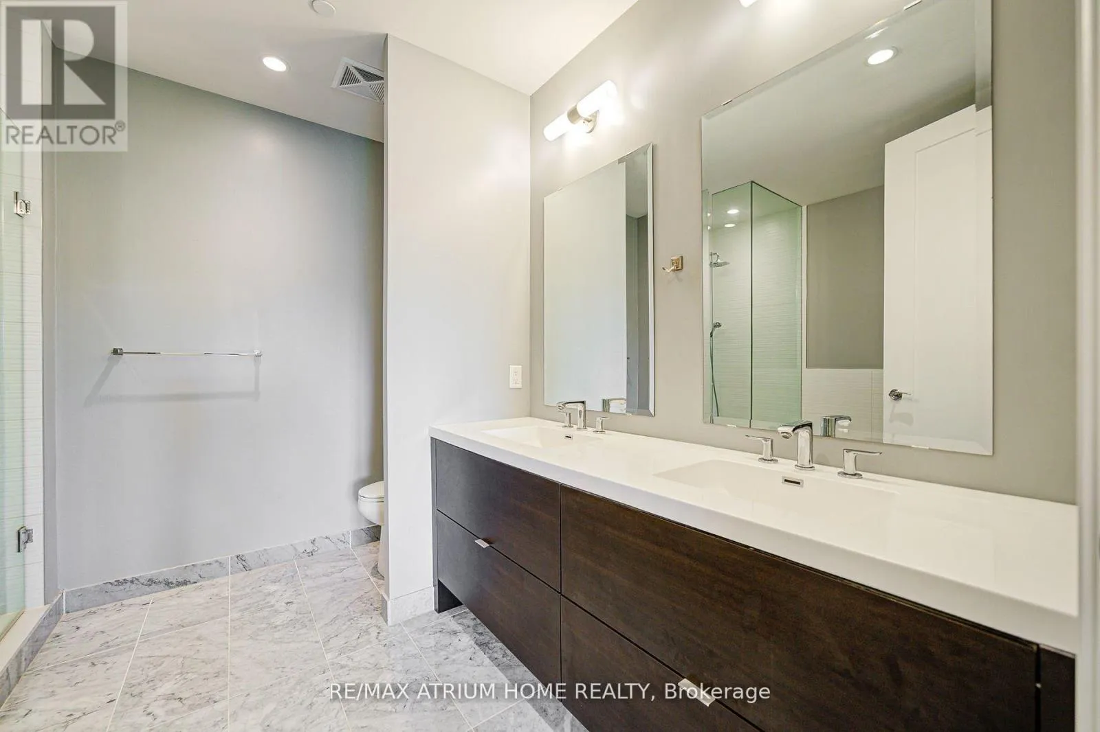Cross Streets: Main Street Unionville / Fred Varley Dr. ** Directions: Fred Varley Dr and Main street Unionville. Welcome to The Varley, a boutique luxury low-rise just steps from historic Main Street Unionville. This rare 2-bedroom, 3-bath suite with two parking spots and a locker features 10ft ceilings, hardwood floors, a private balcony, and a chef's kitchen with granite counters and built-in Miele appliances; the spacious primary suite boasts double sinks, a glass standing shower, and a soaker bathtub, while the thoughtfully designed split-bedroom layout with two ensuites and ample storage offers exceptional comfort for everyday living, complemented by premium amenities, a pet-friendly community, walkable access to cafés, boutiques, Toogood Pond, and top-ranking schools-making it an ideal home to live in and a smart long-term investment. (id:27476)