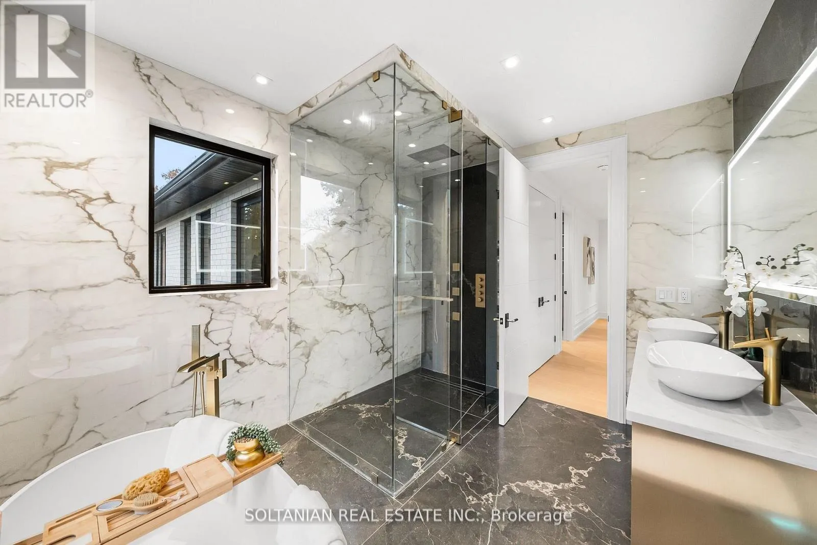 Cross Streets: Bayview/Steeles/Laureleaf Rd. ** Directions: Follow GPS. Unbelievable opportunity! This newly custom-built masterpiece sits on a premium 60-ft lot in one of the area's most desirable neighborhoods, offering exceptional value for quality and craftsmanship. This extraordinary residence blends modern architecture with elegant design, delivering a lifestyle of comfort and sophistication. Every detail has been thoughtfully curated for refined, contemporary living. The impressive main level features soaring 11-ft ceilings, coffered detailing, and halogen lighting that create a bright, airy atmosphere. The great room is a true showpiece, highlighted by a striking slab fireplace wall, custom entertainment unit, and oversized picture windows with serene treetop views. The chef-inspired kitchen is both stunning and functional, offering an oversized waterfall island, stone countertops, premium stainless-steel appliances, and seamless flow to the dining and family areas-perfect for entertaining. Custom glass staircase railings, imported porcelain finishes, and designer lighting add timeless appeal throughout. Upstairs, you'll find four spacious bedrooms with custom closets and refined finishes. The primary suite is a private retreat featuring a sculpted accent wall, tray ceiling, and a luxurious 7-piece spa-inspired ensuite with floor-to-ceiling porcelain, gold fixtures, and a body-spray shower system. The fully finished lower level is ideal for entertaining or extended family, complete with a wet bar, beverage fridge, stone breakfast bar, fifth bedroom, and full designer washroom. Additional highlights include a video camera doorbell and countless custom upgrades. Enjoy a private, park-like backyard surrounded by mature trees, offering privacy and tranquility. A true showpiece home don't miss this rare opportunity in today's market. (id:27476)