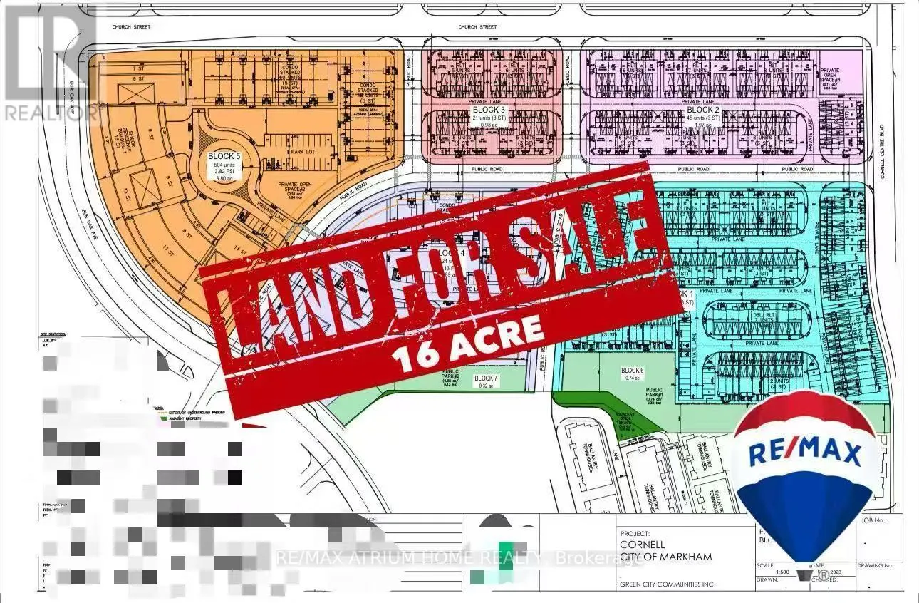 Bur Oak Ave & Churh St ATTENTION ALL developers and builders!!! Rare Mixed-use development opportunity with commercial, residential, and seniors housing components. A large-scale development and investment opportunity located in Cornell. This is a 16-acre assembled landholding planned into five (5) blocks, and all five blocks have received government approvals. The project's Official Plan and Zoning By-law approvals are in place. The site benefits from an excellent location near Markham Stouville hospital and is steps to the Cornell Community Centre & Library. The plan includes approximately 1,000,000 sq ft of seniors' apartment space, together with approximately 180 Stack townhouses and 154 freehold townhouses w/Common element, among other residential components. All development metrics, unit counts, building areas and development parameters are strictly subject to the approved government documents and the buyer/buyer agent due diligence and verification. Property is being sold on an "as is, where is" basis. No cost-sharing arrangement and no additional park-related costs or obligations as per Seller (id:27476)