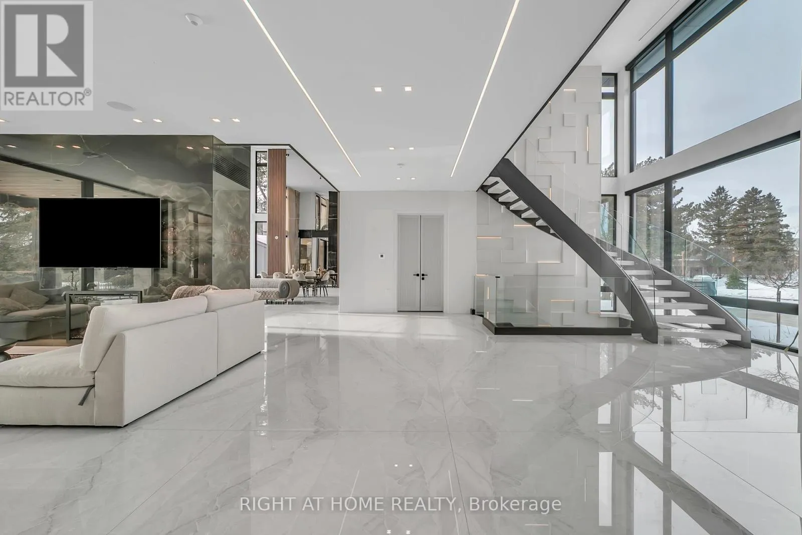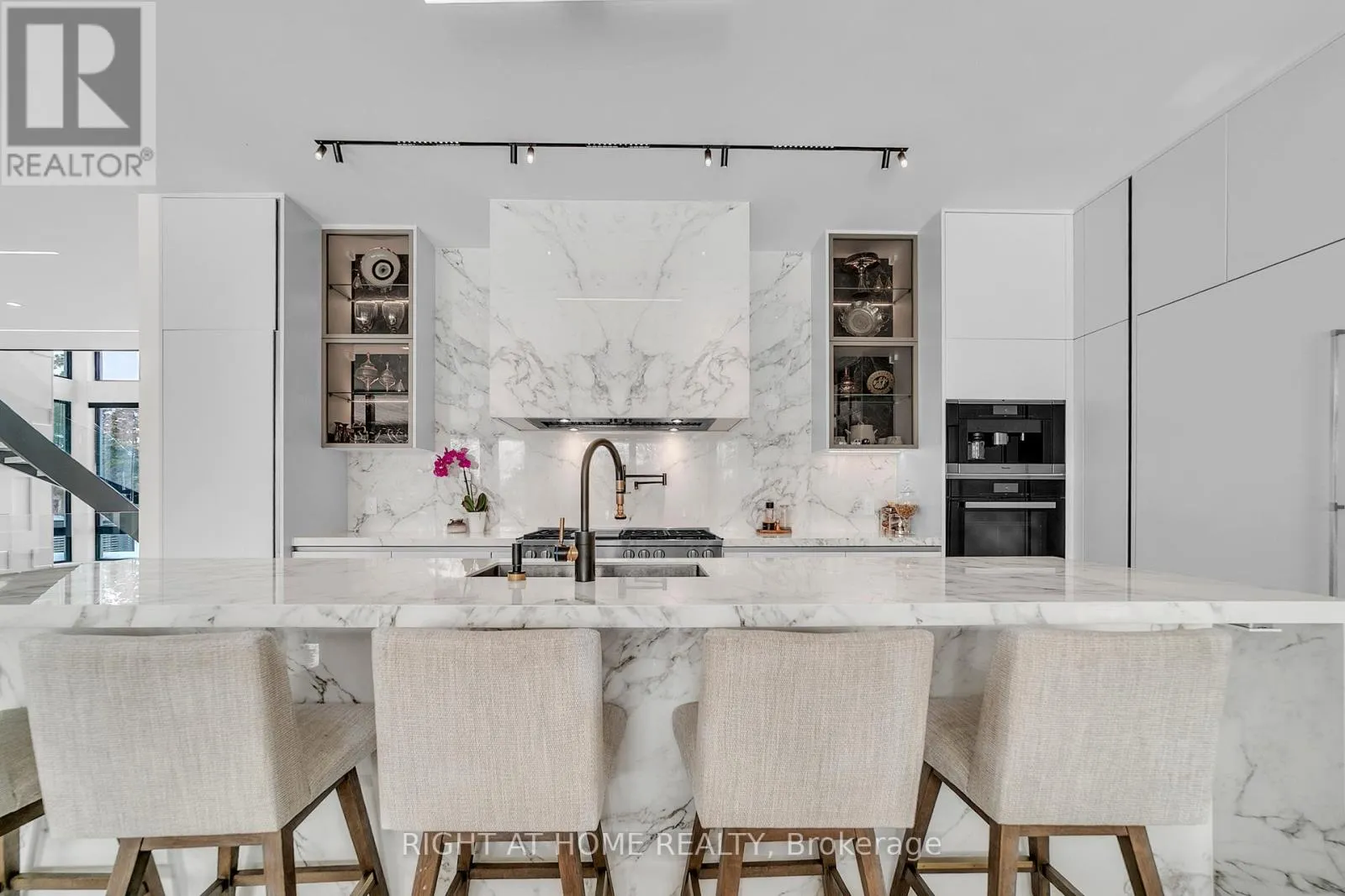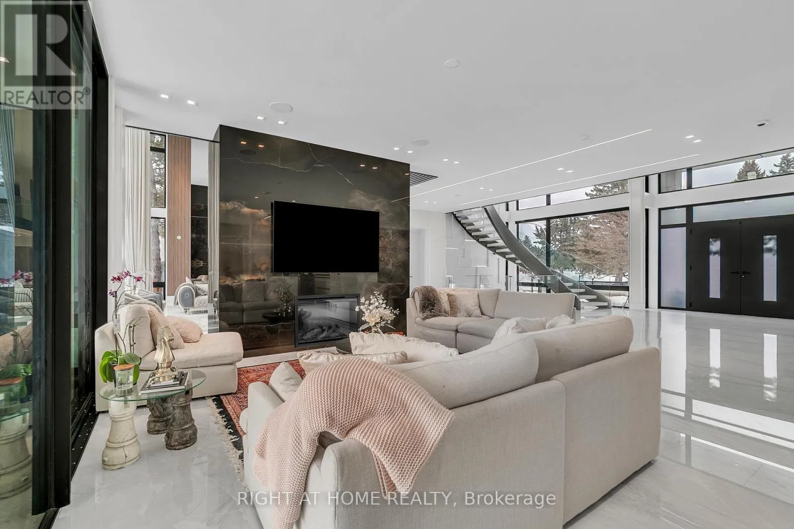 Leslie & Steeles Stunning custom-built luxury residence showcasing exceptional craftsmanship, premium finishes, and advanced smart home technology throughout. Designed for elegance and functionality, this remarkable home features large-format 5' x 10' Italian porcelain slabs creating a seamless interior, along with a custom Italian kitchen offering sleek cabinetry, high-end finishes, and fully integrated appliances. A private elevator provides convenient access to all levels. Enjoy heated floors in all bathrooms, two laundry rooms including one on the second floor, and a luxurious primary suite featuring two ensuite bathrooms for added comfort and privacy. The second floor is enhanced with rift-cut white oak doors, custom wall units, and built-in beds for a cohesive designer look. The finished basement includes a spa-inspired bathroom with Jacuzzi tub and steam shower. Smart home features include Somfy motorized window coverings and a Control4 automation system managing lighting, sound, climate, blinds, security cameras, and fingerprint entry. Two skylights bring in natural light and include ceiling-mounted lift systems. Outdoor spaces are ideal for entertaining, featuring a heated driveway, heated backyard deck, main floor balcony, and heated flooring on the main floor and basement. Mechanical systems include three boilers, two furnaces, and two A/C units. The private backyard offers a spectacular 44' x 18' infinity pool with Pentair pump, LED lighting, saltwater system, separate pump, and hot tub. Additional highlights include a 2-car garage with EV chargers, silent garage door opener, automated gates, iron fencing, thermally treated wood balcony ceilings, glass railings, sprinkler system, and two electrical panels. An exceptional property combining luxury, technology, and thoughtful design, perfect for everyday living and entertaining. (id:27476)